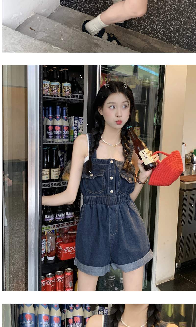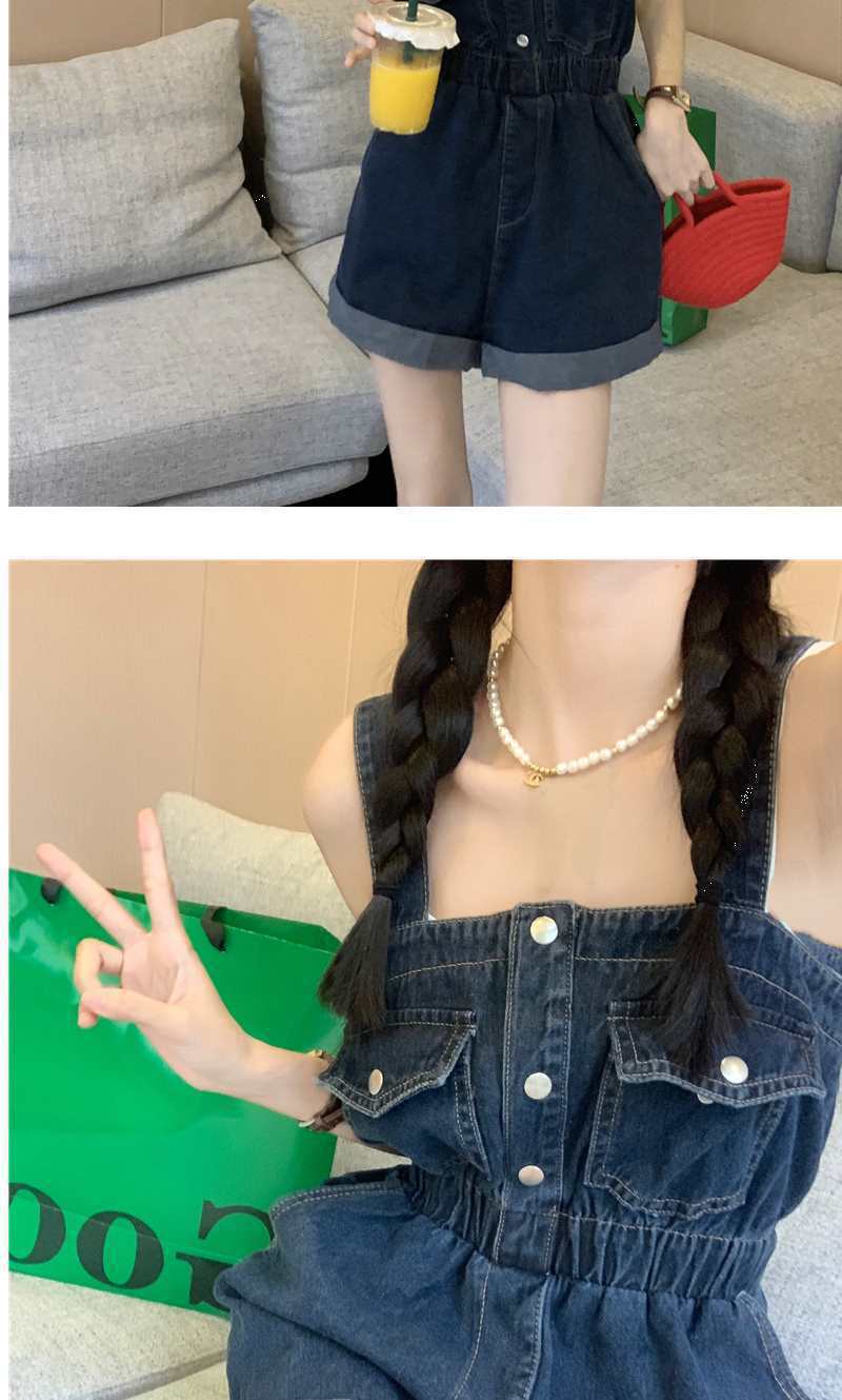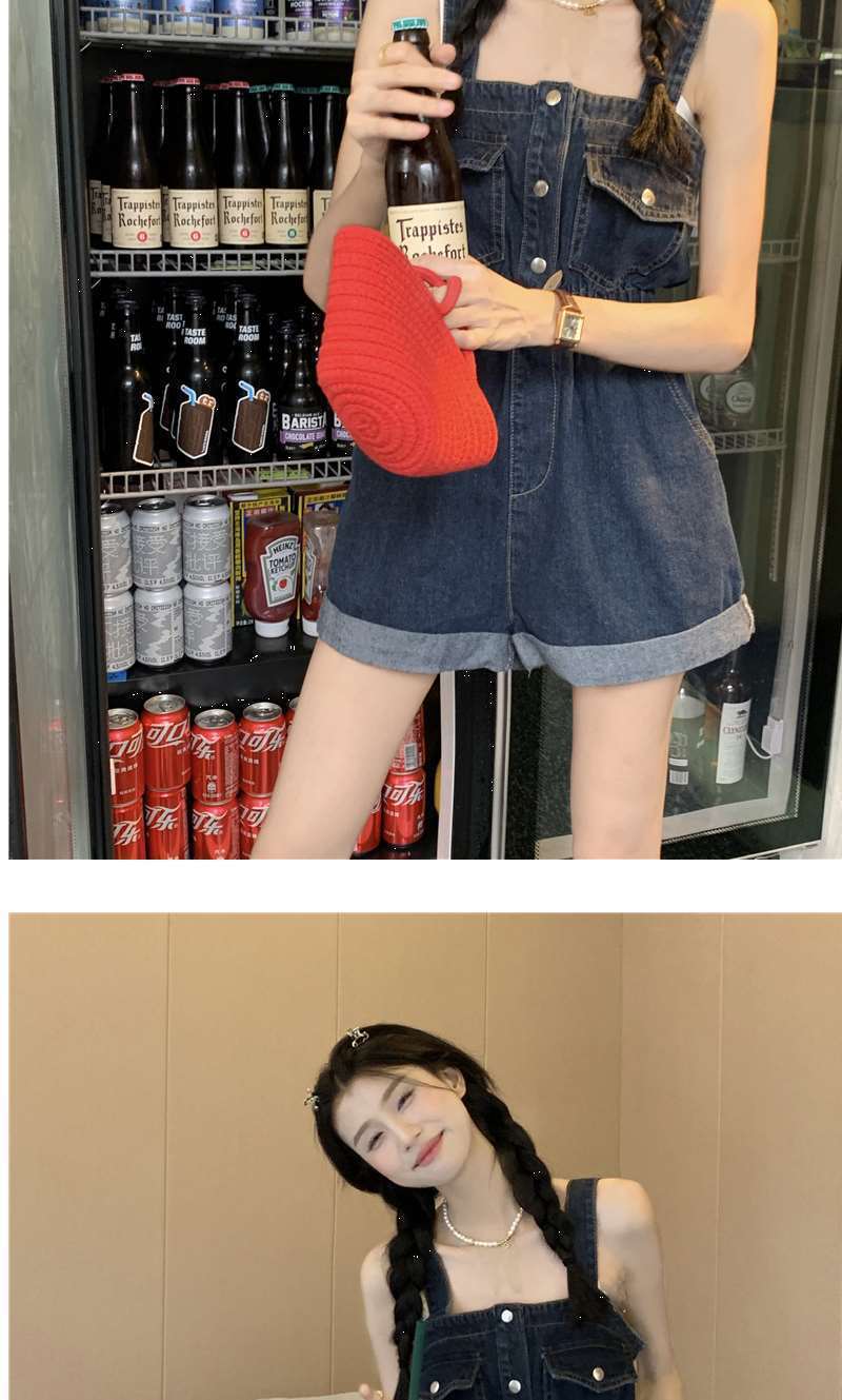 Shorts de Peto de Mezclilla para Mujer Primavera 2025 Nuevo Diseño Retro Ropa de Trabajo Cintura Adelgazante Look Pantalones de Pierna Ancha con Dobladillo