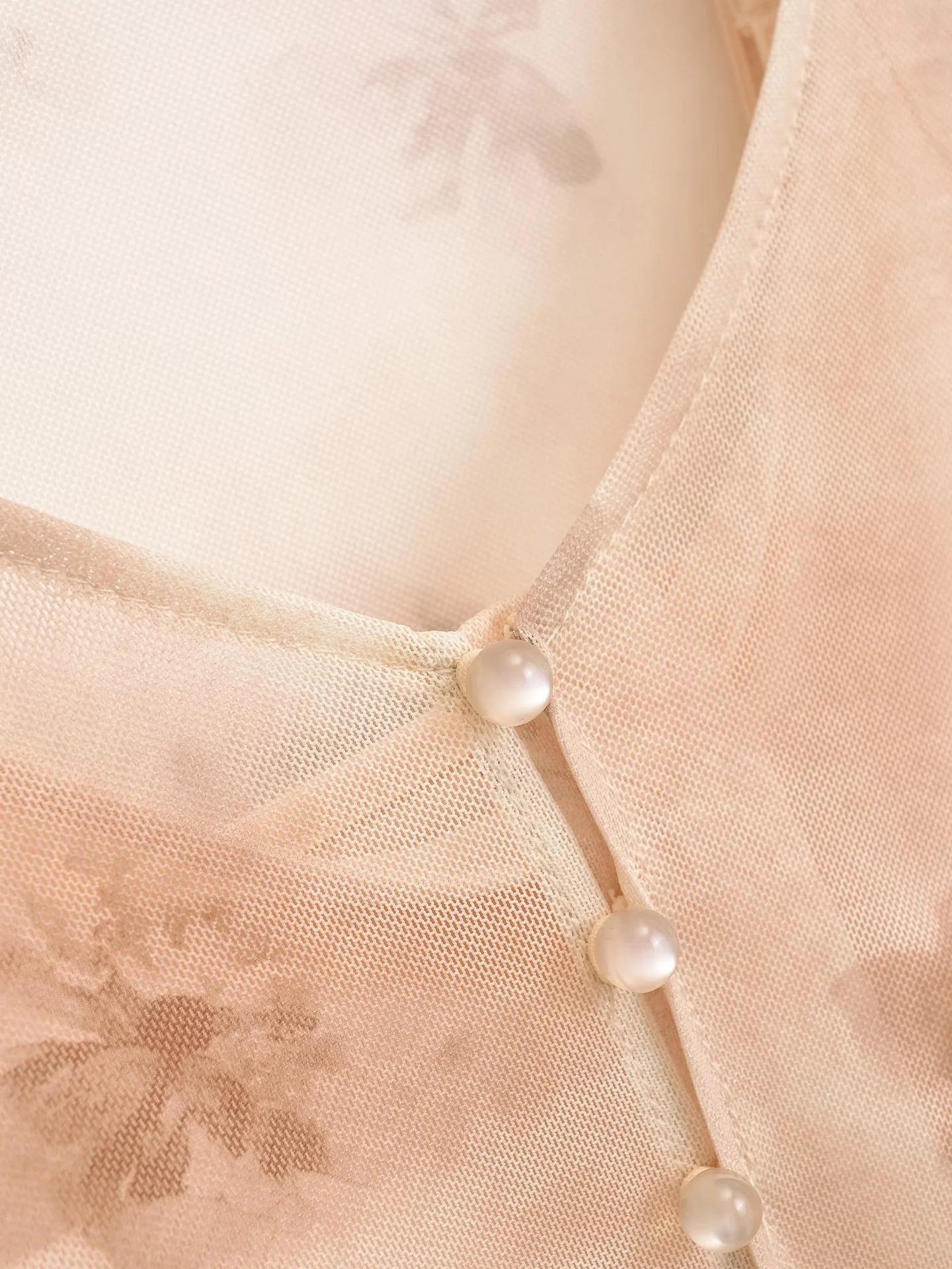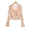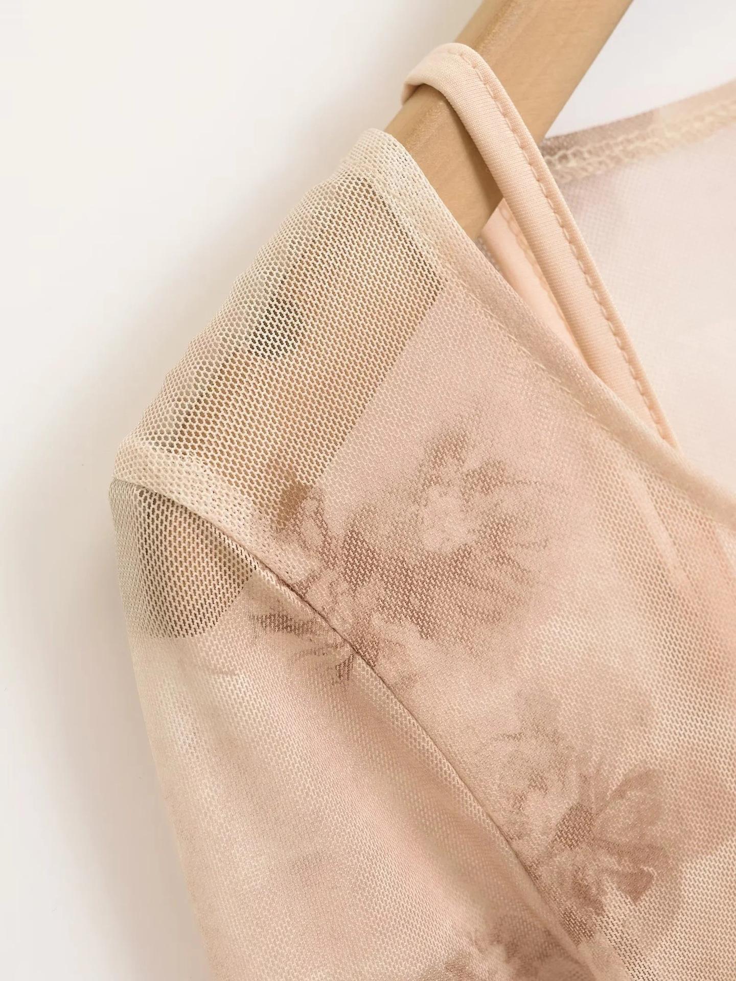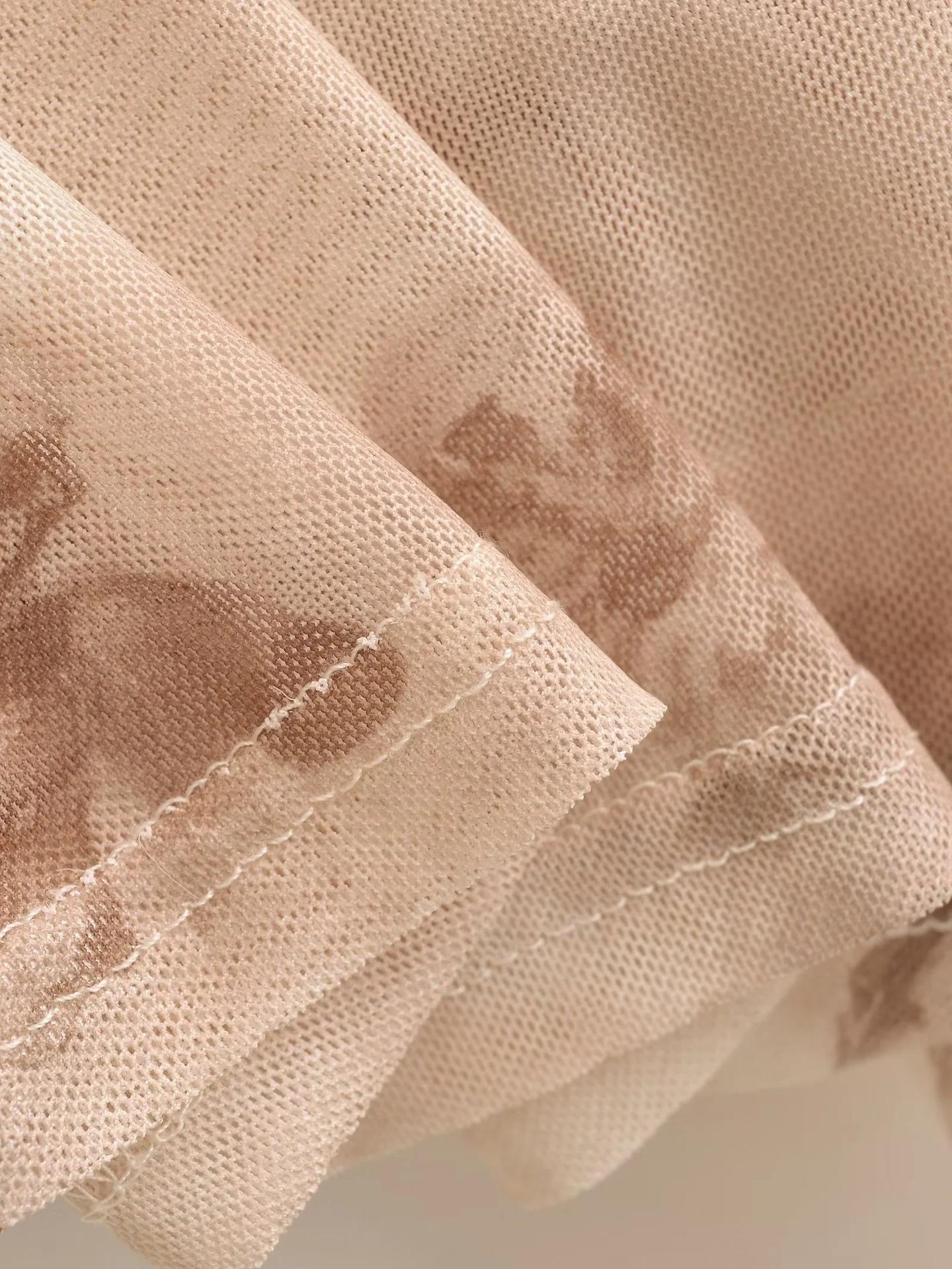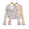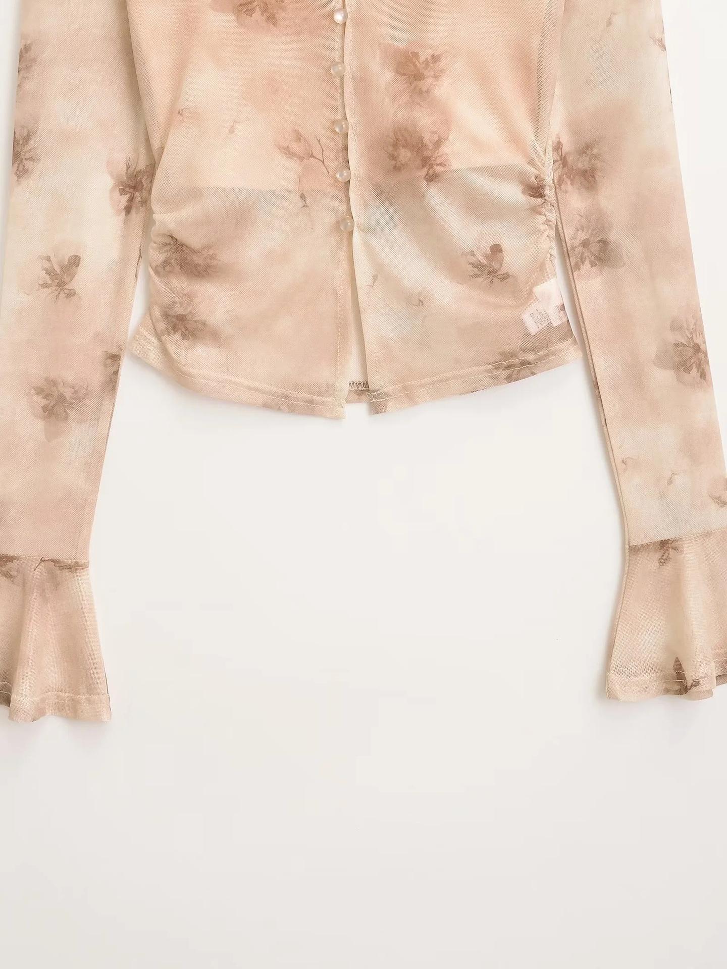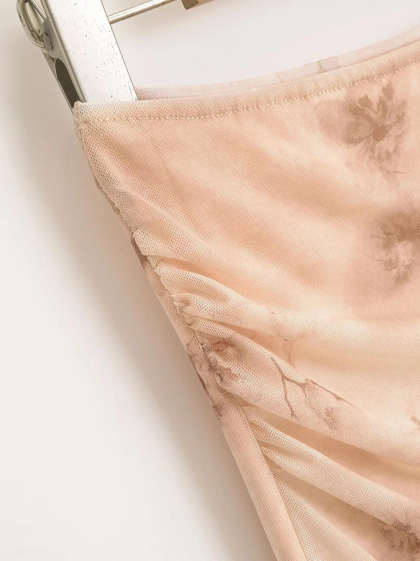Nuevo Verano 2024 Spice Girl Vintage Top de Manga Trompeta con Costuras de Malla Falda de Cola de Pez de Cintura Alta Conjunto de Dos Piezas para Mujer