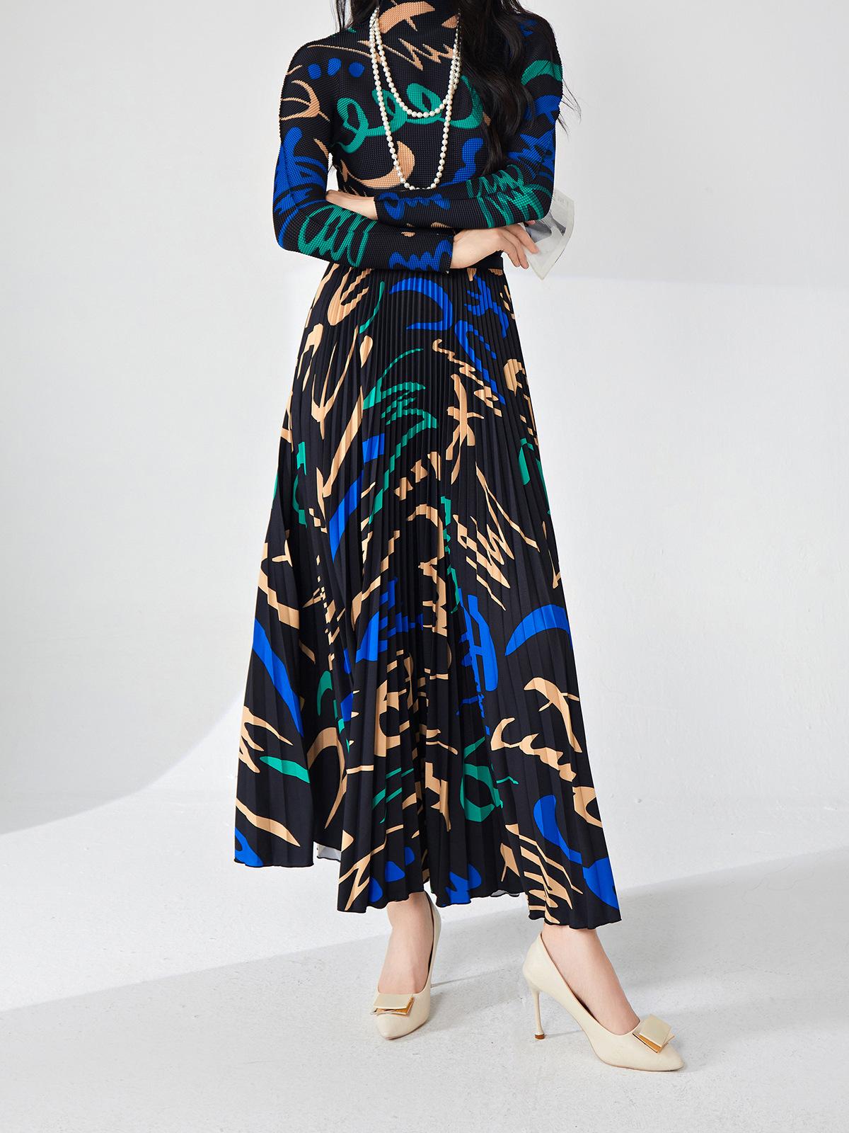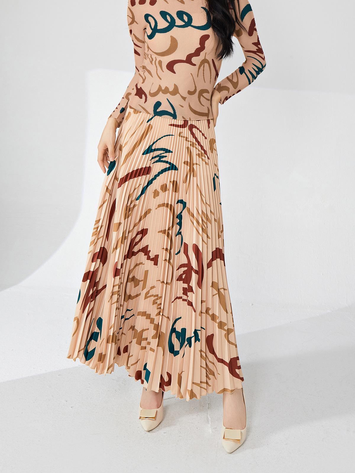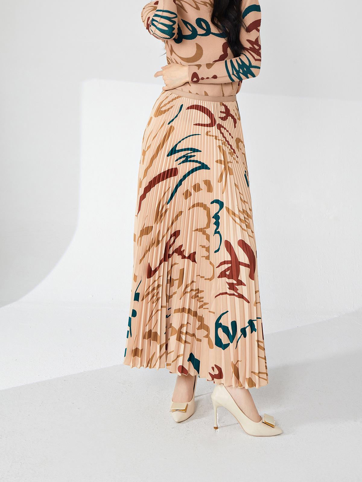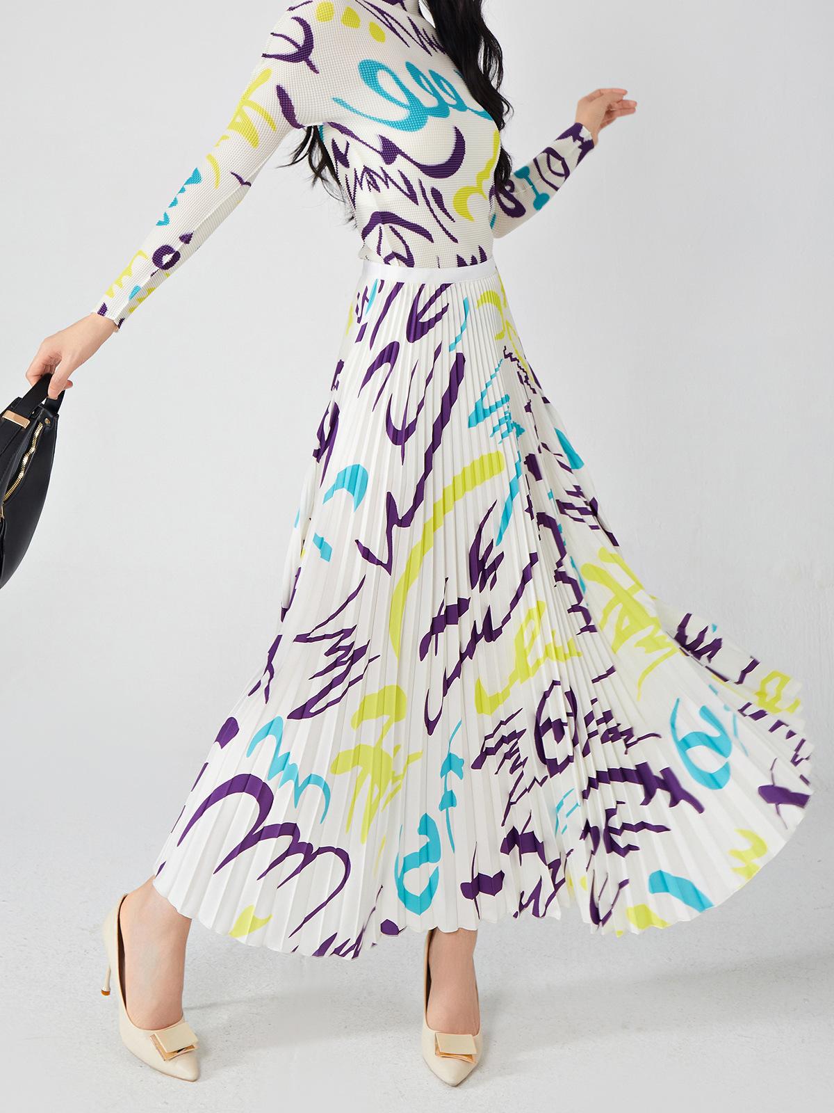 Nanyou ropa de mujer de alta gama al por mayor falda plisada suelta drapeada de cintura elástica falda Miyake verano falda de línea A de alta gama