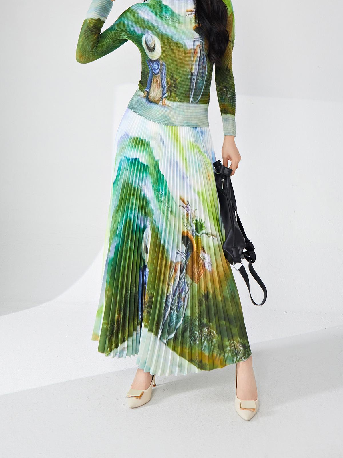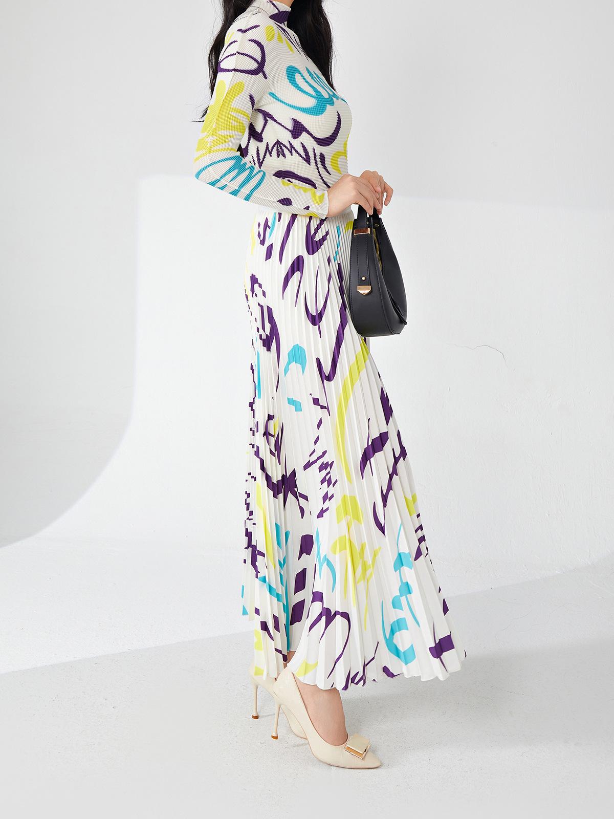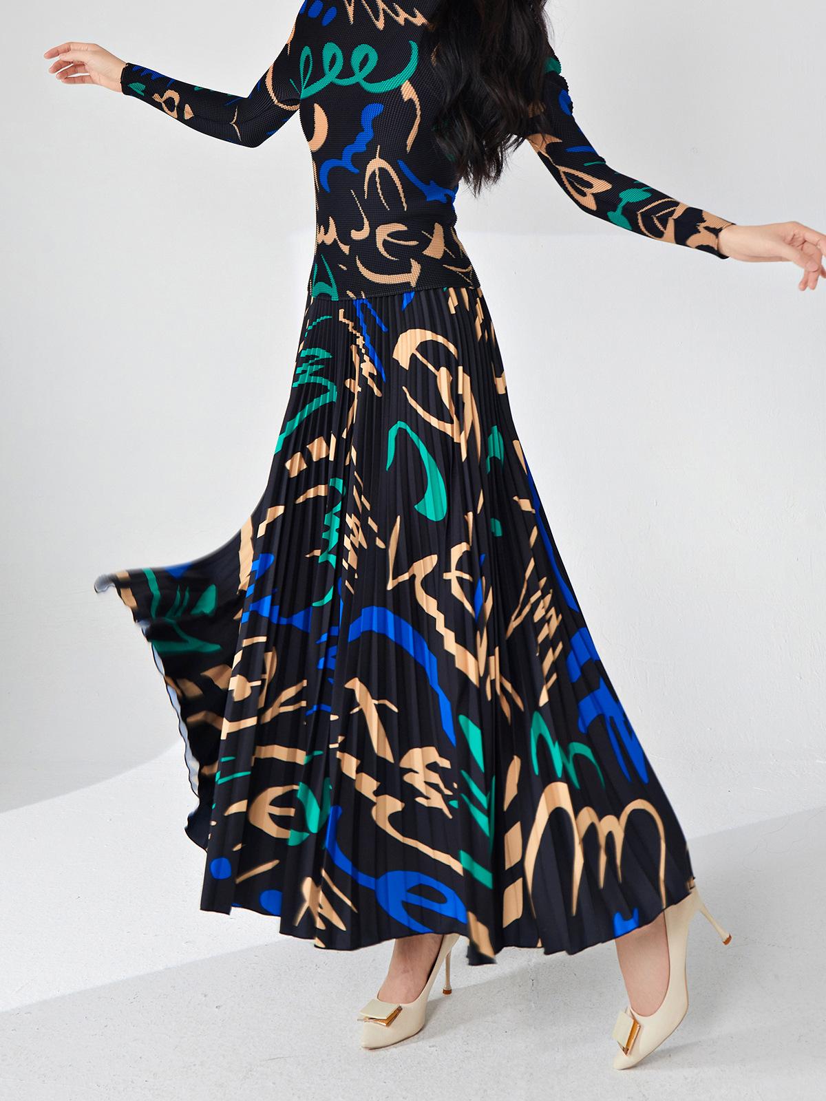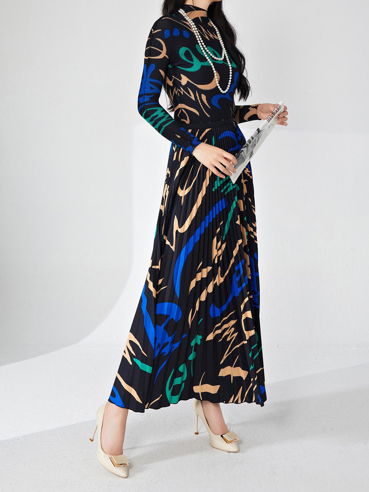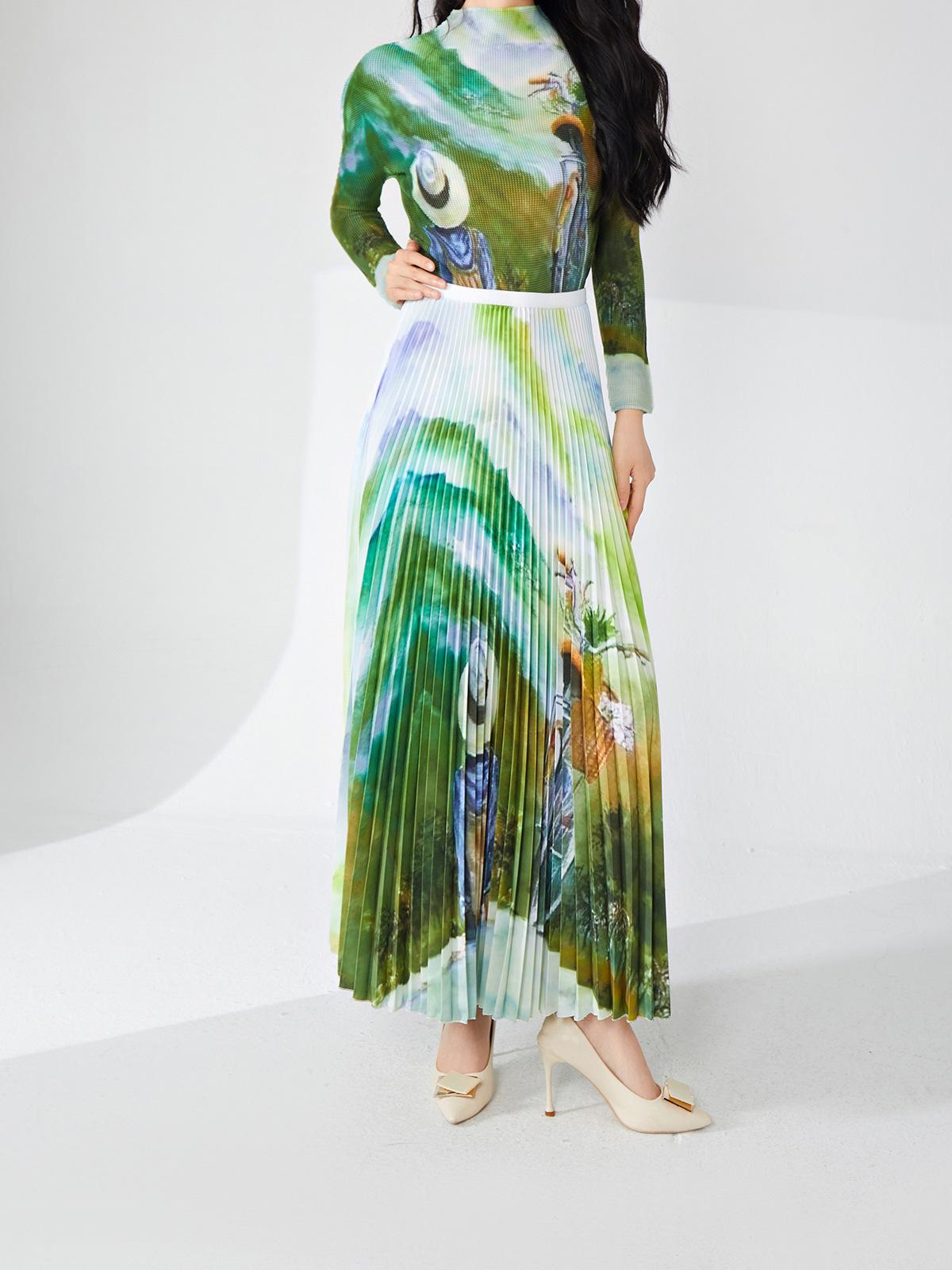 Nanyou ropa de mujer de alta gama al por mayor falda plisada suelta drapeada de cintura elástica falda Miyake verano falda de línea A de alta gama
