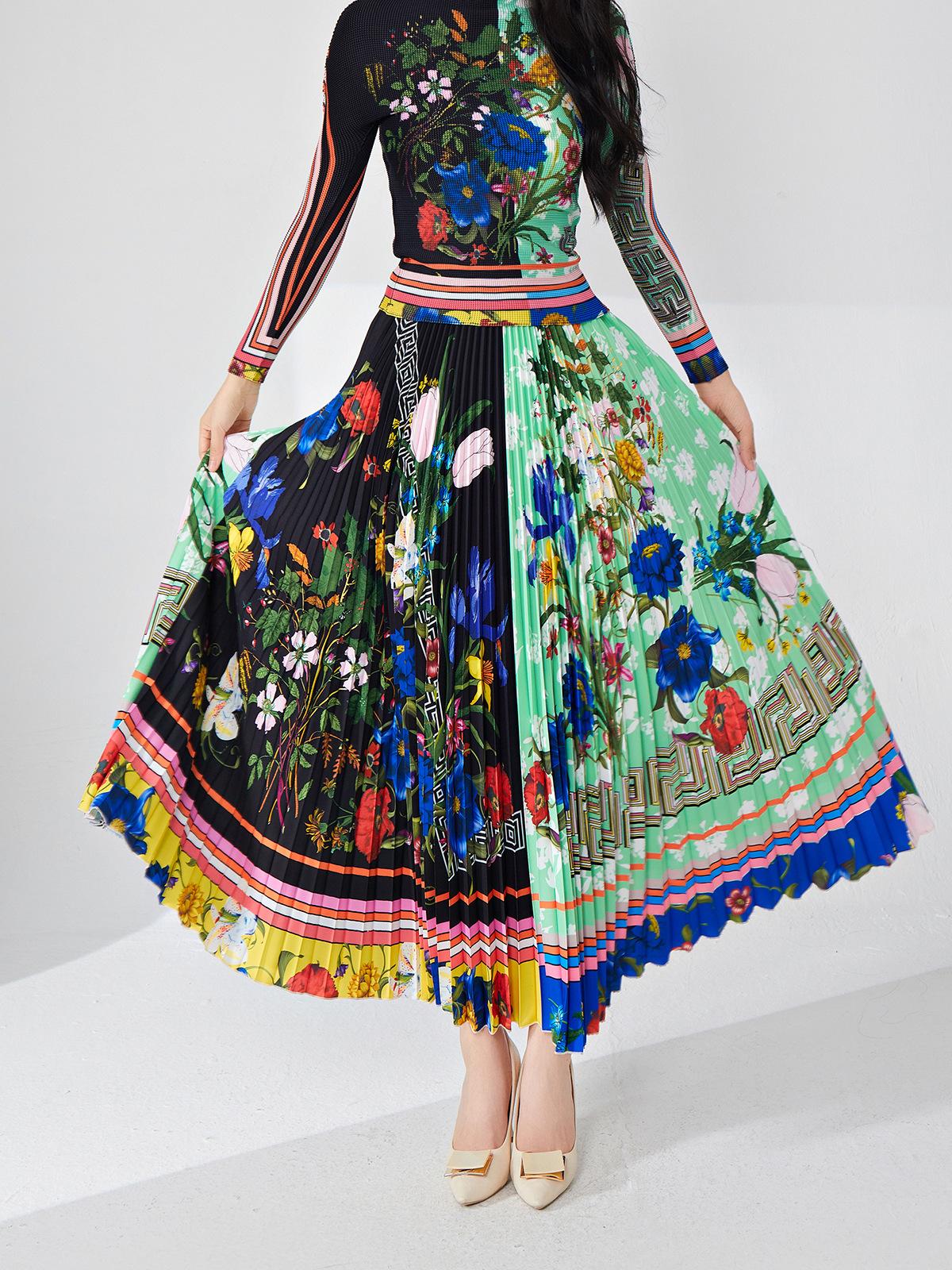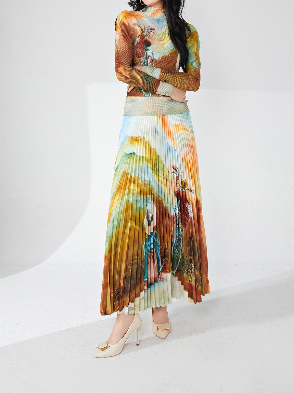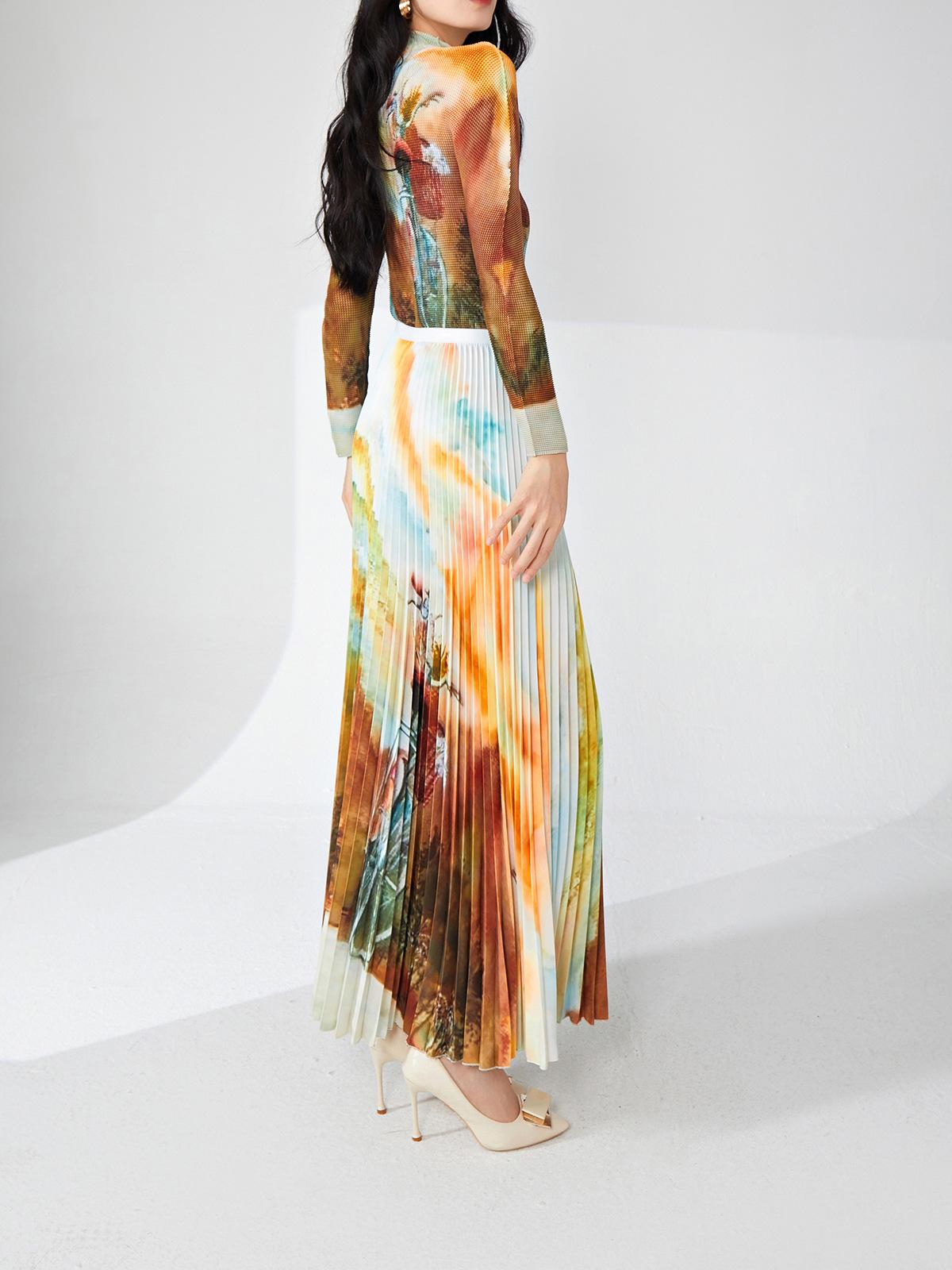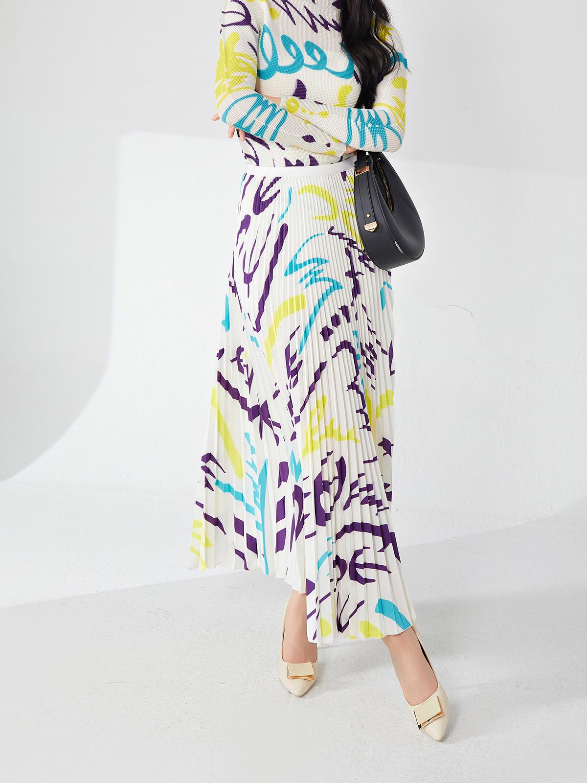 Nanyou ropa de mujer de alta gama al por mayor falda plisada suelta drapeada de cintura elástica falda Miyake verano falda de línea A de alta gama