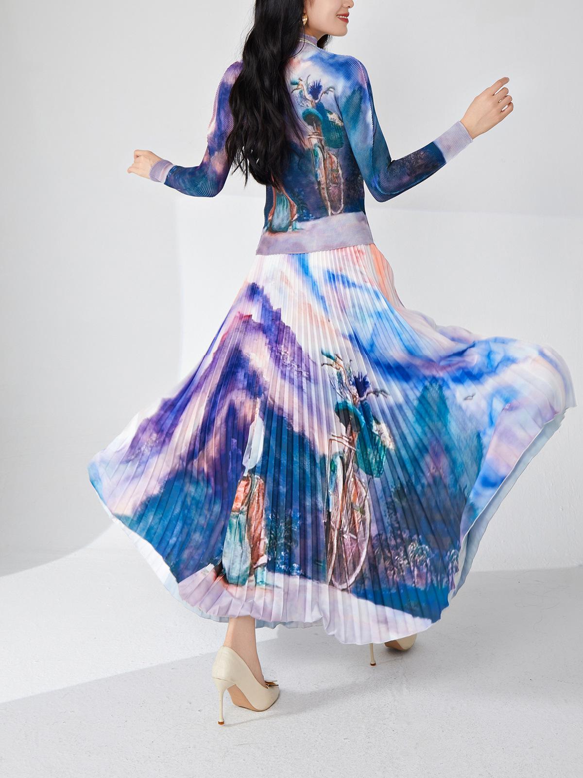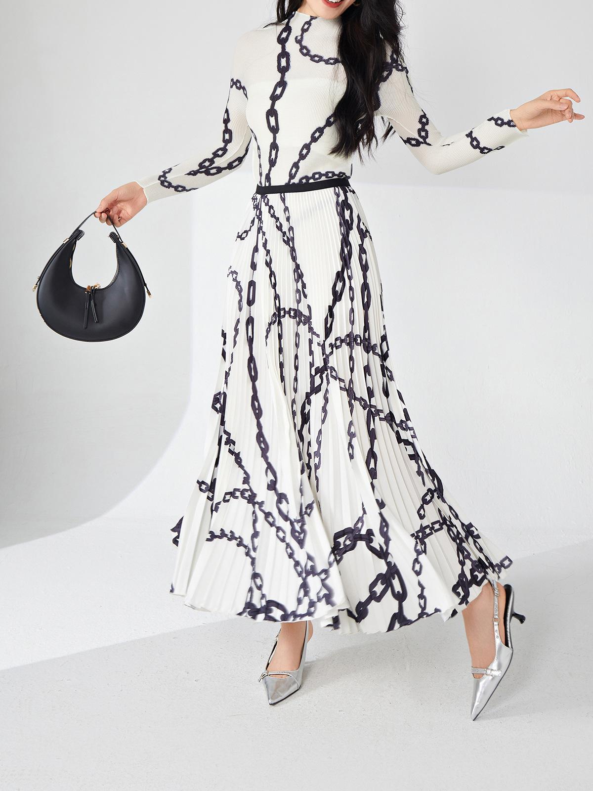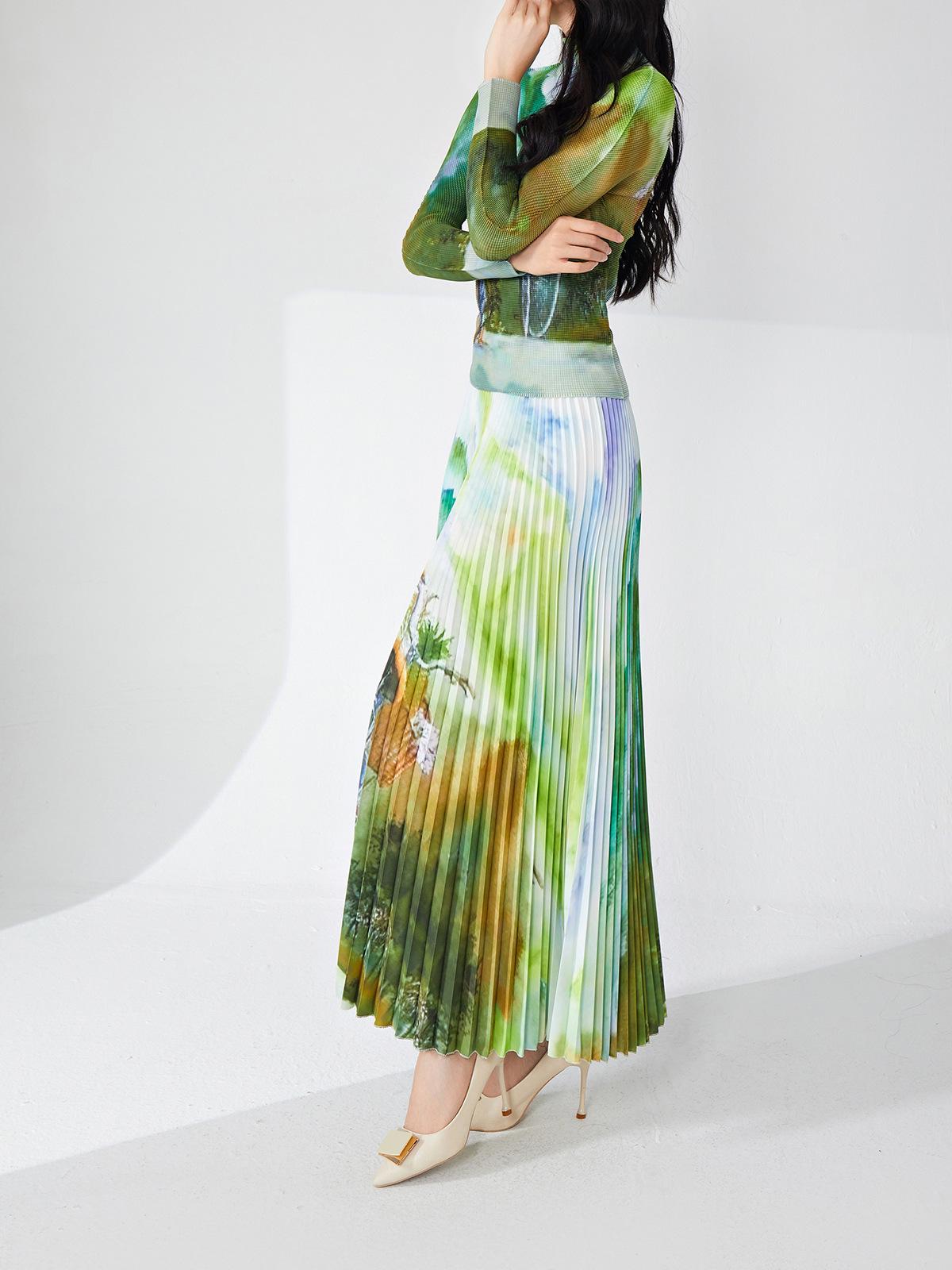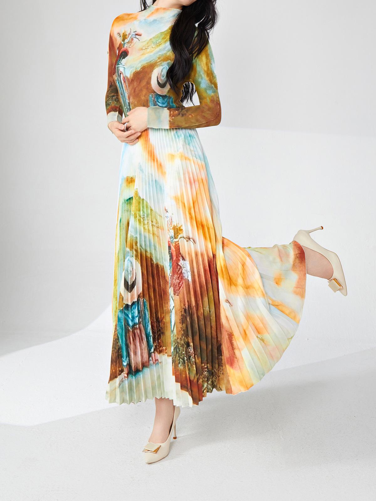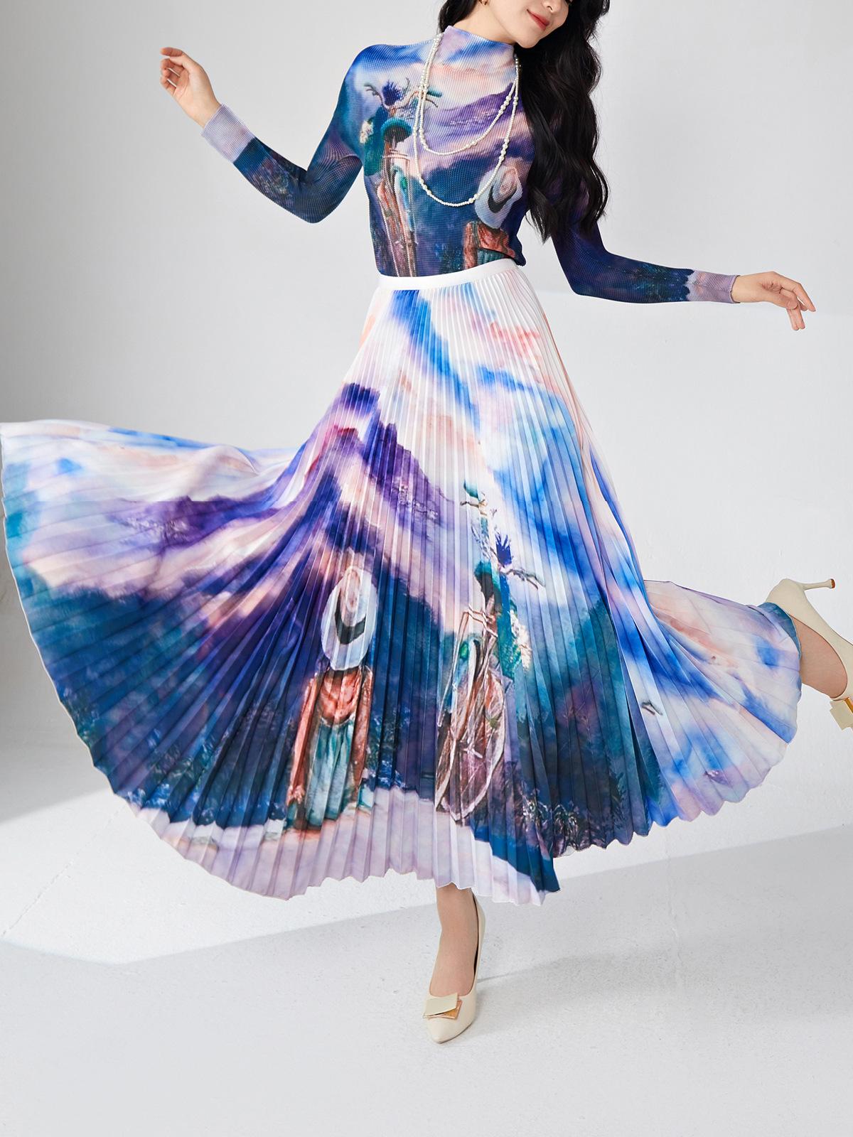 Nanyou ropa de mujer de alta gama al por mayor falda plisada suelta drapeada de cintura elástica falda Miyake verano falda de línea A de alta gama