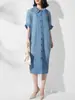 Vestido suelto informal plisado para mujer, nuevo vestido de verano de color liso a la moda con solapa y botones, cuello camisero de manga corta y largo medio.