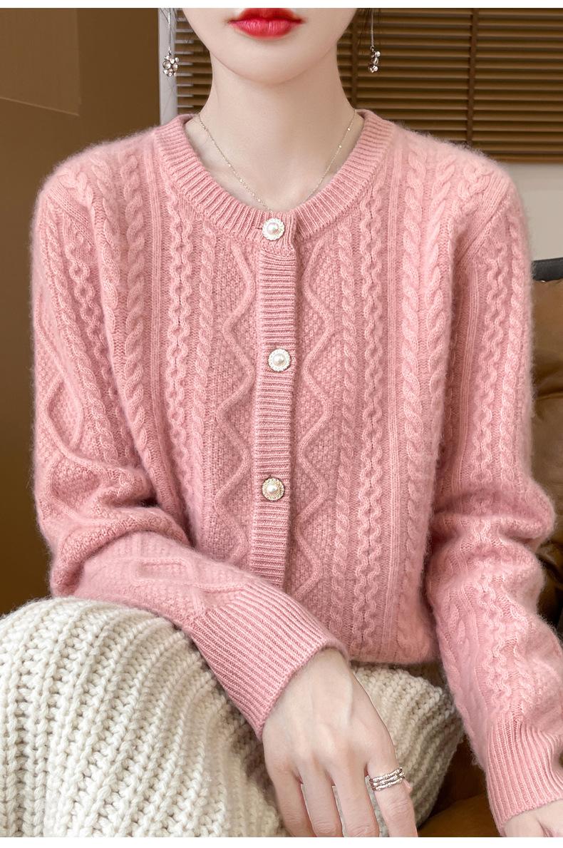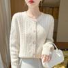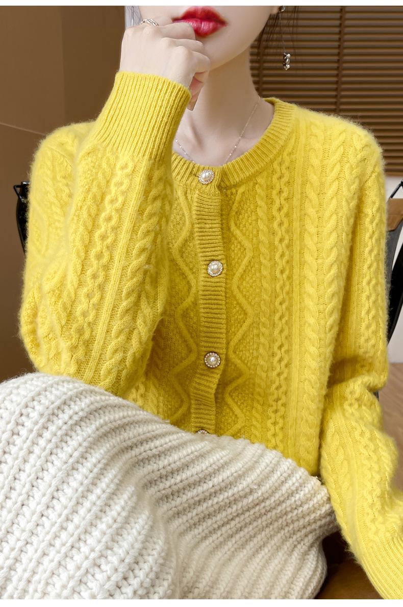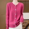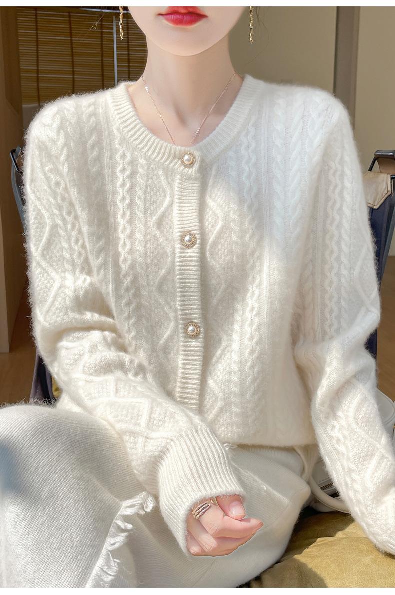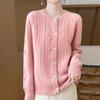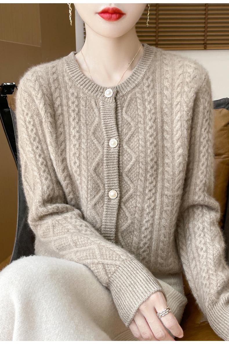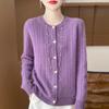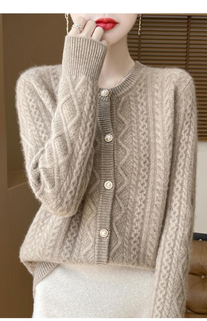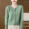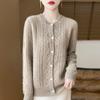 Cárdigan de punto de lana pura para mujer, cuello redondo, hebilla de perla, color liso, manga larga, abrigo grueso para ir al trabajo, novedad de 2024