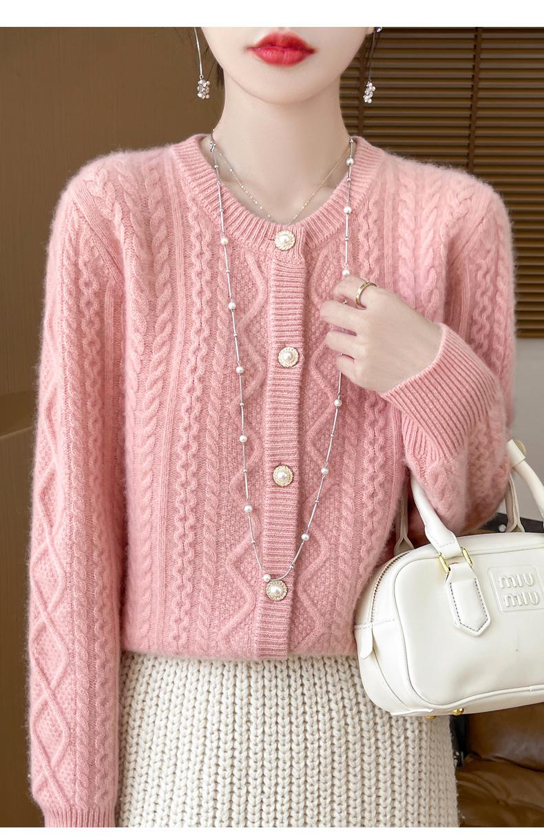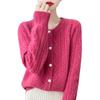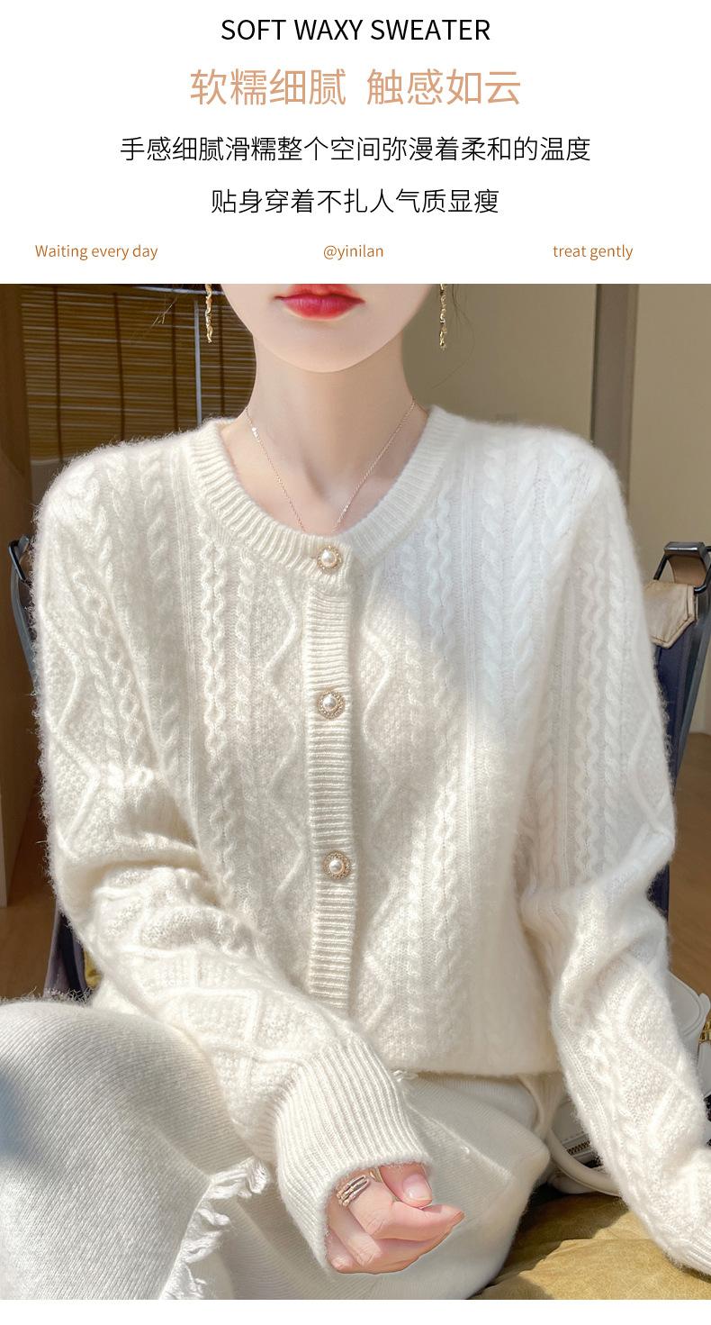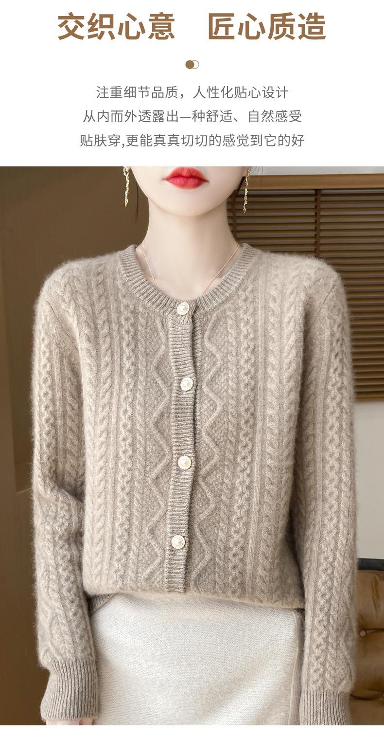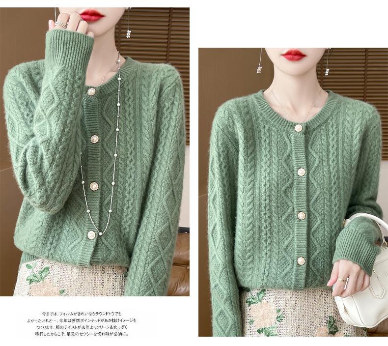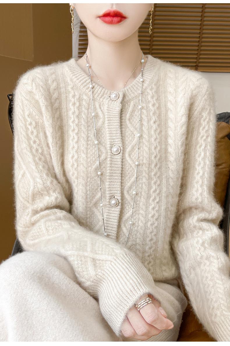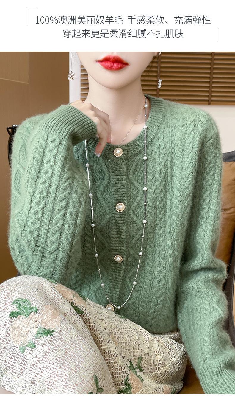 Cárdigan de punto de lana pura para mujer, cuello redondo, hebilla de perla, color liso, manga larga, abrigo grueso para ir al trabajo, novedad de 2024