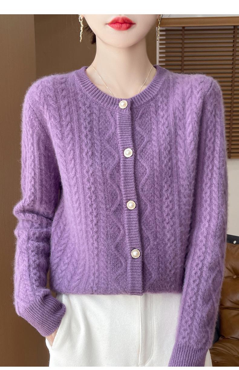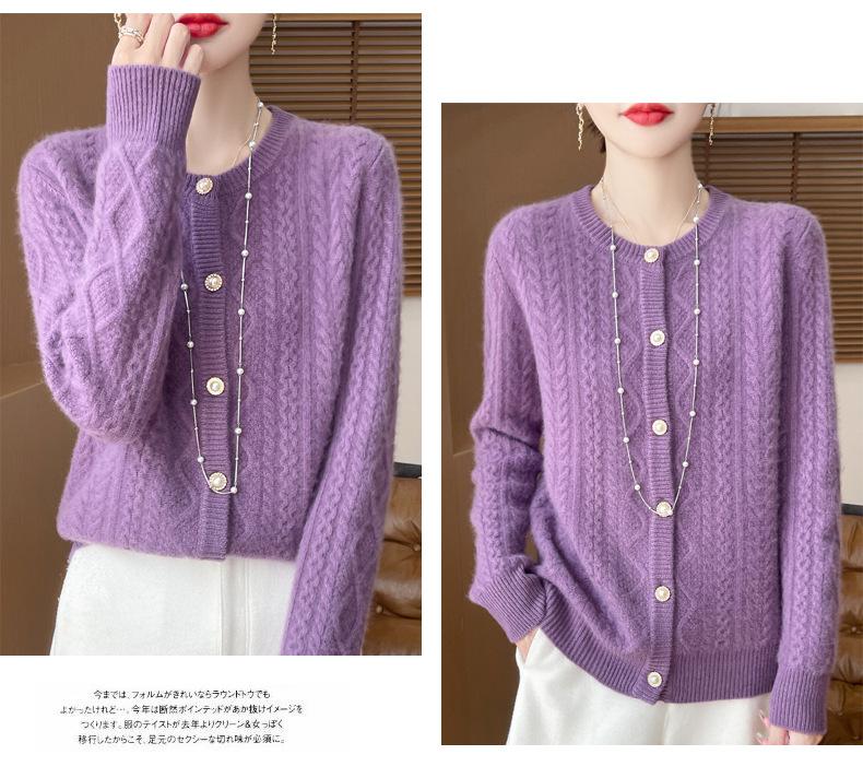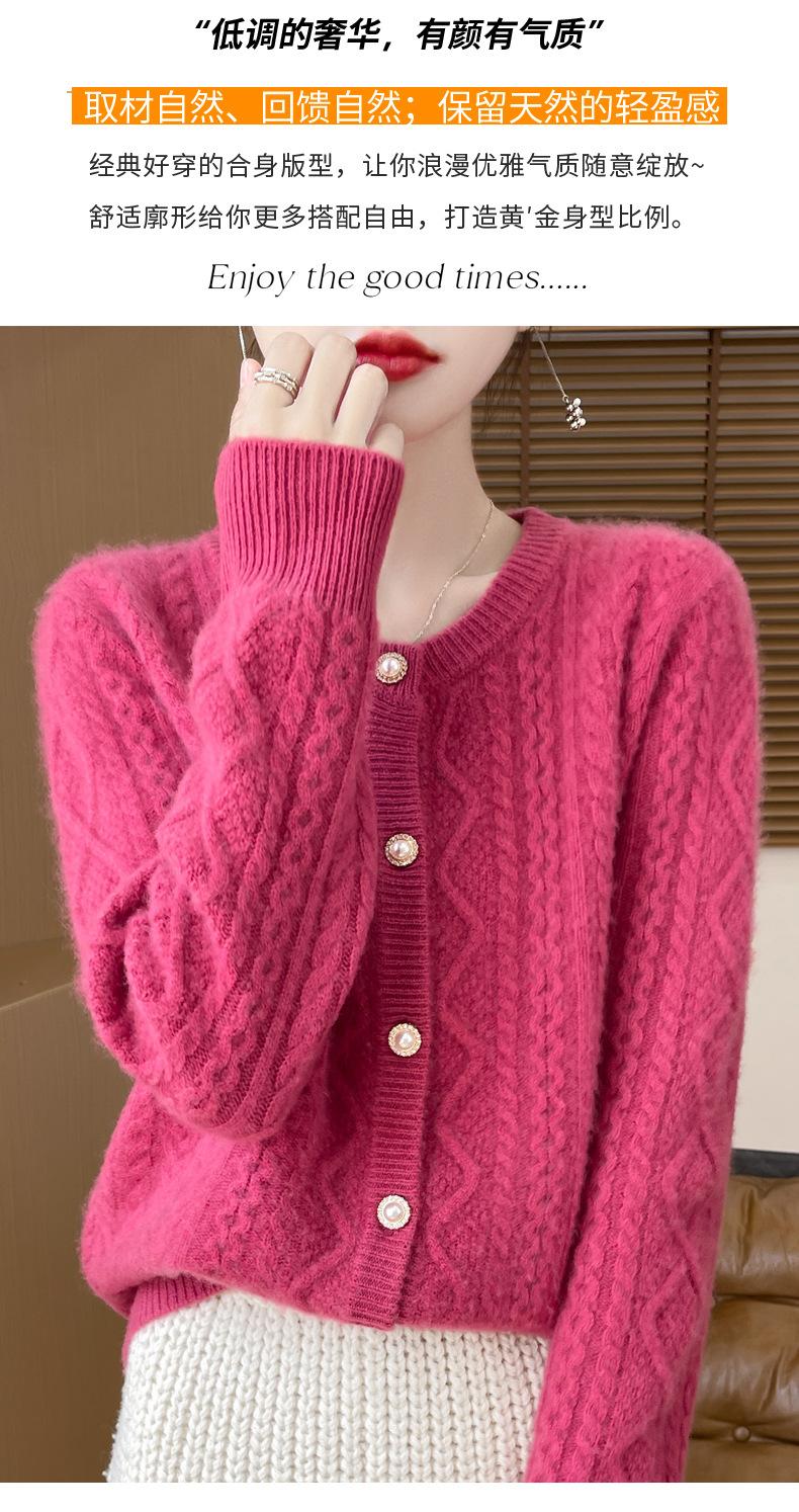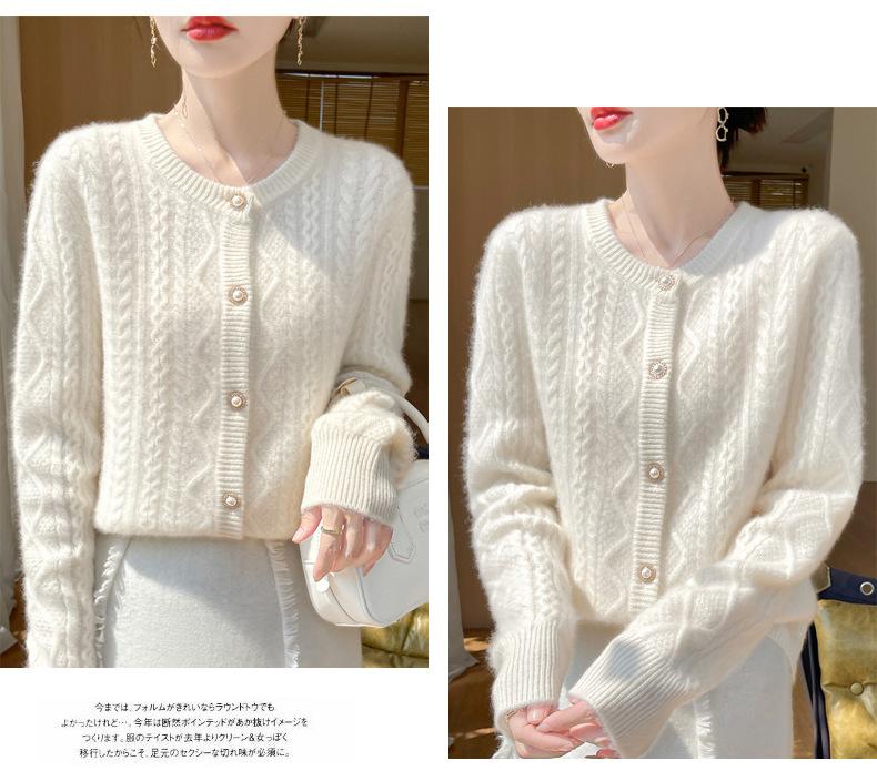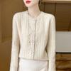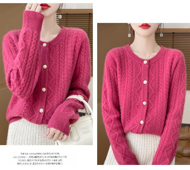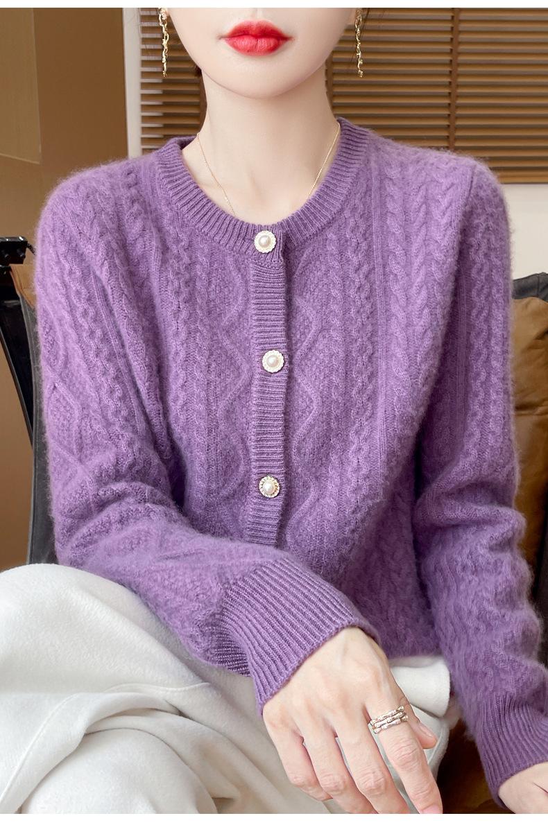 Cárdigan de punto de lana pura para mujer, cuello redondo, hebilla de perla, color liso, manga larga, abrigo grueso para ir al trabajo, novedad de 2024