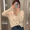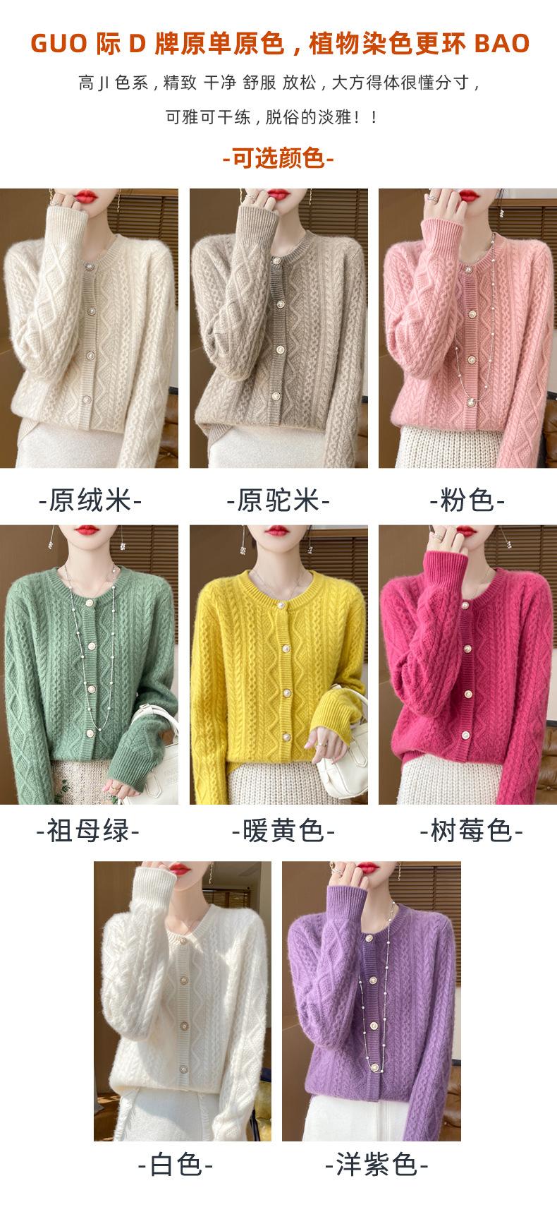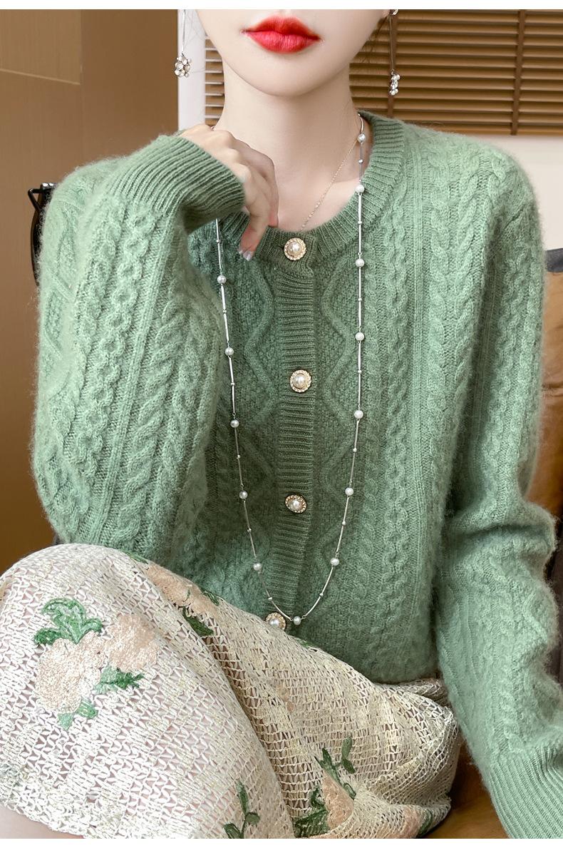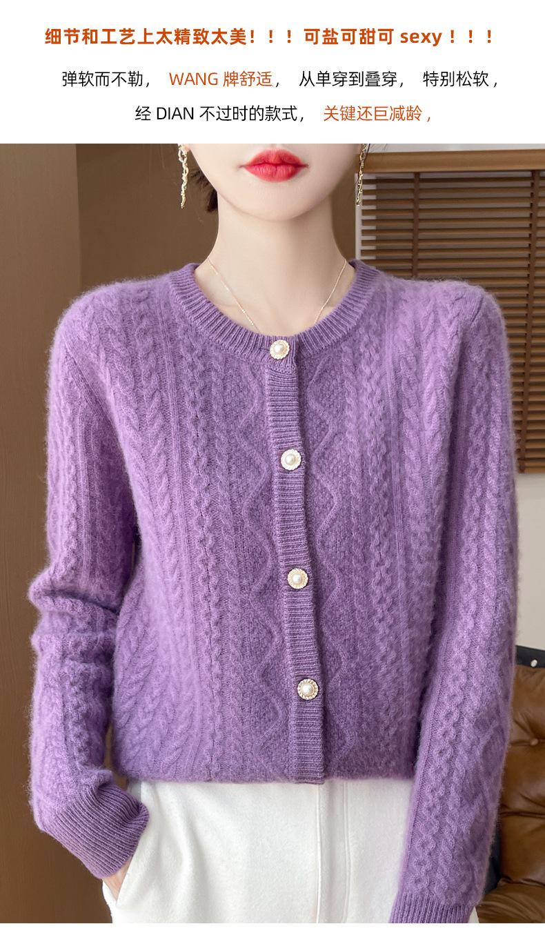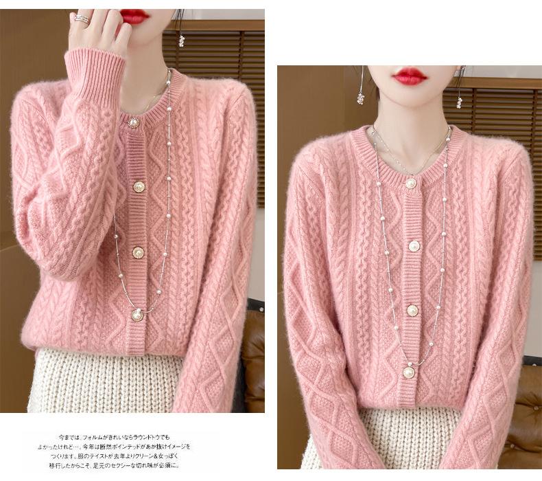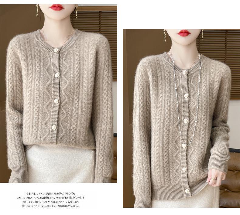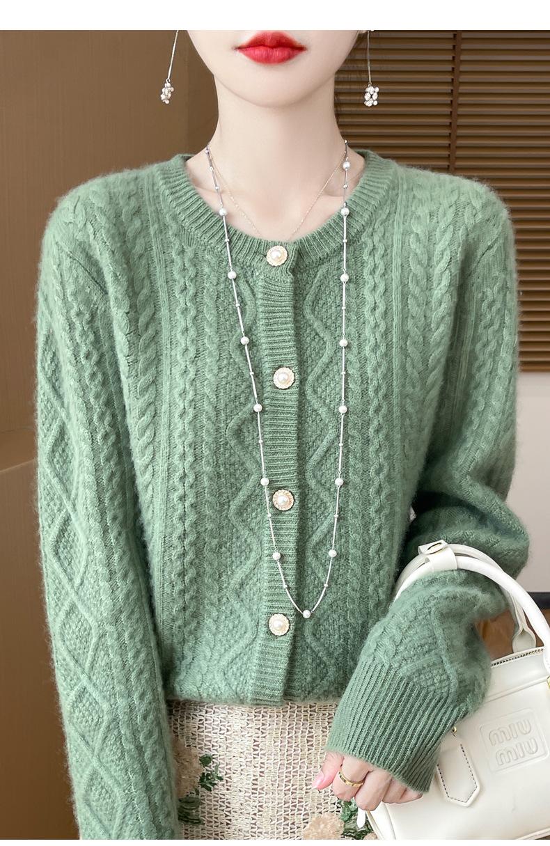 Cárdigan de punto de lana pura para mujer, cuello redondo, hebilla de perla, color liso, manga larga, abrigo grueso para ir al trabajo, novedad de 2024