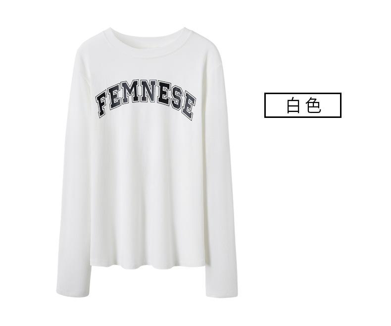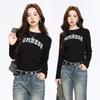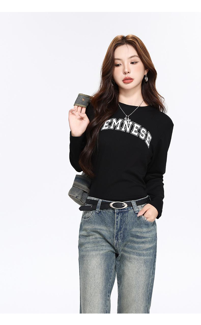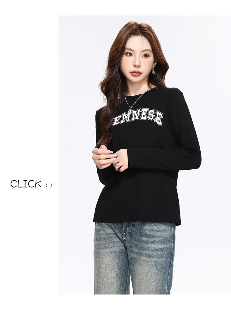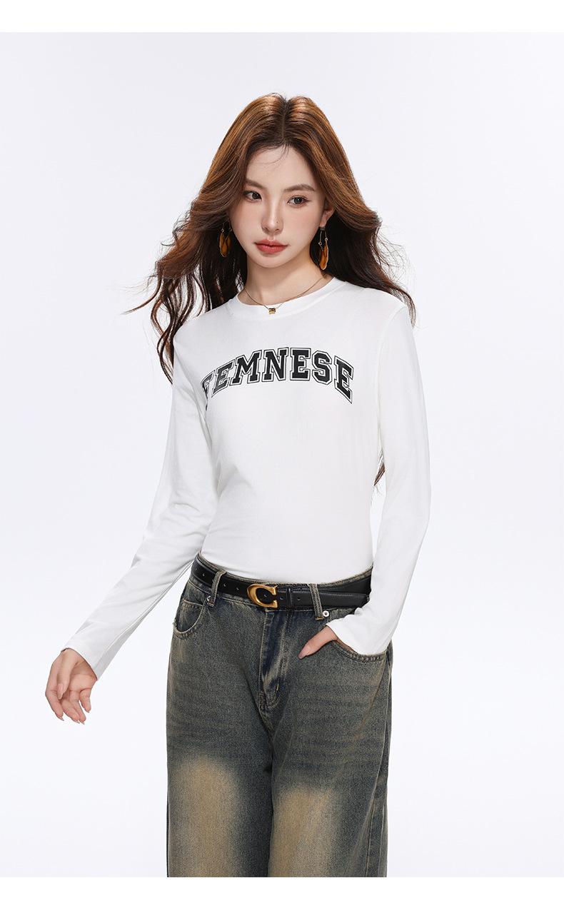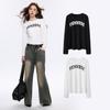 Camiseta Blanca de Manga Larga para Mujer Otoño 2025 Nueva Cuello Redondo Corte Holgado Adelgazante Moda con Estampado de Letras Camiseta Básica para Uso Exterior