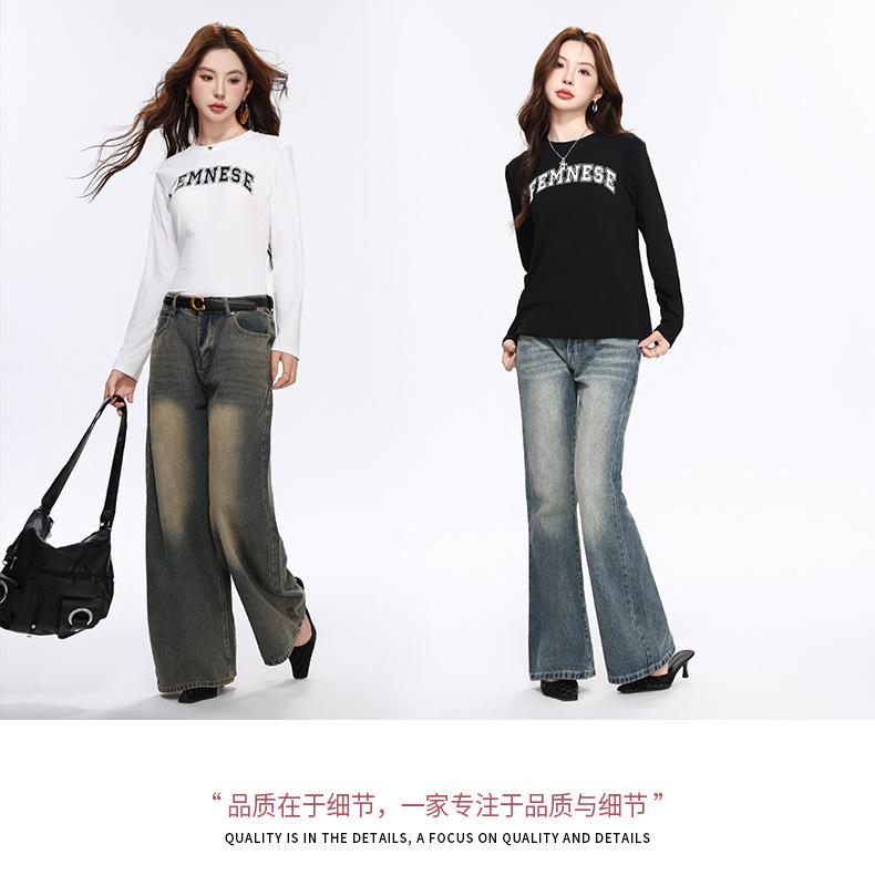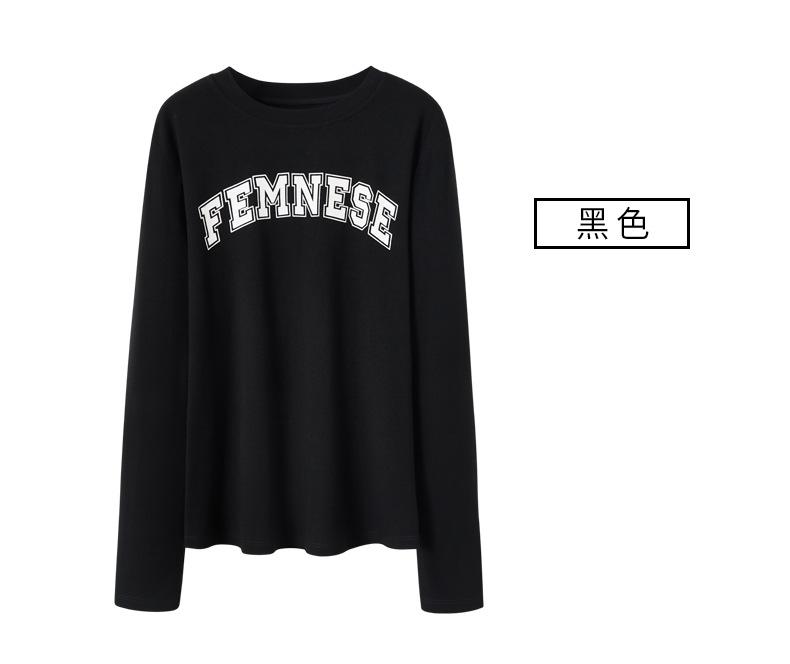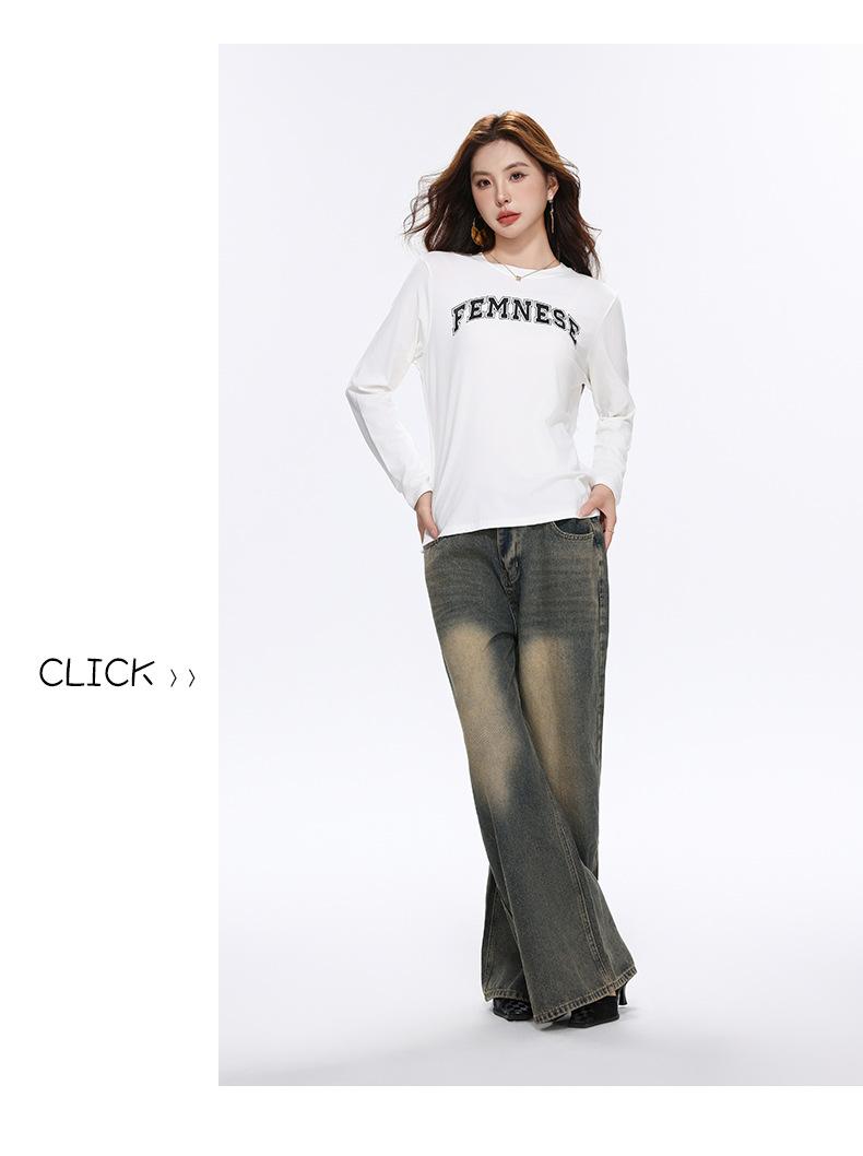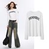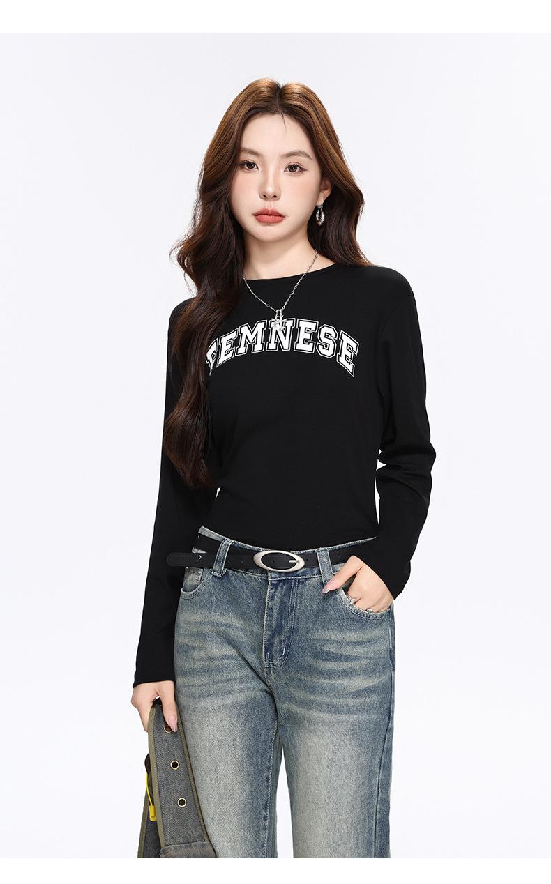 Camiseta Blanca de Manga Larga para Mujer Otoño 2025 Nueva Cuello Redondo Corte Holgado Adelgazante Moda con Estampado de Letras Camiseta Básica para Uso Exterior