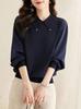 Camisa de dos piezas falsas de otoño 2024, nueva, de manga larga, holgada, a la moda, con estilo, pequeña, con base interior y costuras en la parte superior.