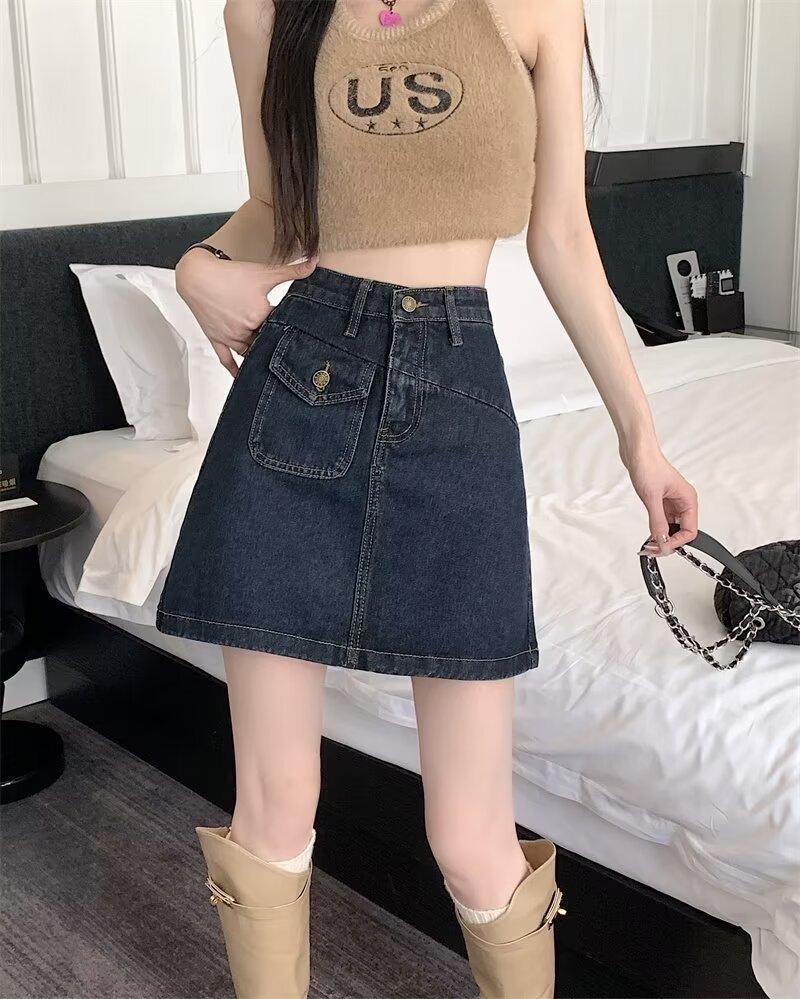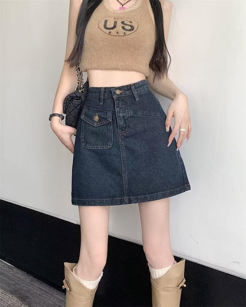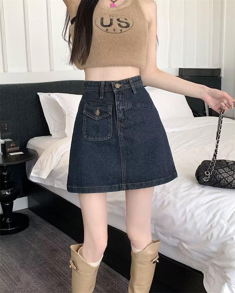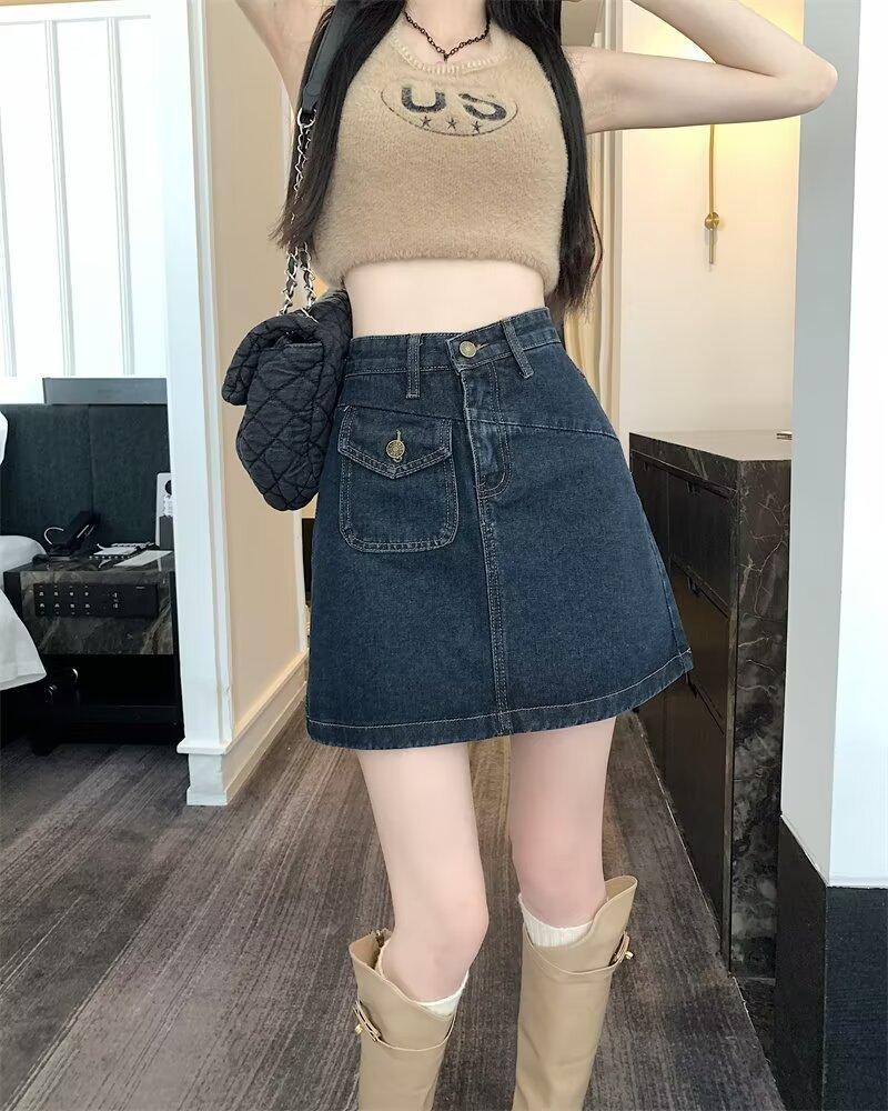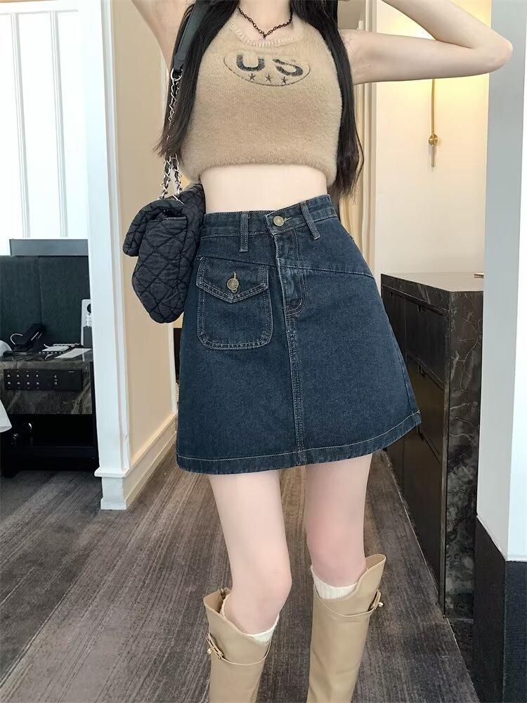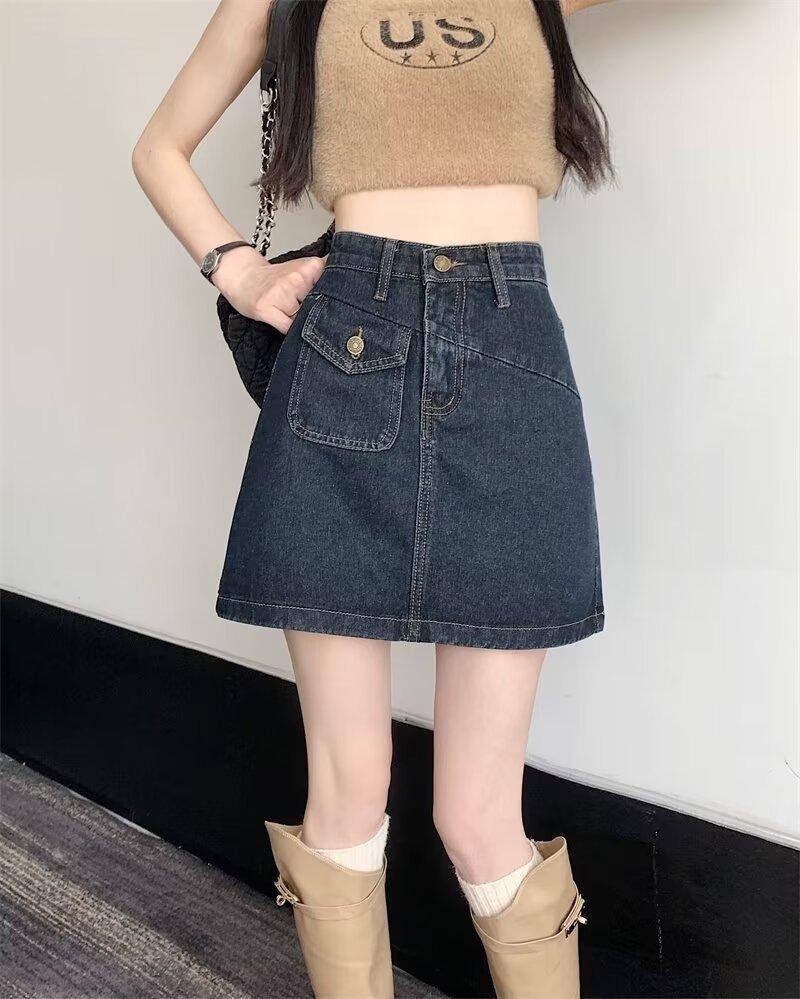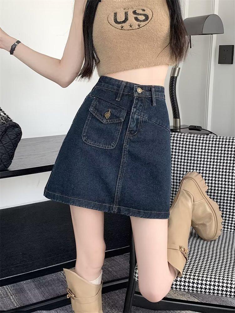 Falda vaquera para mujer, verano 2024, fina, talla grande, gordita, cintura alta, adelgazante, cadera, línea A, ropa de mujer