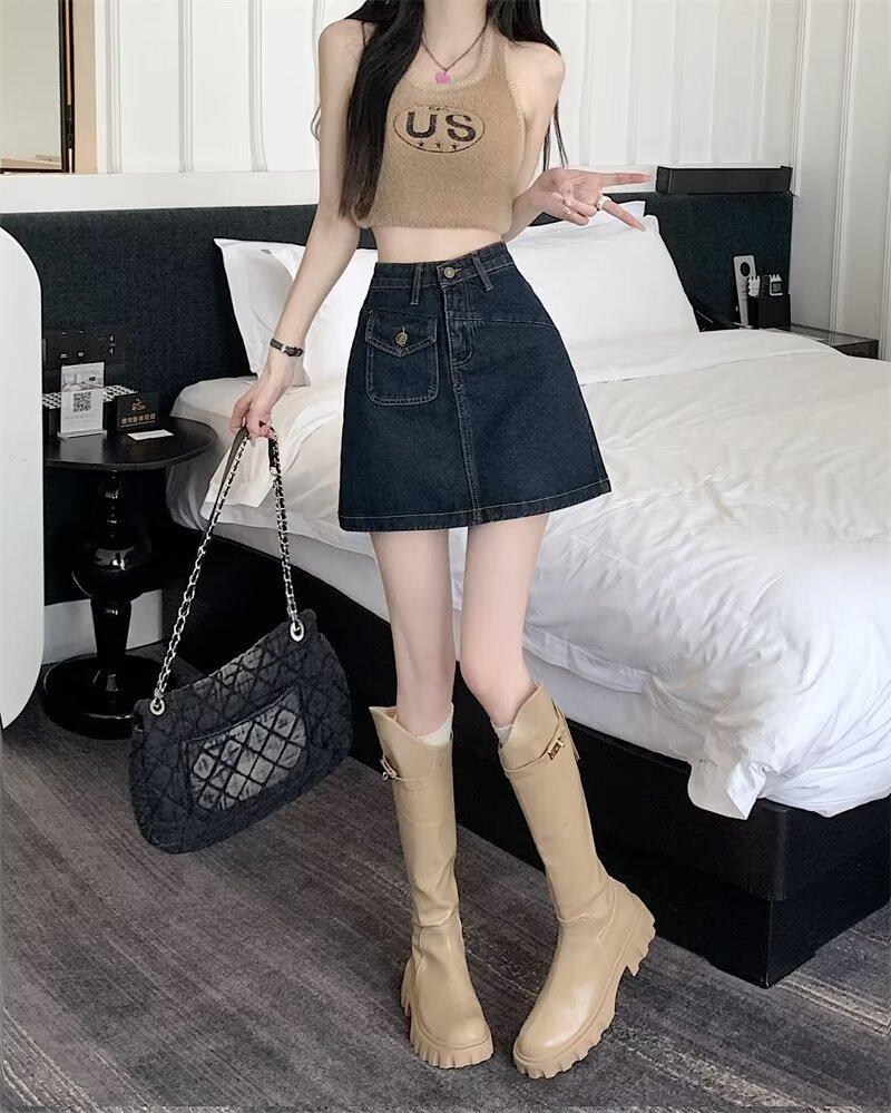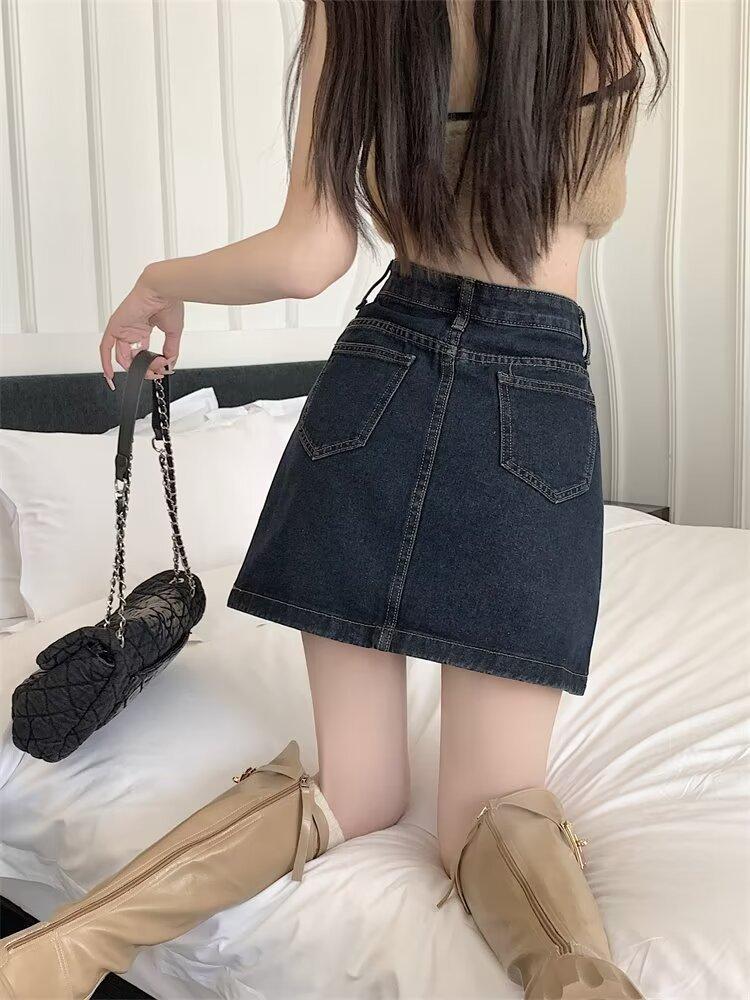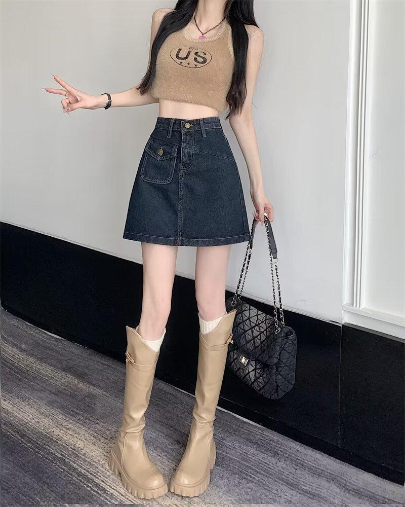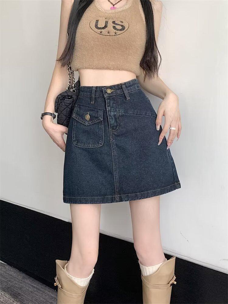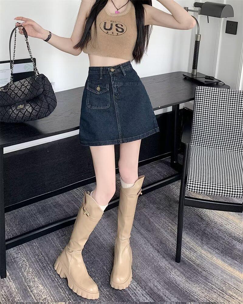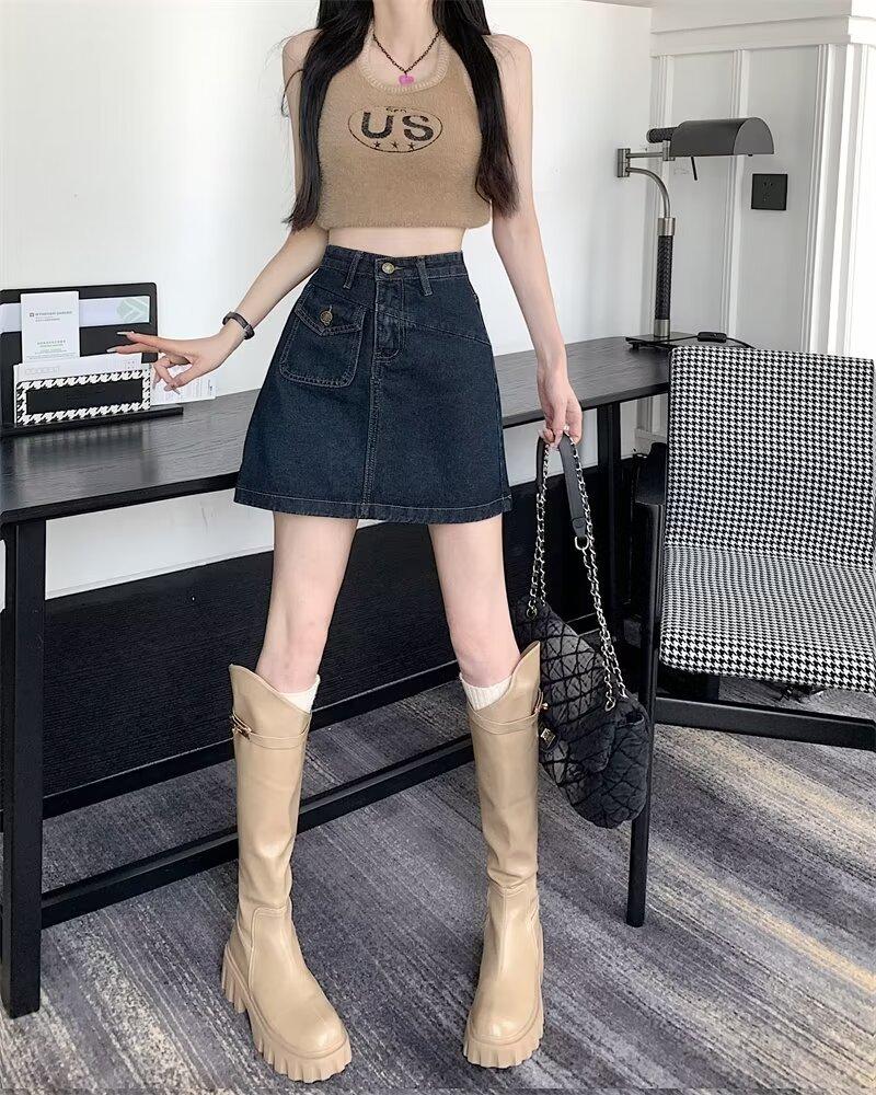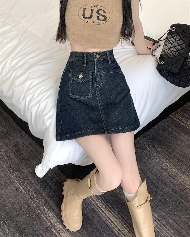 Falda vaquera para mujer, verano 2024, fina, talla grande, gordita, cintura alta, adelgazante, cadera, línea A, ropa de mujer