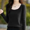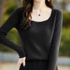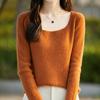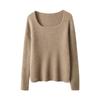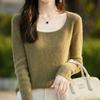 Suéter de punto con cuello en U para mujer, jersey de lana de color liso, manga larga, corte entallado, otoño/invierno, 24 unidades