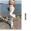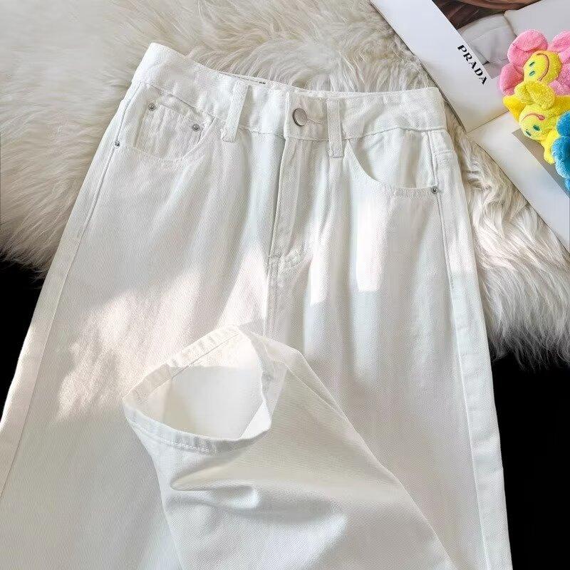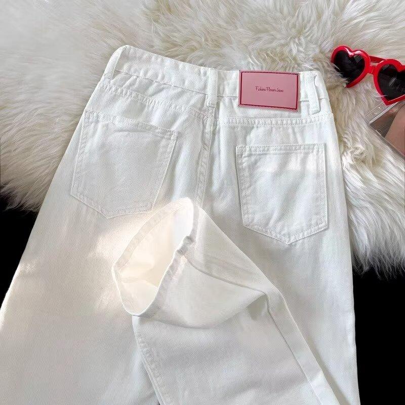 Pantalones de mezclilla rectos Primavera y Otoño nuevo popular talla grande diseño hermana gorda versátil suelto cintura alta pierna ancha