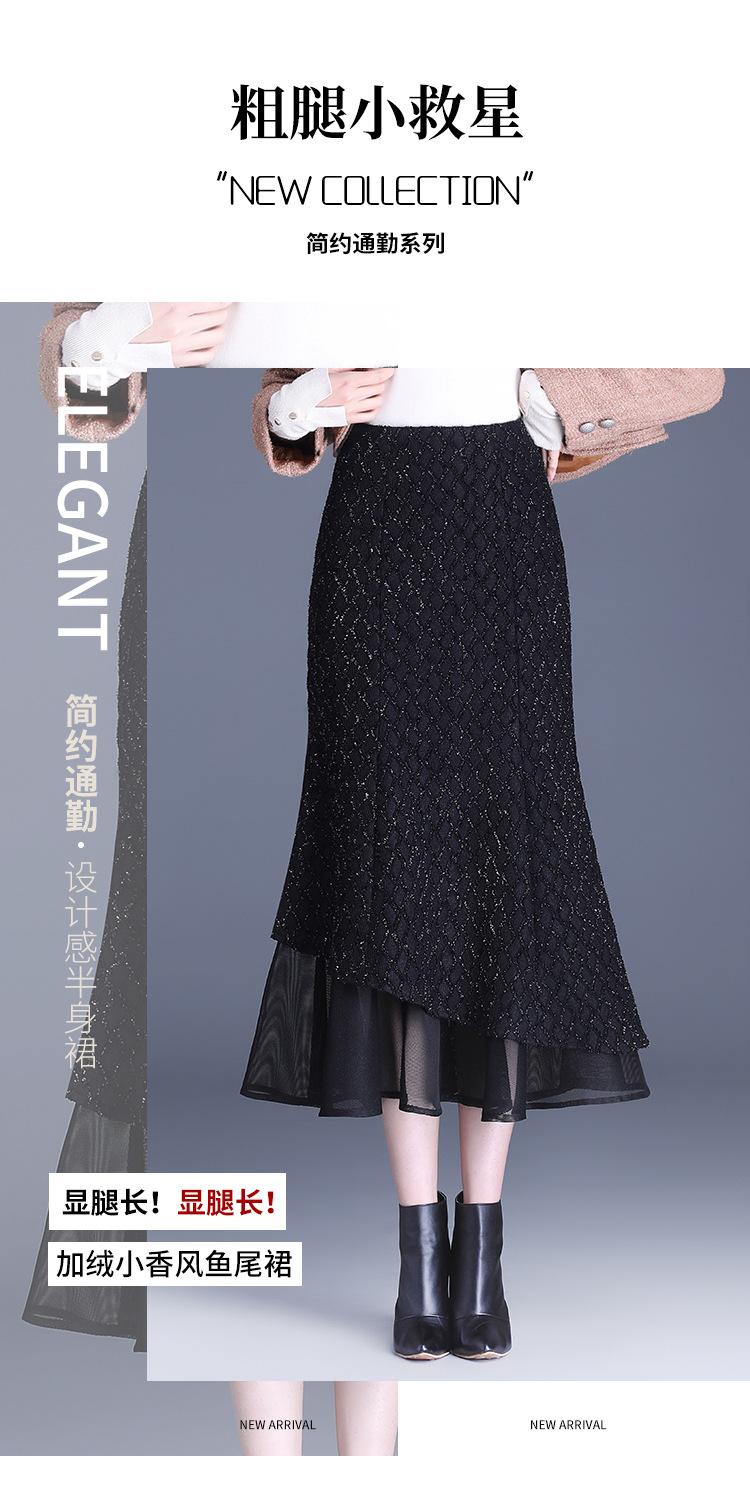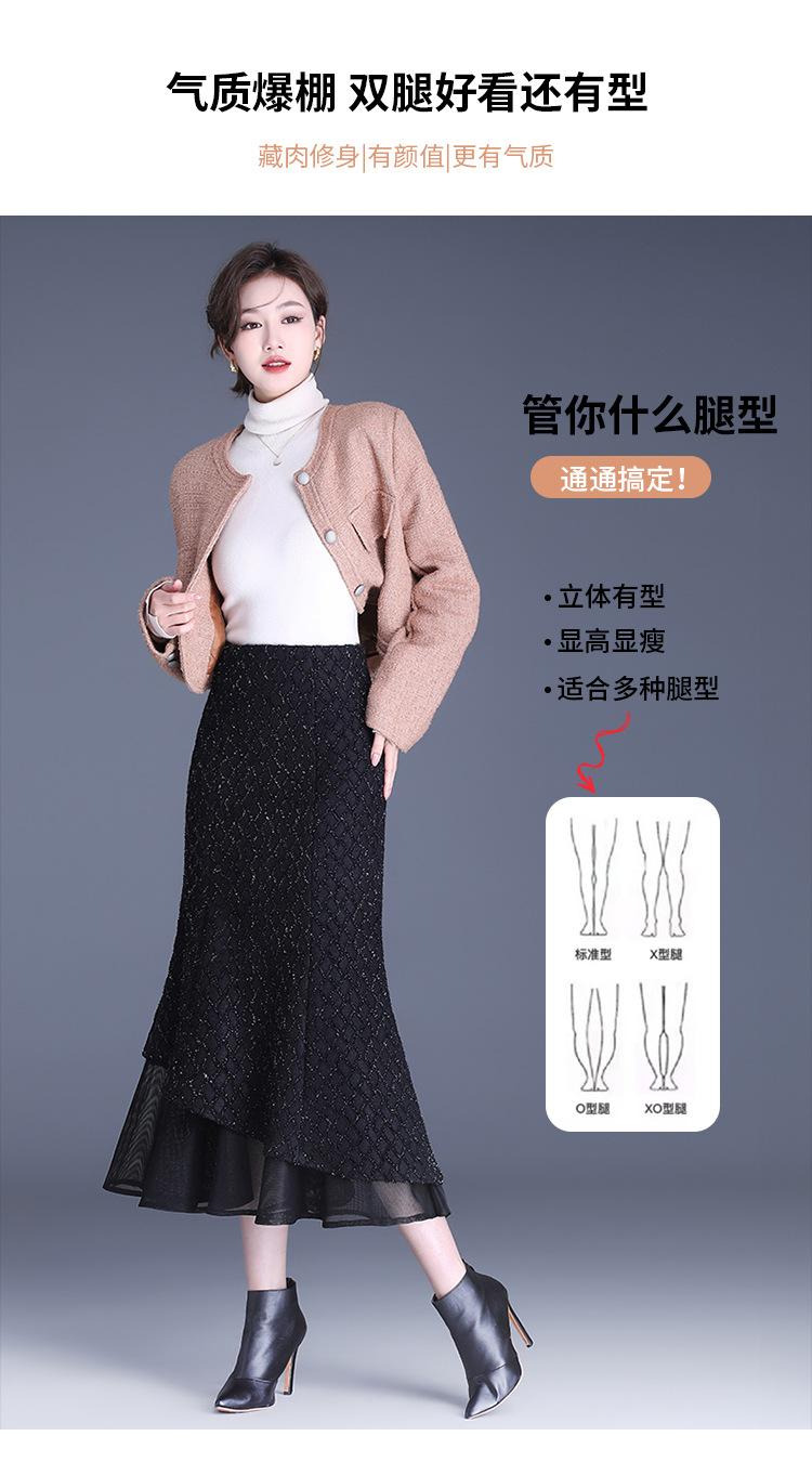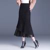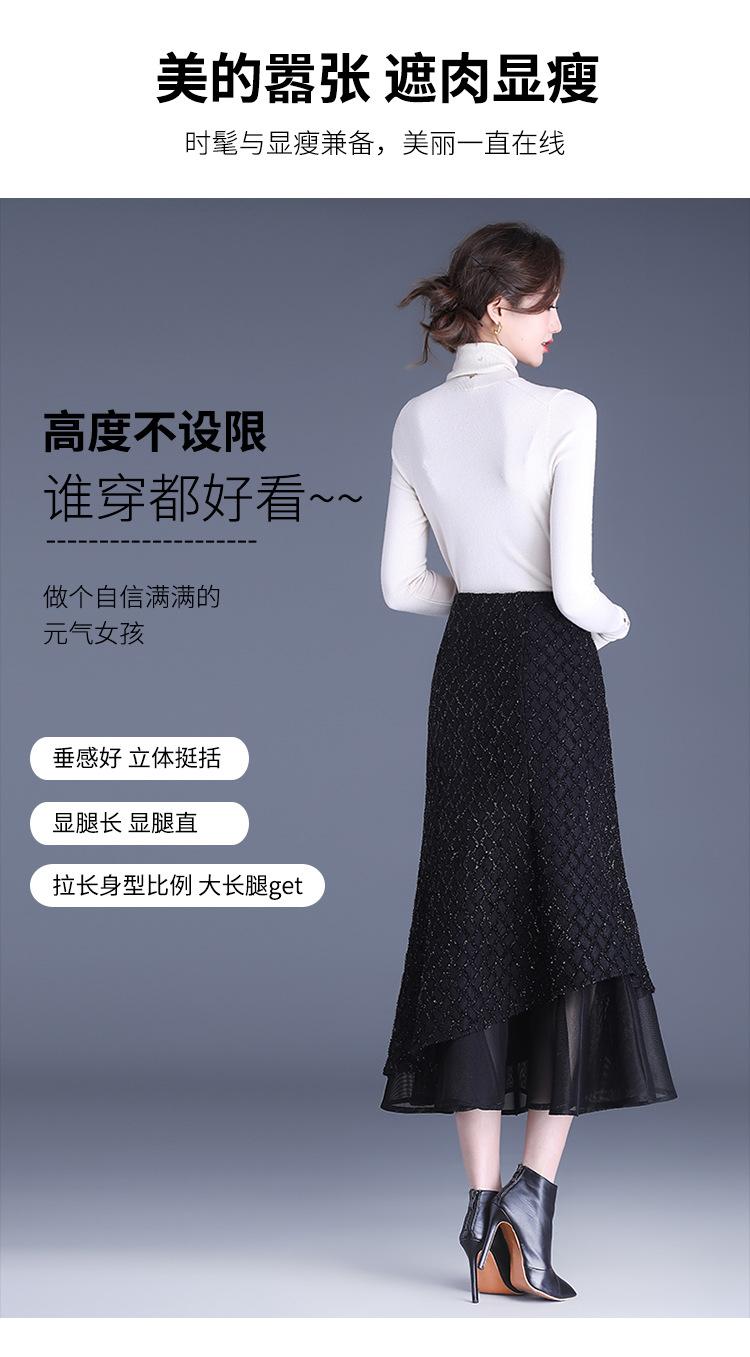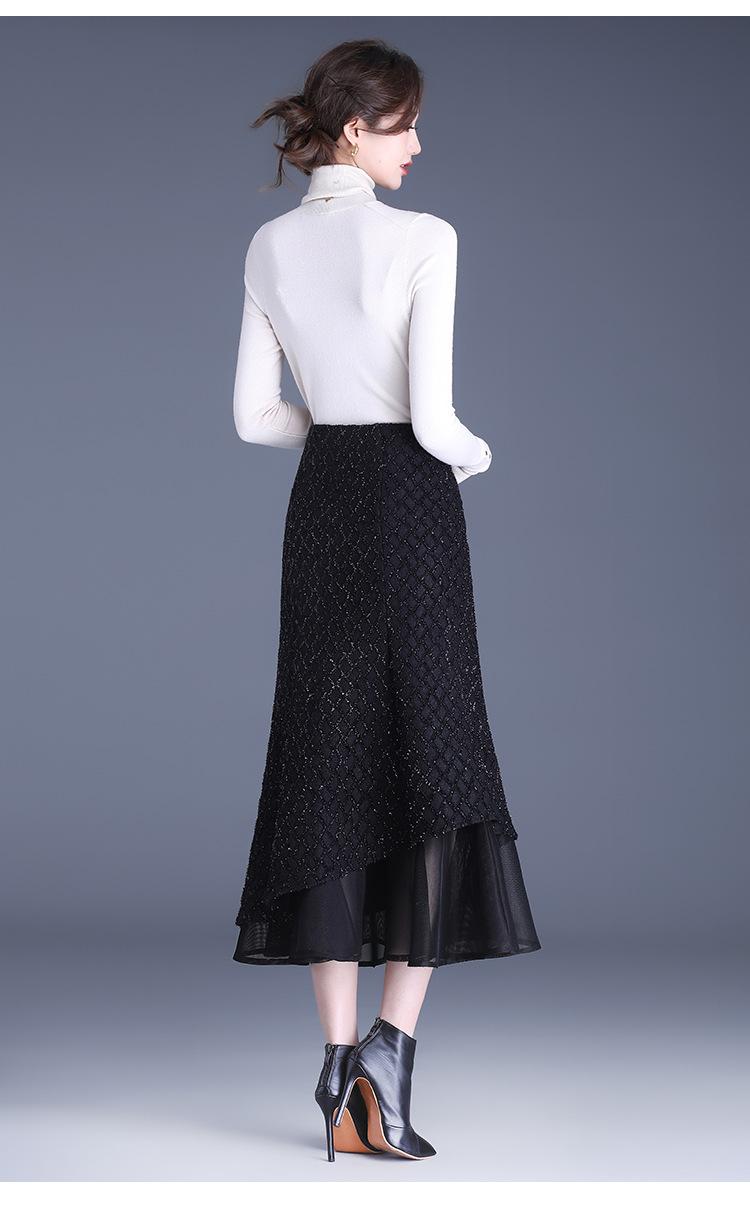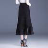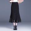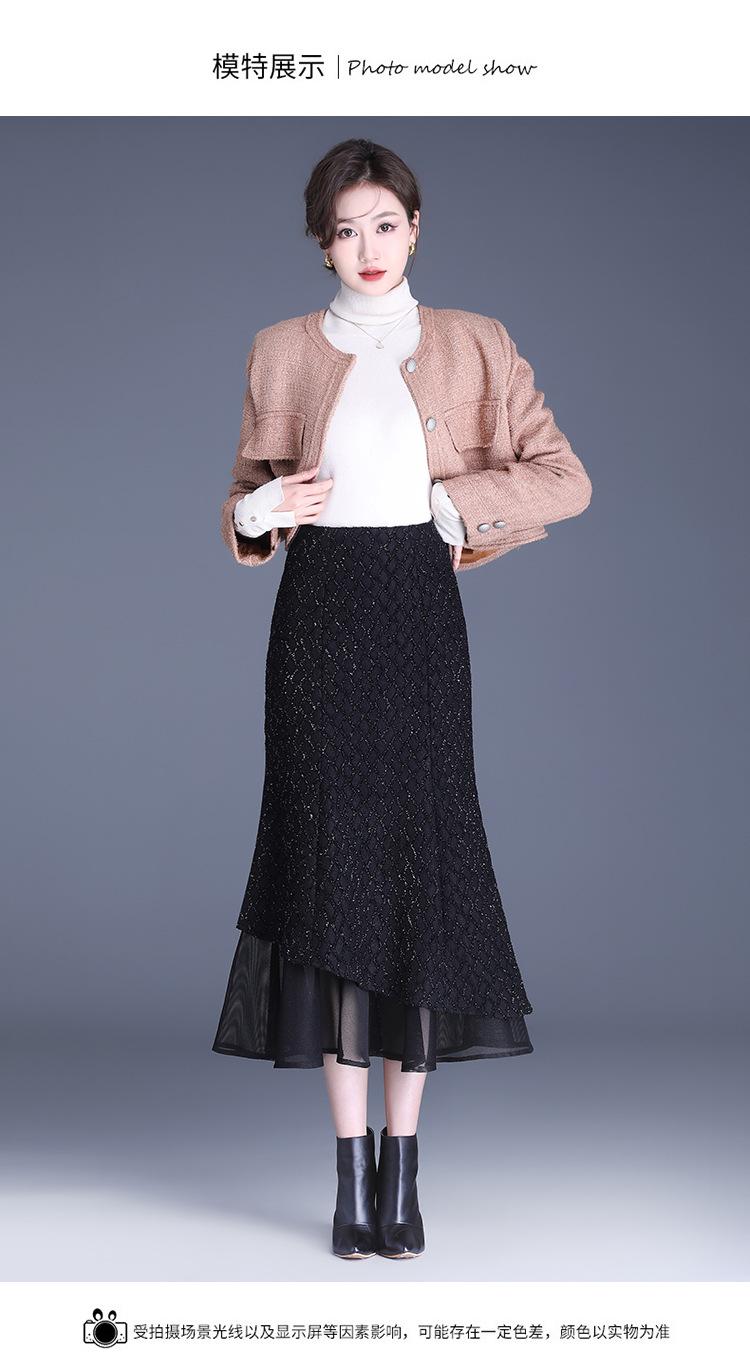 Falda de cola de pez estilo Chanel para mujer, primavera y otoño 2024, cintura alta, adelgazante, de seda plateada, longitud media, con costuras de malla