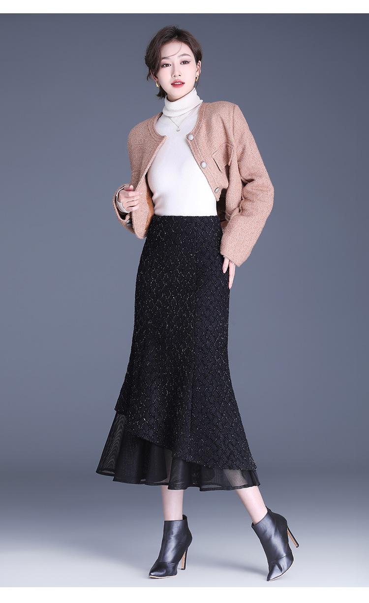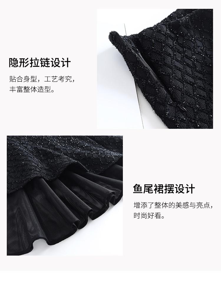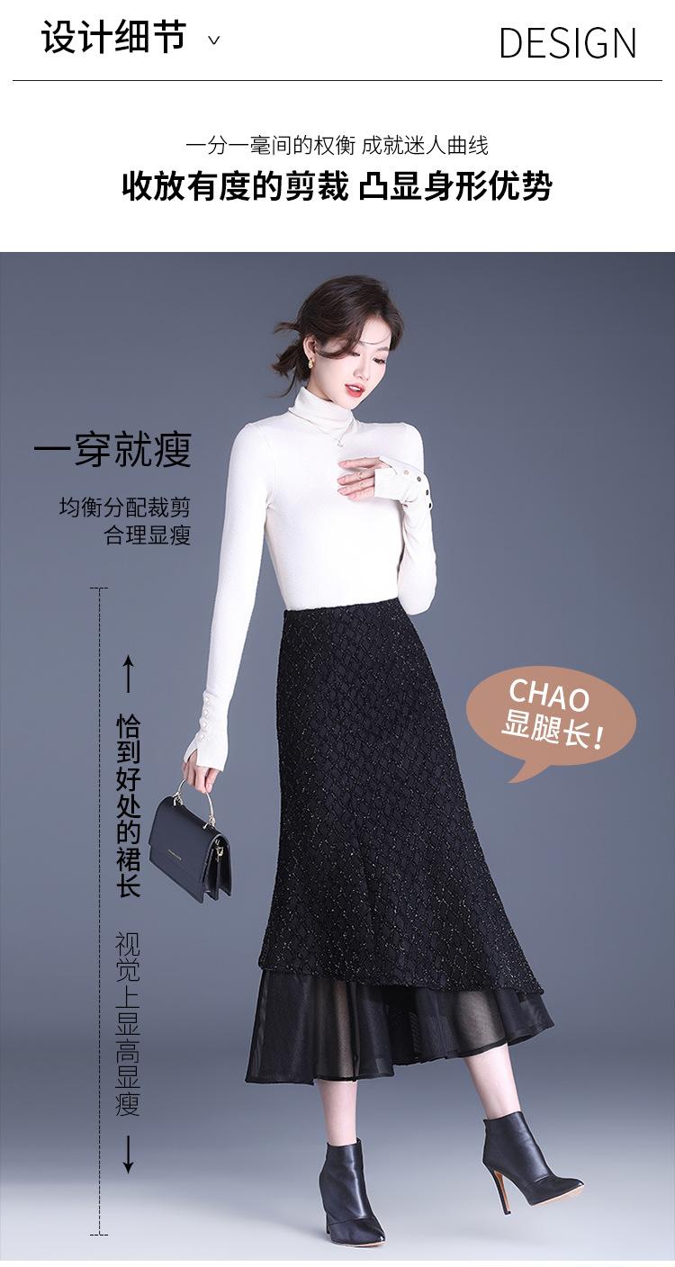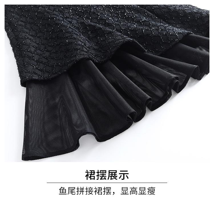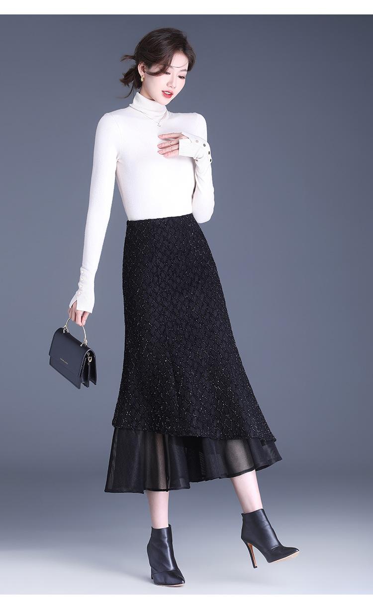 Falda de cola de pez estilo Chanel para mujer, primavera y otoño 2024, cintura alta, adelgazante, de seda plateada, longitud media, con costuras de malla