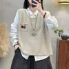 Chaleco de Punto sin Mangas con Cuello en V para Mujer Primavera y Otoño Ropa Exterior Suelta Elegante Chaleco de Cachemira
