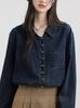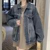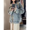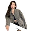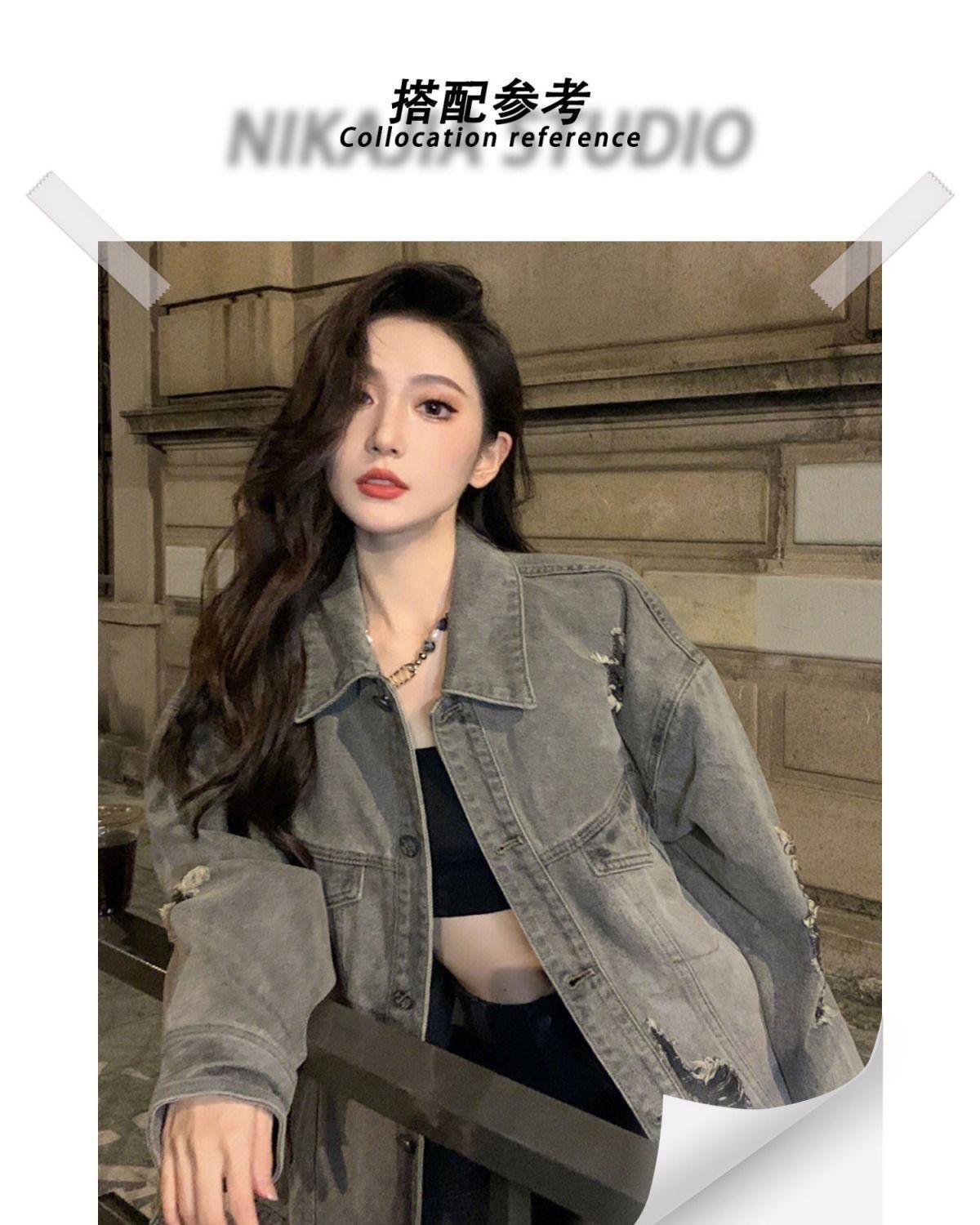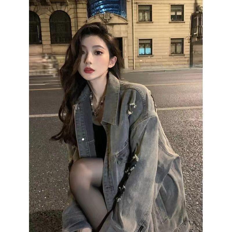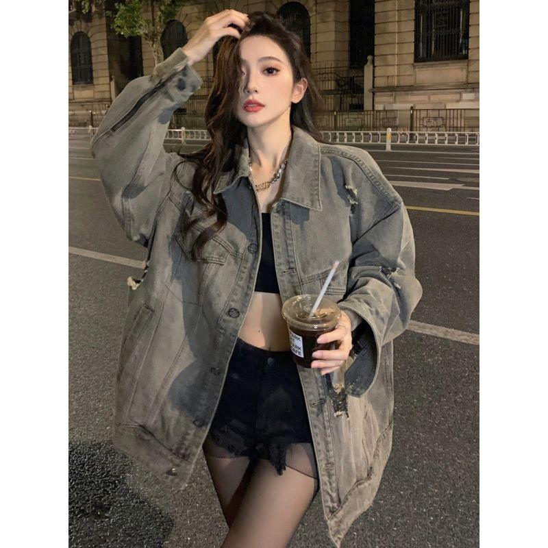 Chamarra de mezclilla de manga larga lavada y rasgada con diseño estilo Hong Kong 2025 Otoño Nuevo Chaqueta con solapa estilo coreano Top