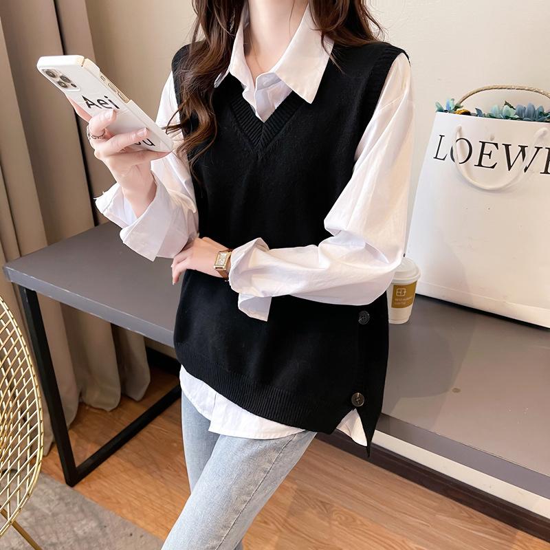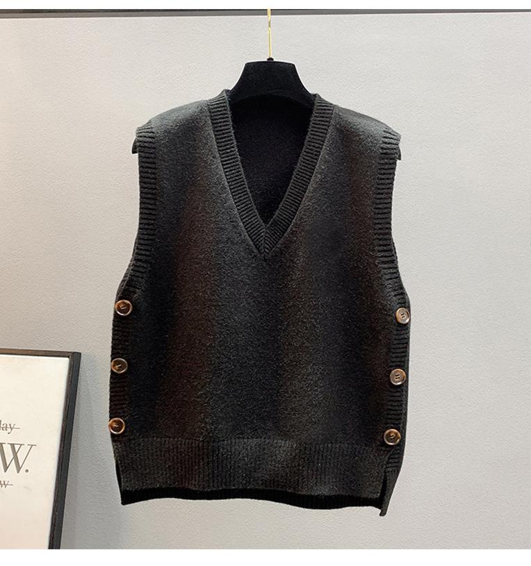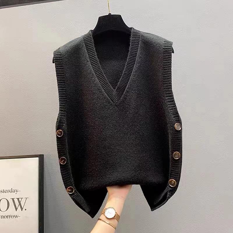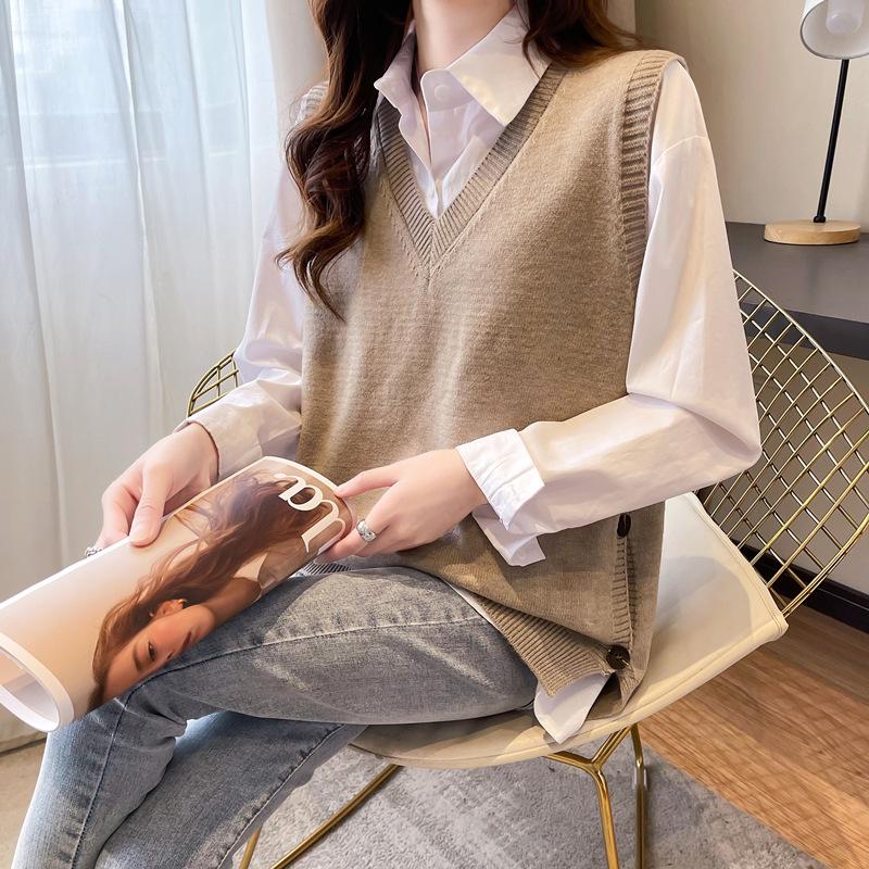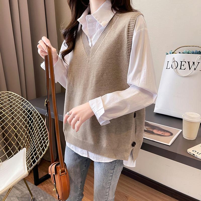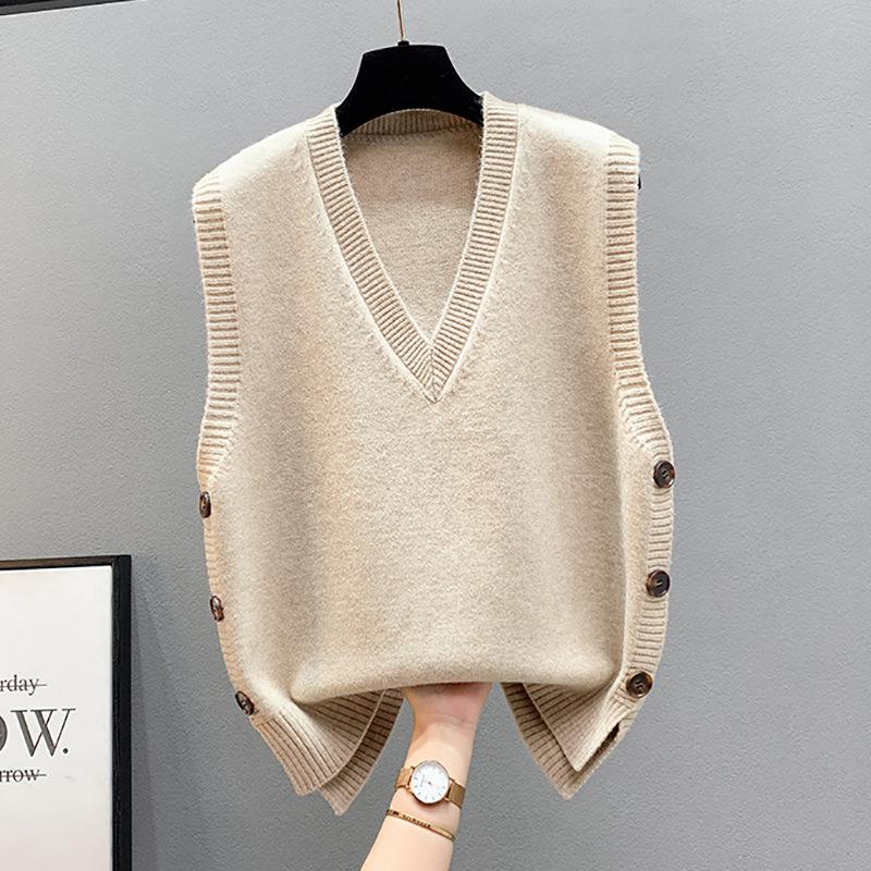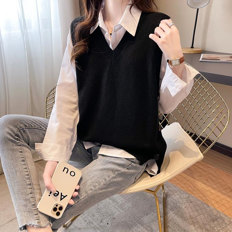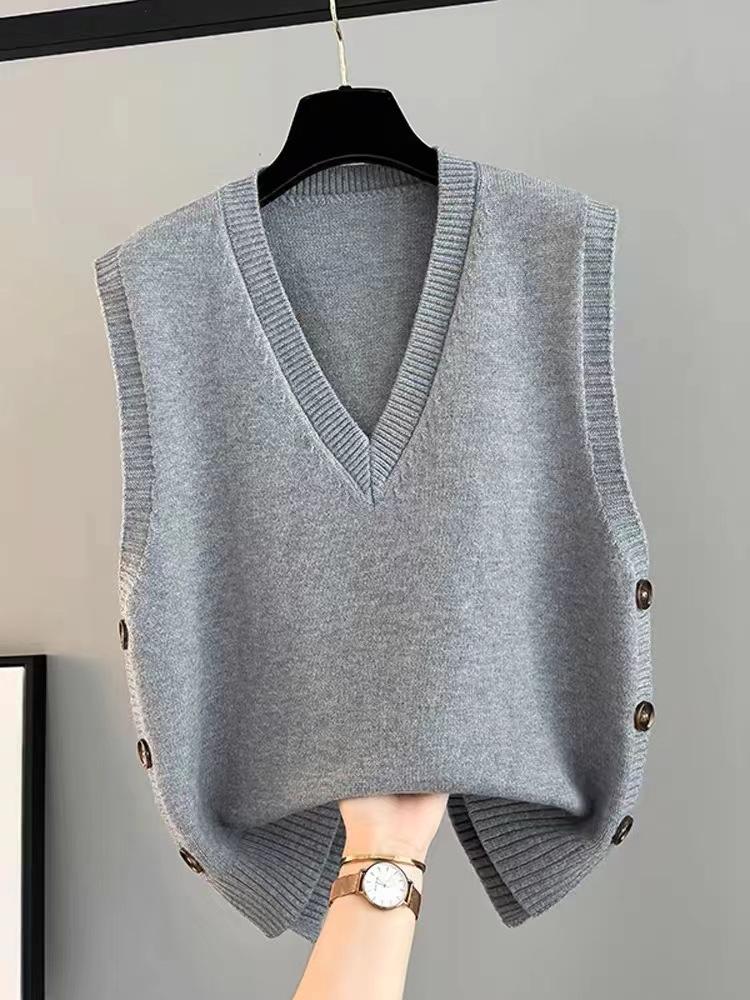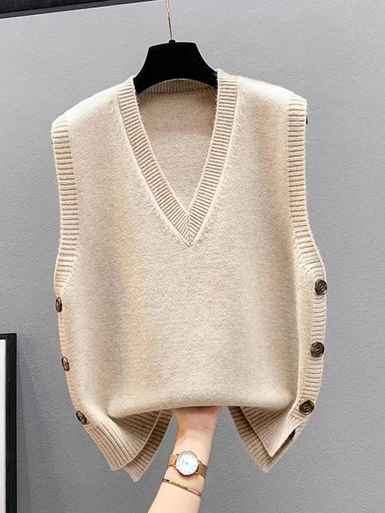 Chaleco apilado, chaleco de punto, suéter para mujer, primavera y otoño 2024, nuevo chaleco holgado con cuello en V para otoño e invierno.