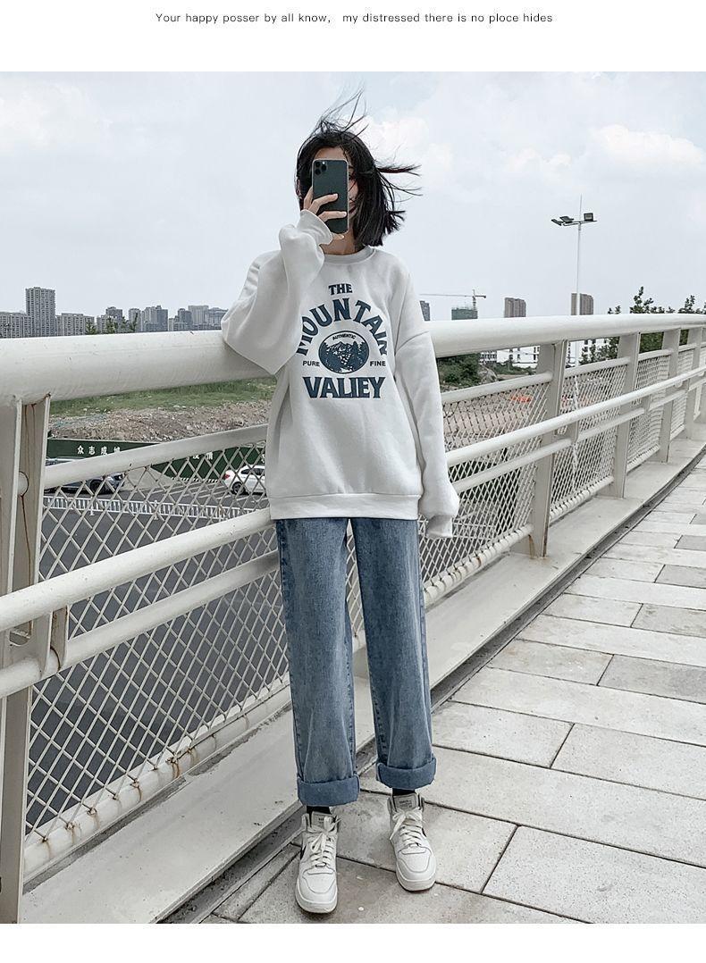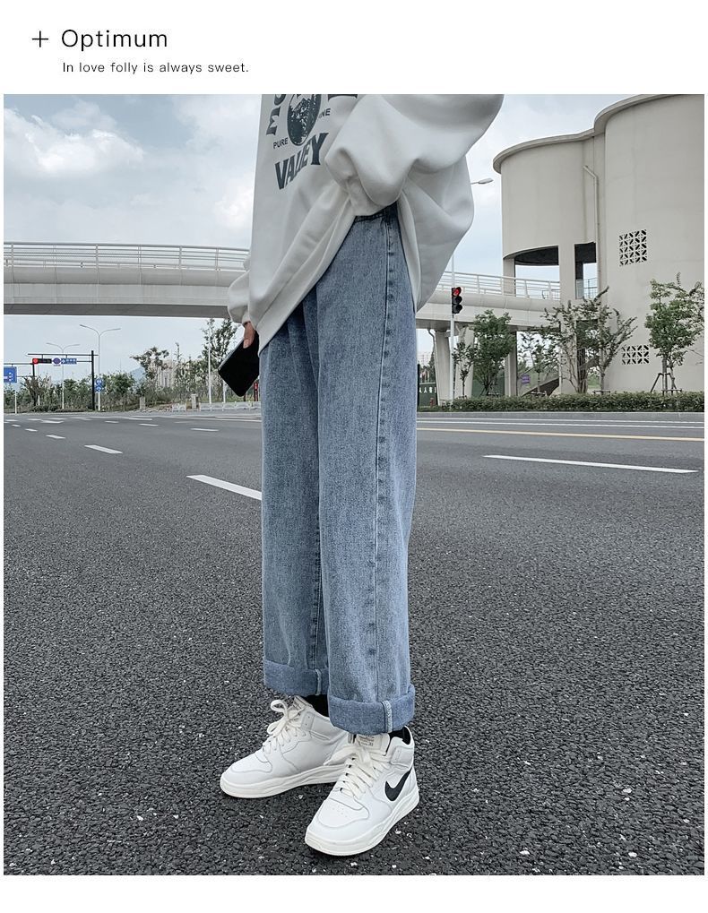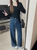 Pantalones vaqueros de cintura alta y pierna ancha para mujer, de aspecto ajustado, de primavera y otoño, nuevos, fáciles de combinar, rectos, sueltos, con cola de moda.