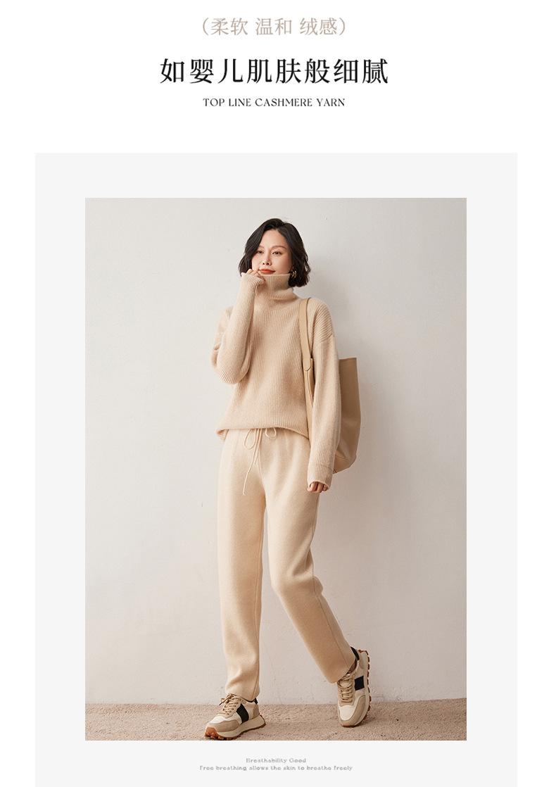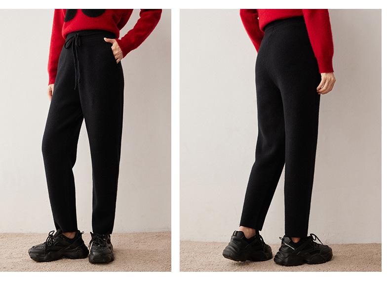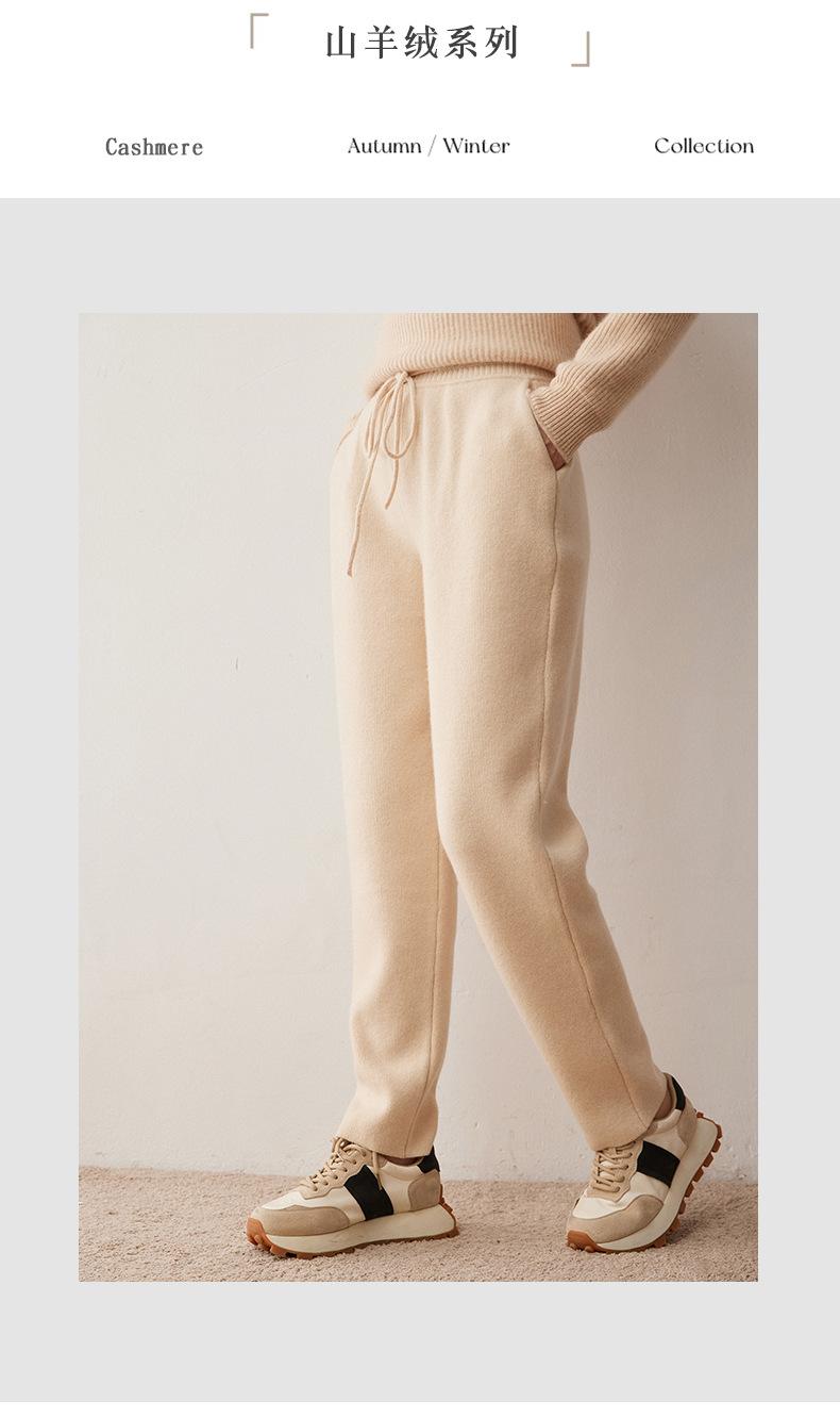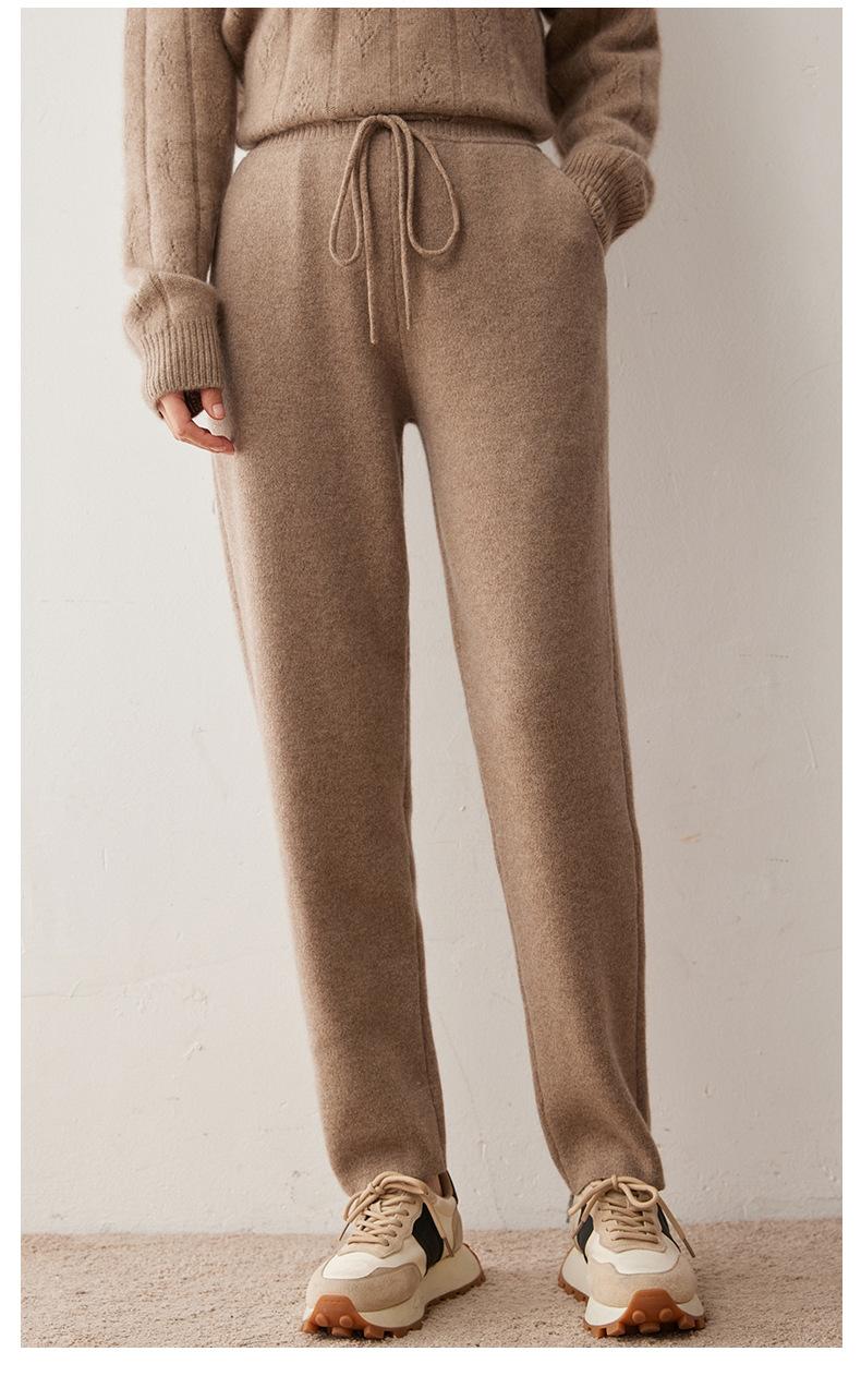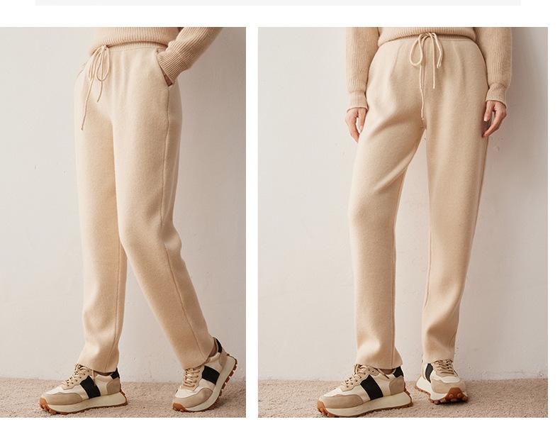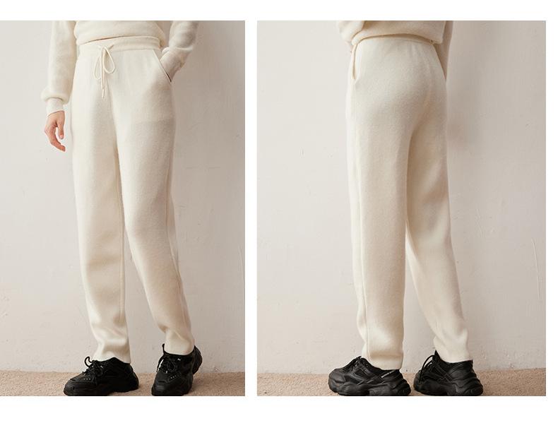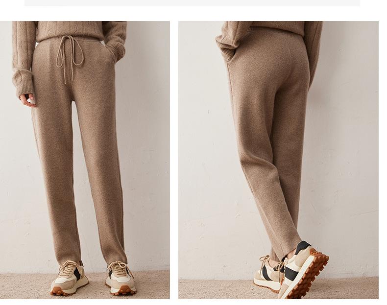 Pantalones ajustados de punto de lana de cachemira para mujer, otoño e invierno 2024, cintura alta, pierna ancha, informales, ajustados, para mujer