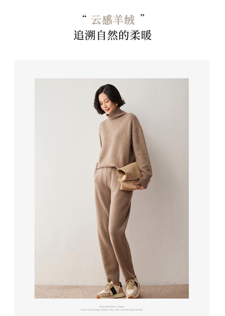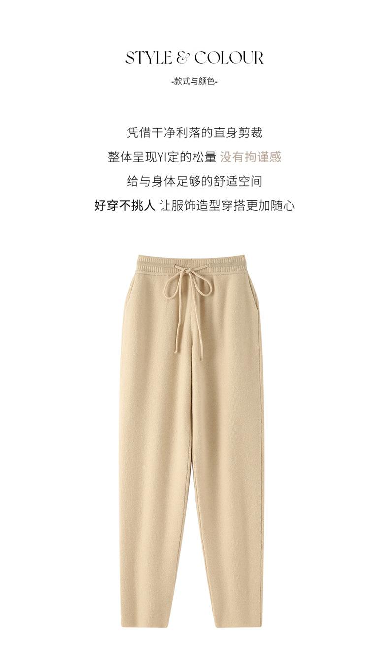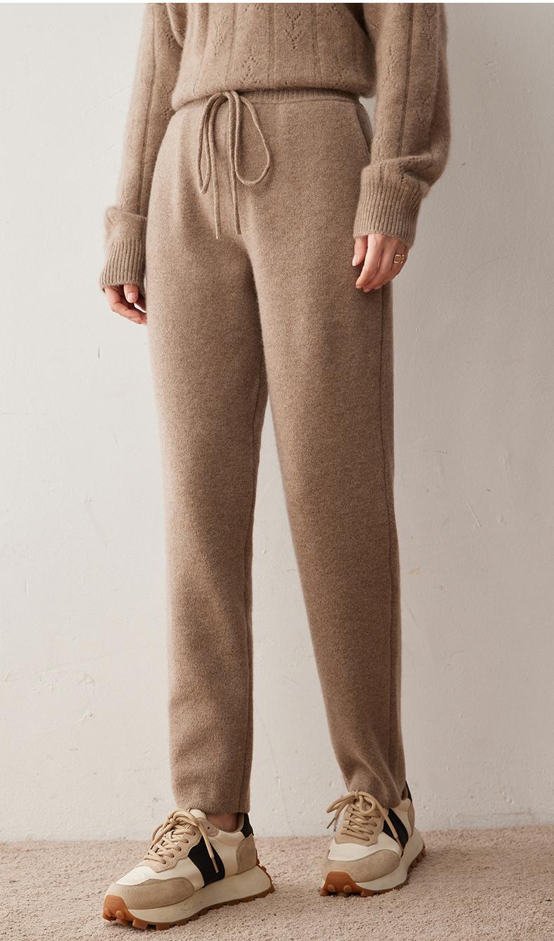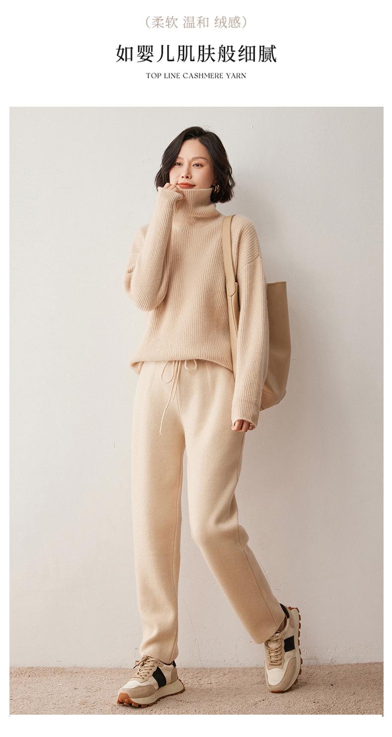 Pantalones ajustados de punto de lana de cachemira para mujer, otoño e invierno 2024, cintura alta, pierna ancha, informales, ajustados, para mujer