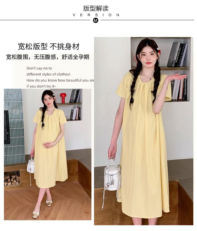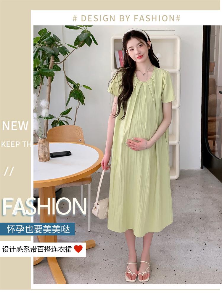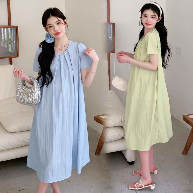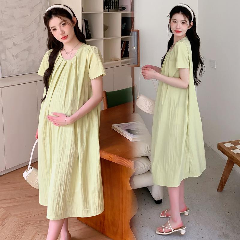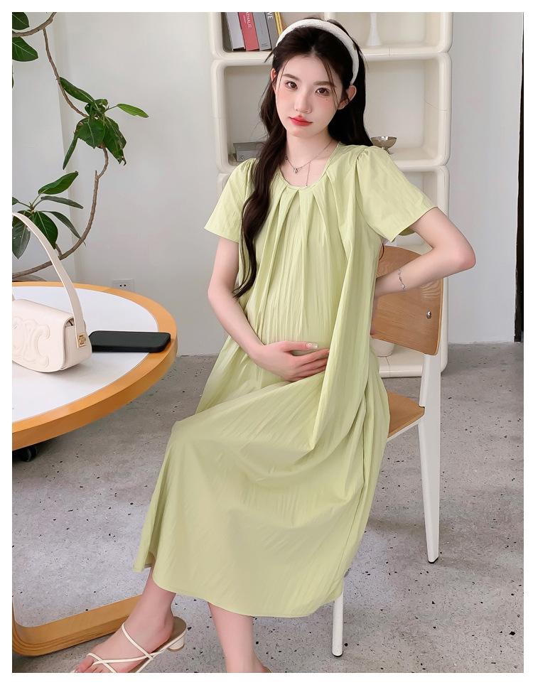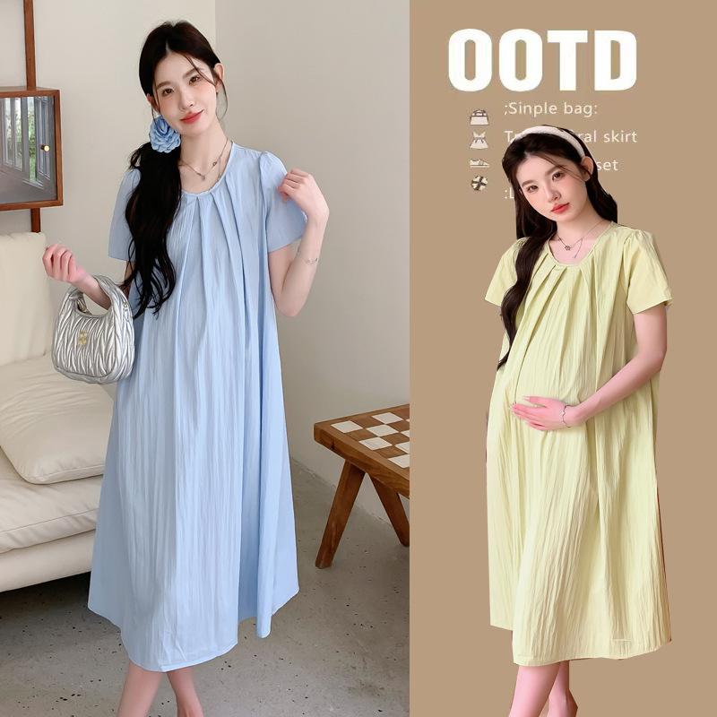 Vestido de maternidad Verano 2024 Nuevo Vestido de Gasa Largo Medio Suelto Adelgazante Tallas Grandes Vestido de Maternidad de Moda
