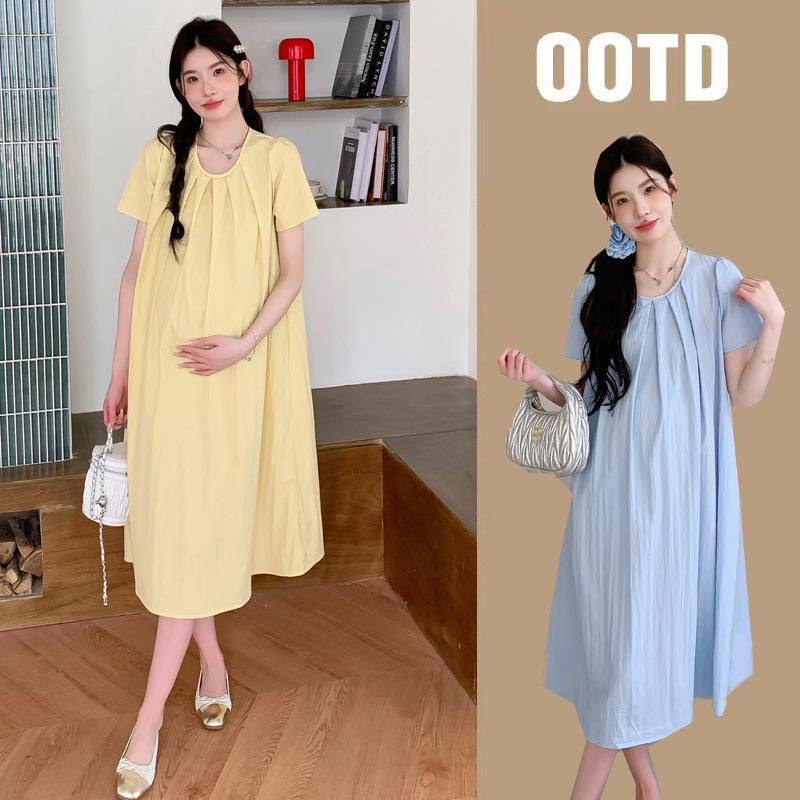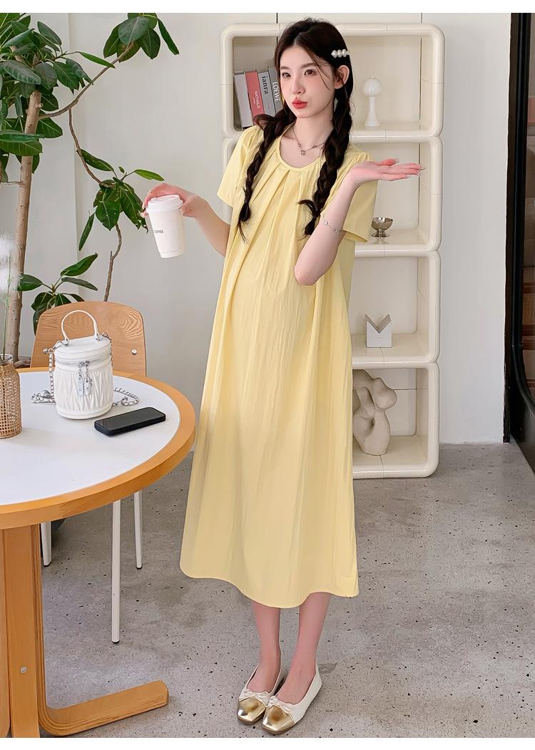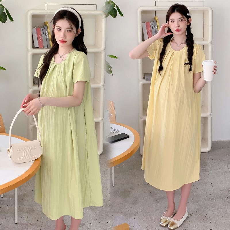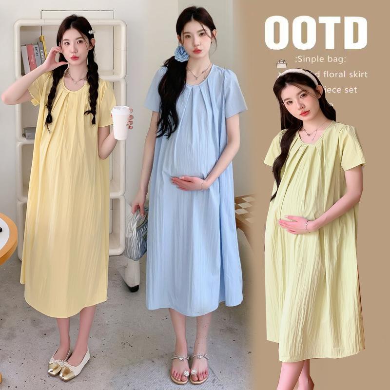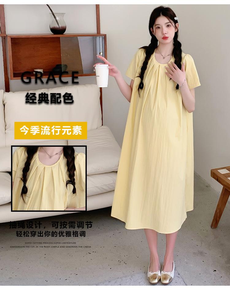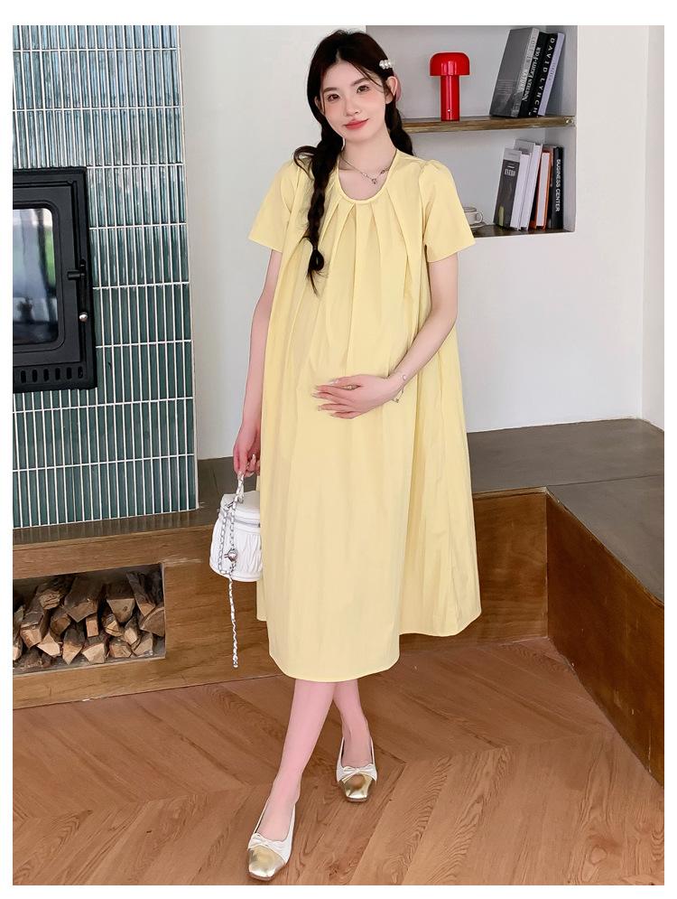 Vestido de maternidad Verano 2024 Nuevo Vestido de Gasa Largo Medio Suelto Adelgazante Tallas Grandes Vestido de Maternidad de Moda