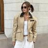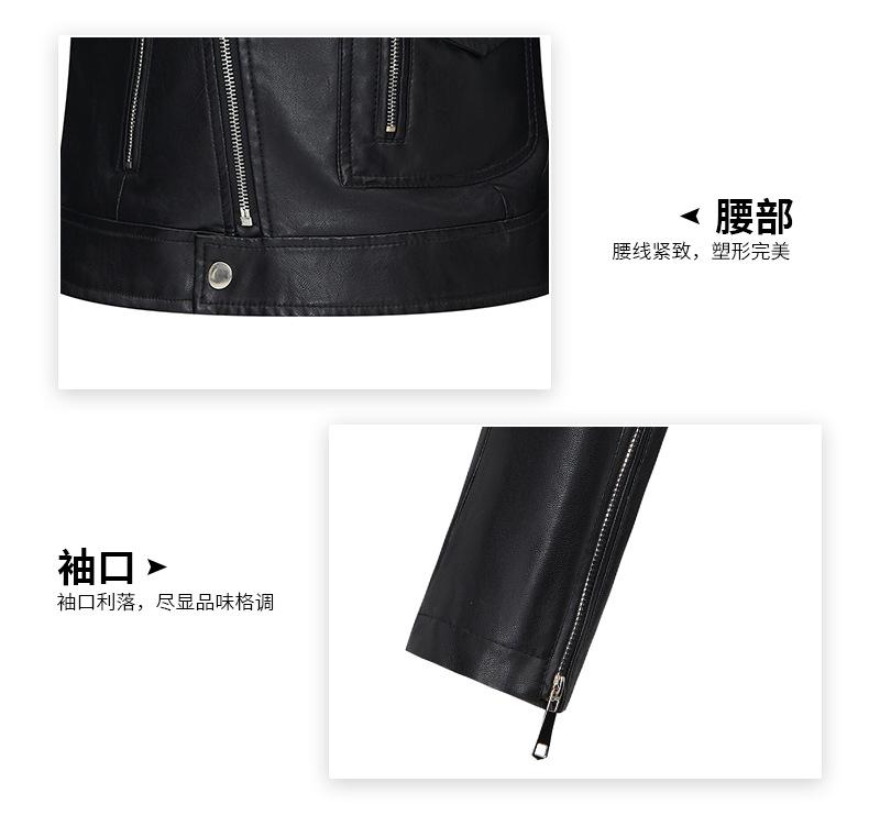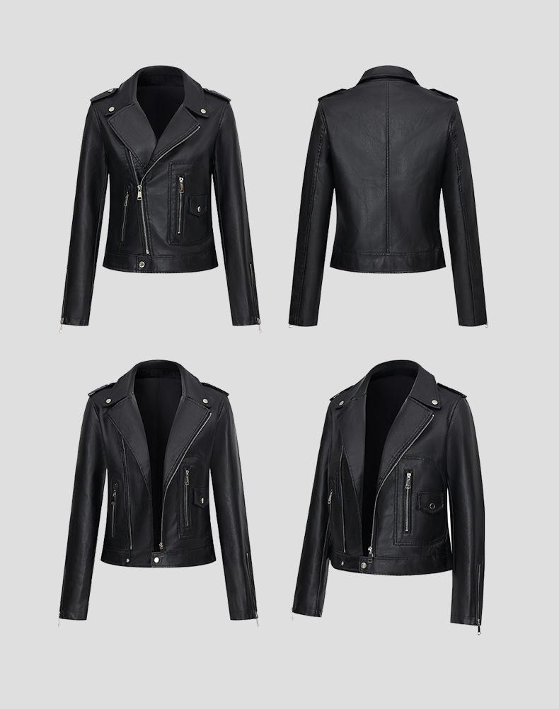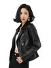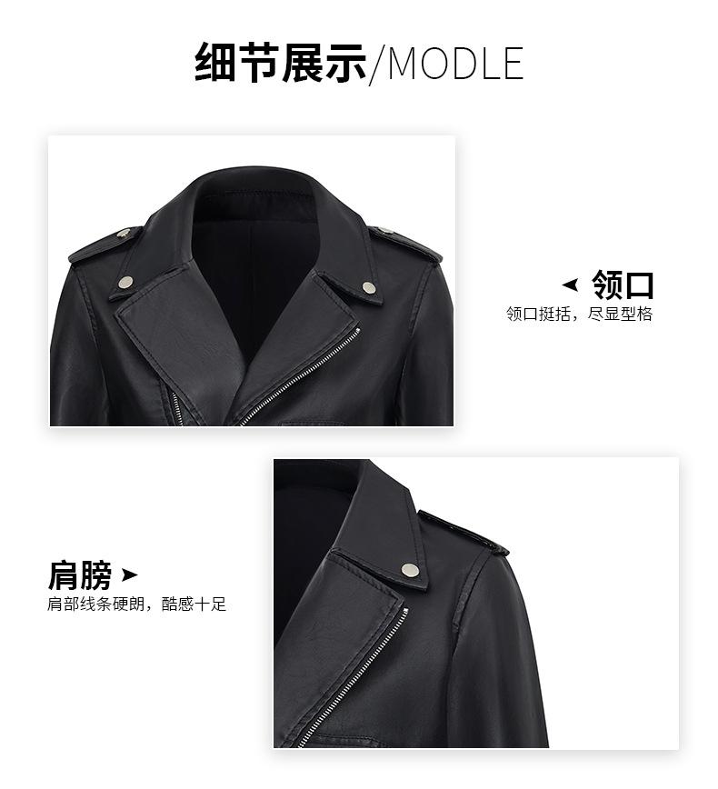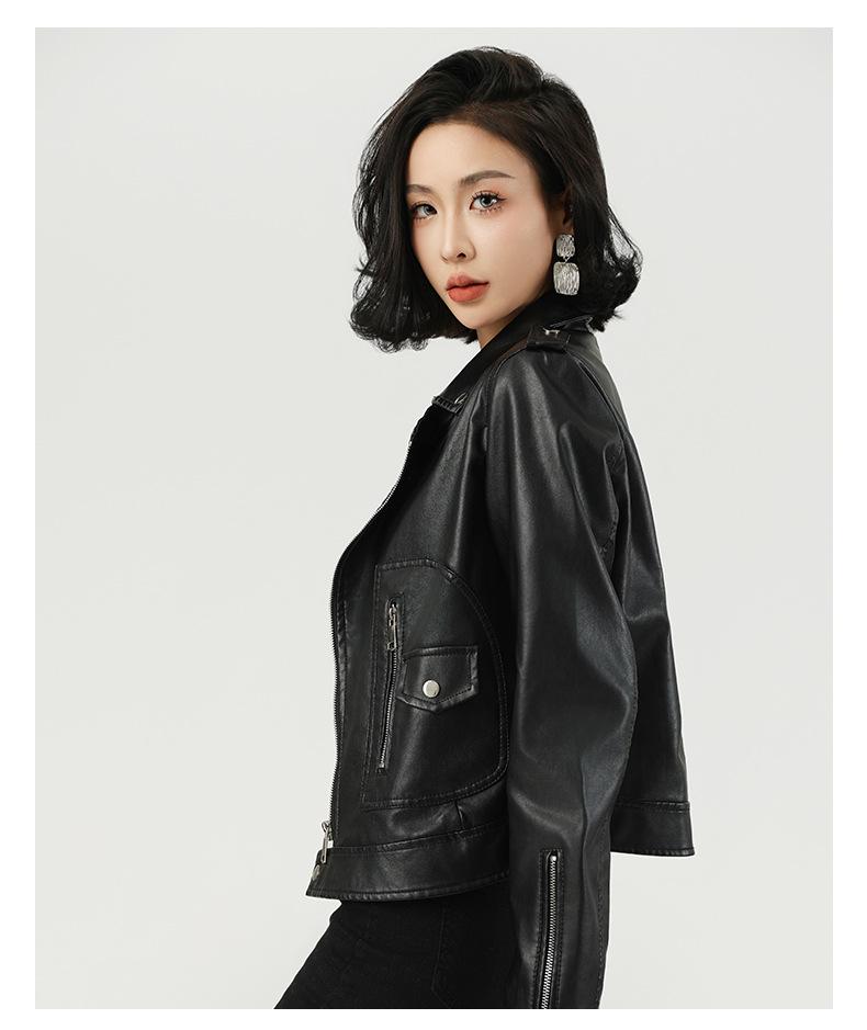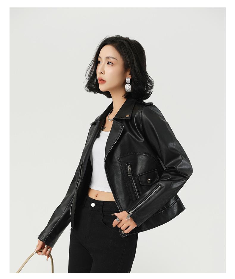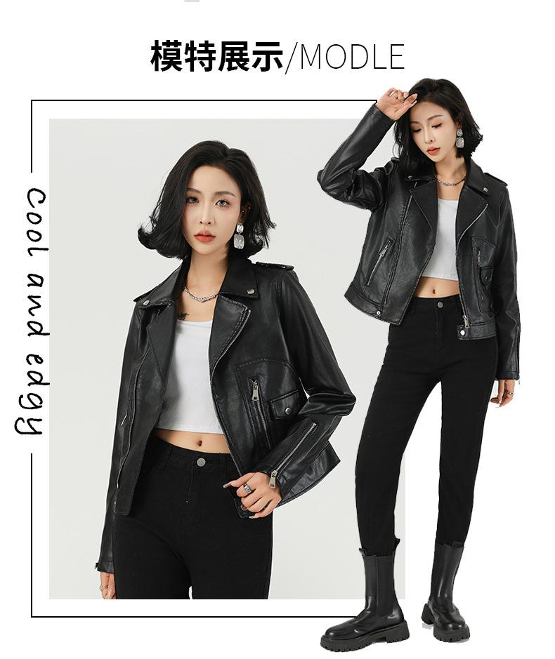 Chaqueta de Cuero Transfronteriza para Mujer Primavera Nueva Corta de Motocicleta Cuero PU Solapa Chaqueta Slim Chaqueta de Cuero Confección de Patrones Personalizados