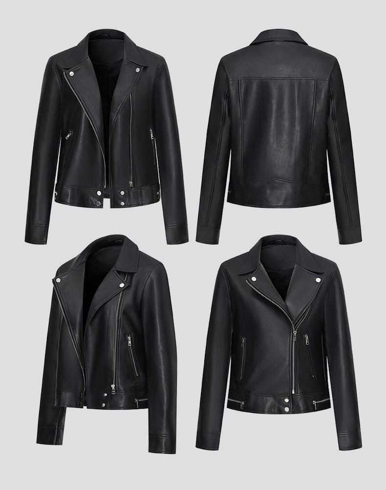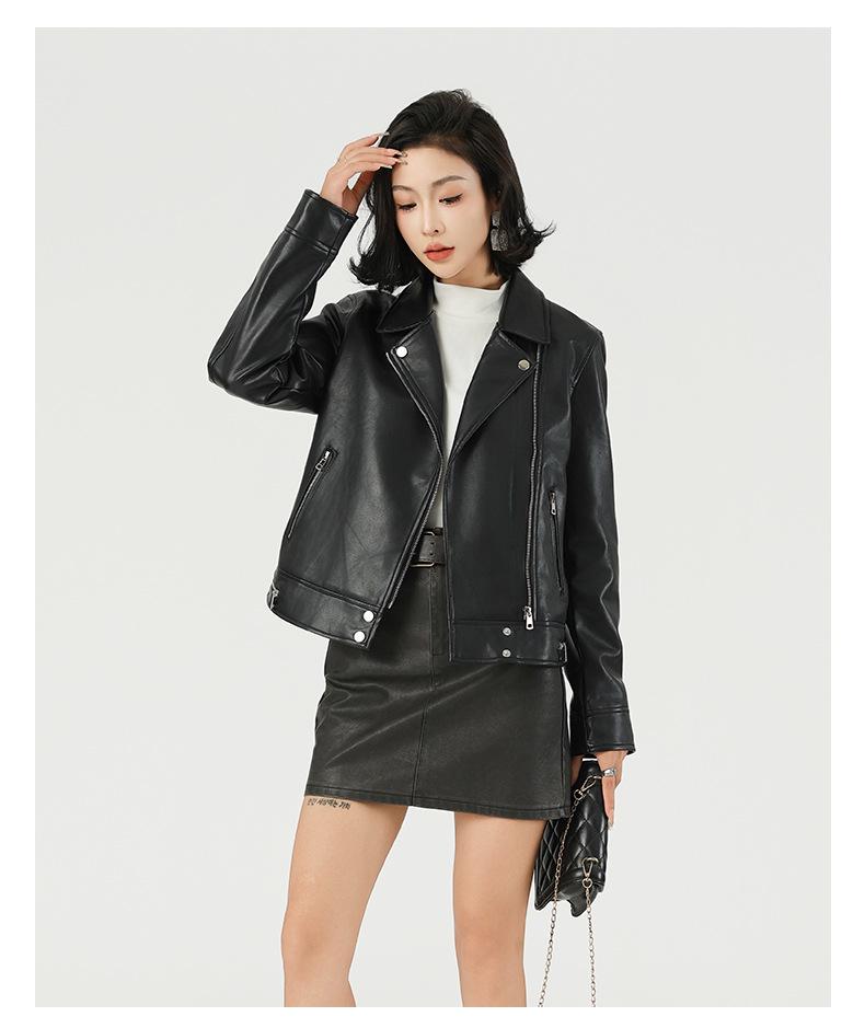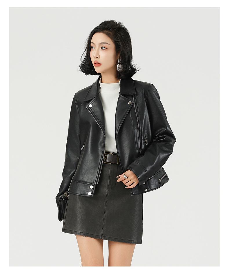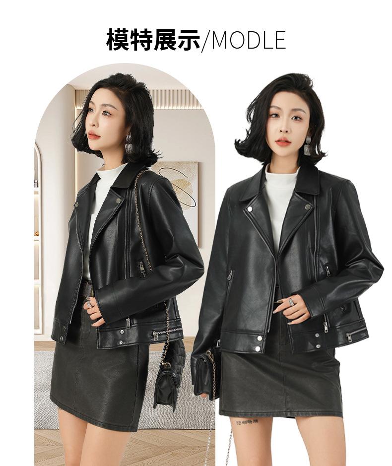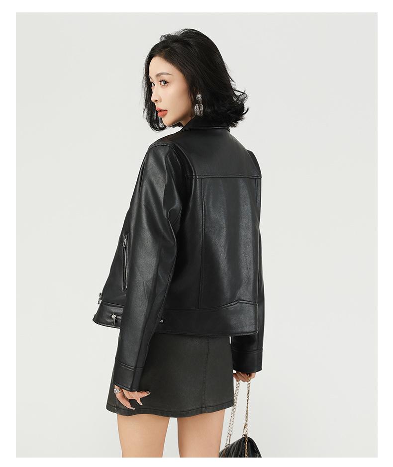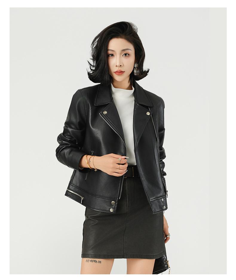 Otoño 2024 Nueva Chaqueta de Cuero para Mujer Chaqueta Corta con Cuello de Traje Chaqueta de Cuero Chaqueta de Motociclista Chaqueta de Cuero Personalizada Lista para Enviar Transfronteriza