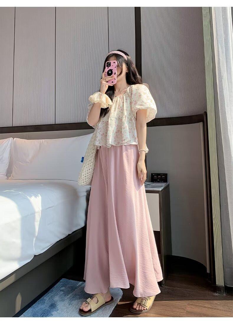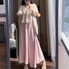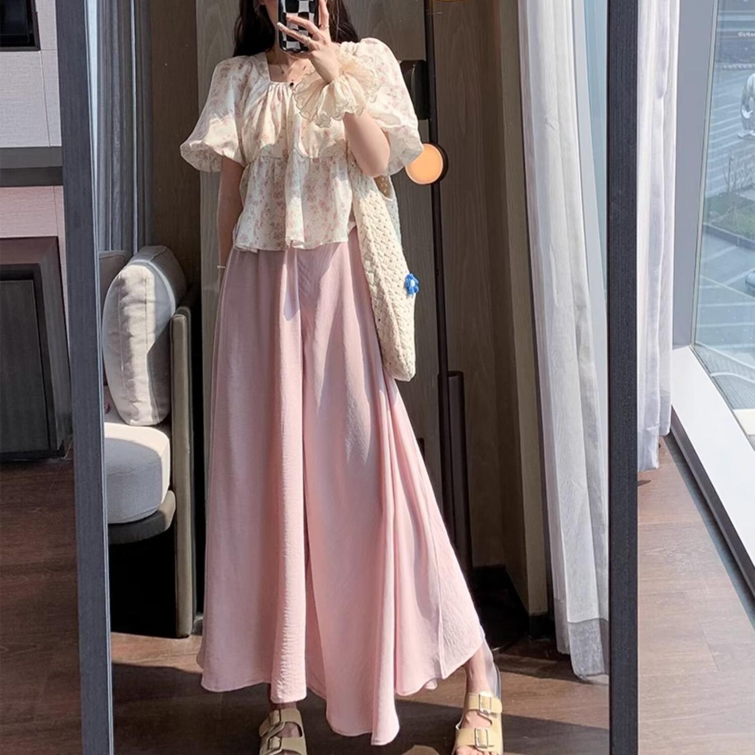 Falda albaricoque para mujer verano delgada 2024 nueva cintura alta simulada pequeña casual pierna ancha moderna pantalones de mujer