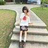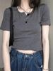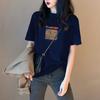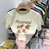 Camiseta de manga corta con hombros descubiertos y rayas de contraste de color para mujer, nueva camiseta de verano 2024 con diseño de letras sueltas y estampado de manga corta