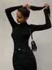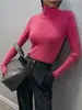 Suéter de Punto de Cuello Alto Medio, Nuevo Estilo Europeo y Americano para Otoño e Invierno, Elegante Color Sólido Ajustado Cálido Capa Interior Top de Manga Larga