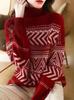 Suéter de cuello alto medio de manga larga para otoño e invierno, jersey retro holgado de jacquard para mujer, camisa de punto interior de color sólido