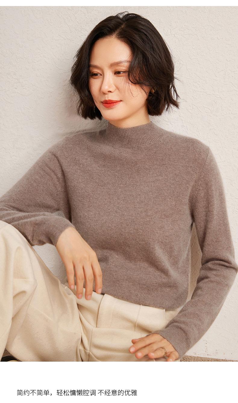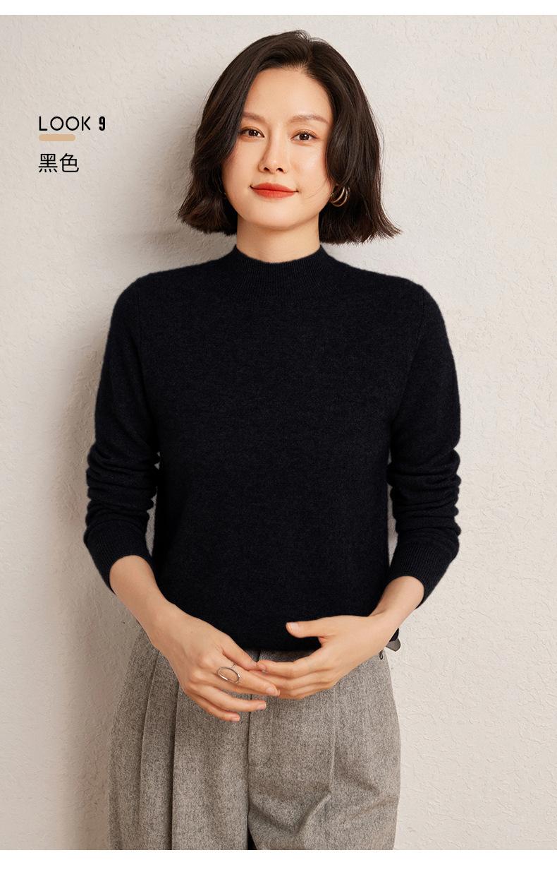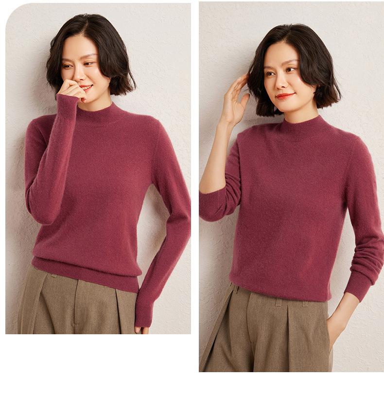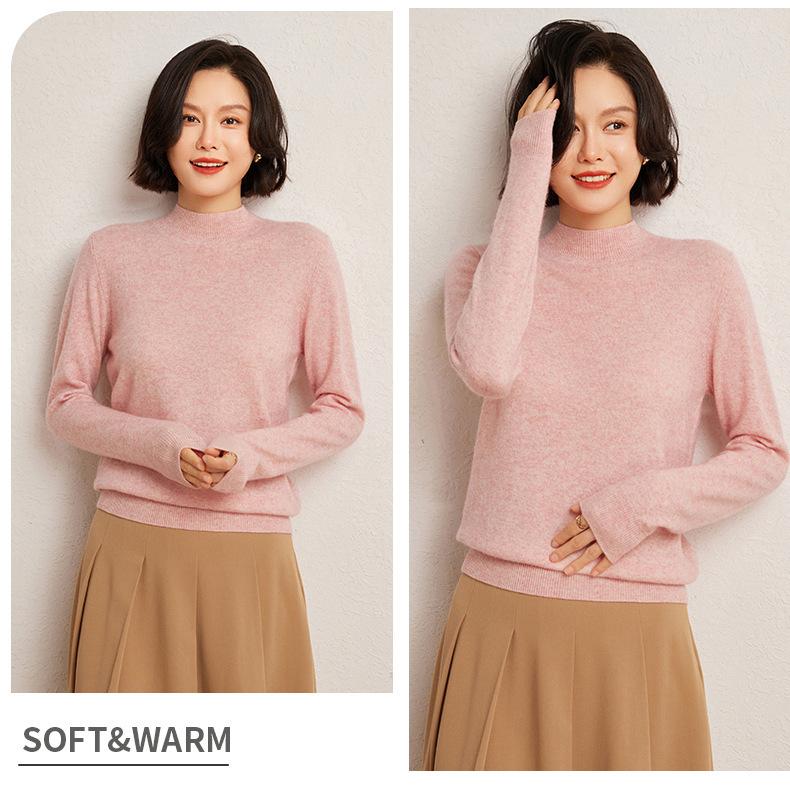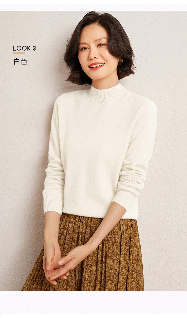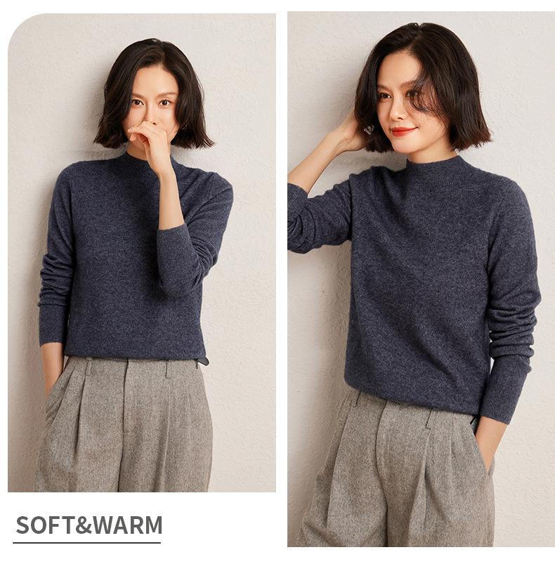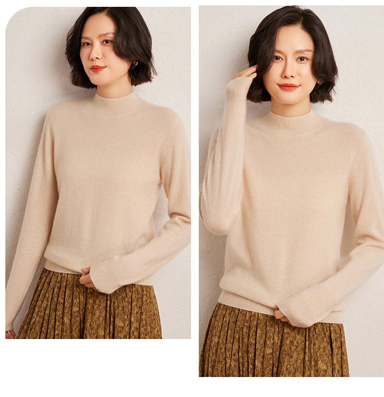 Suéter de cachemira de cuello medio alto para mujer de otoño e invierno, color sólido liso, tipo jersey, corte ajustado y adelgazante, capa base de punto con temperamento para llevar debajo