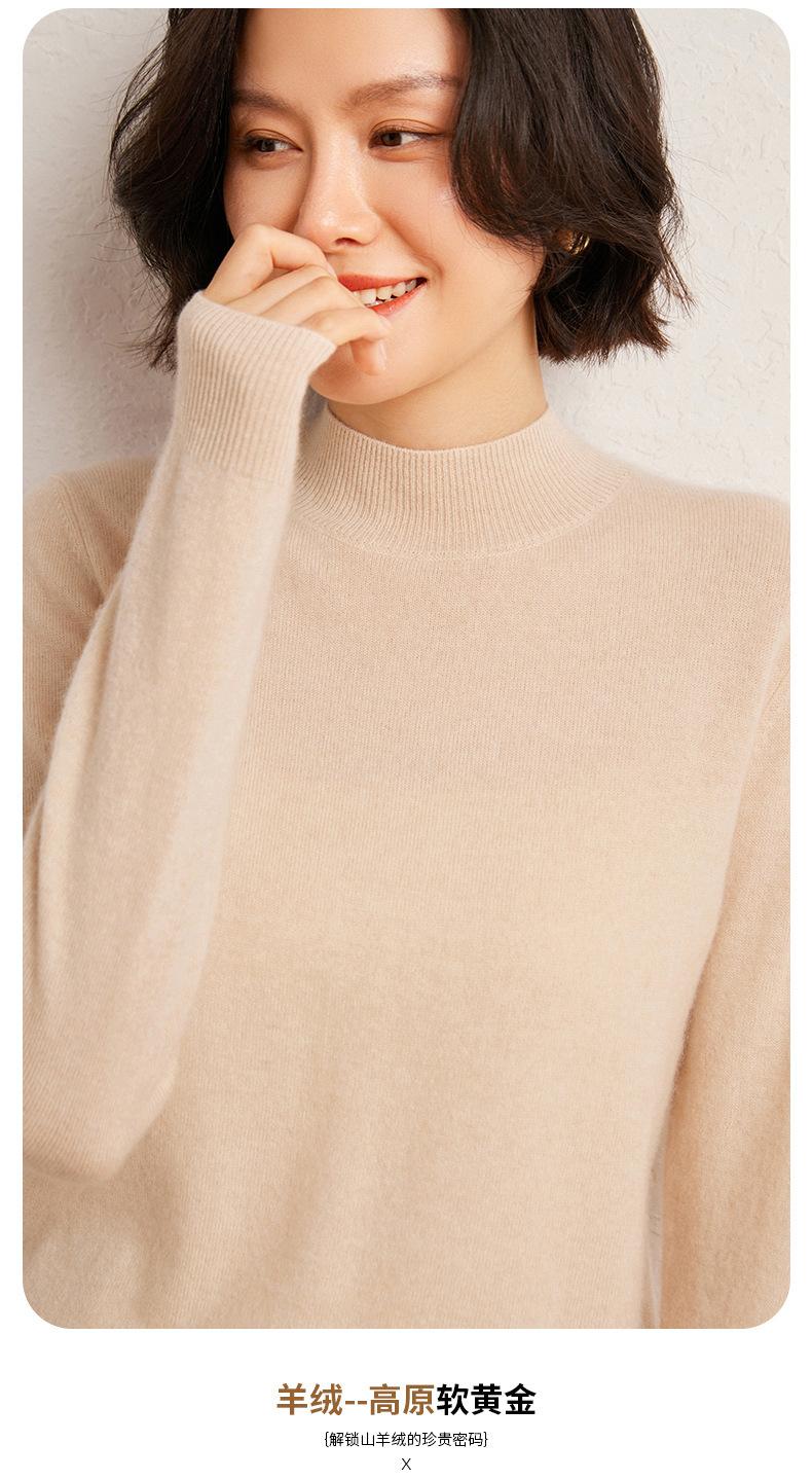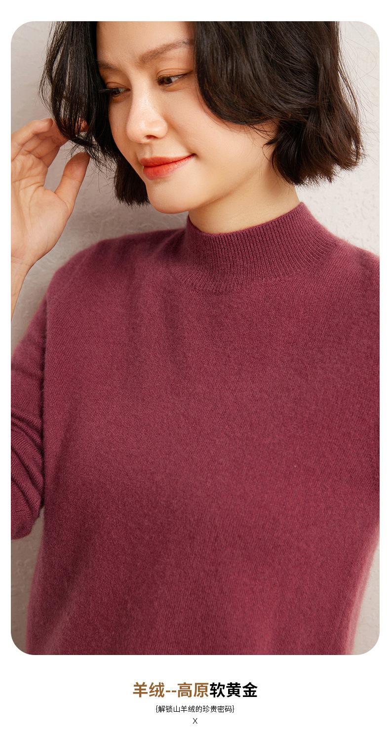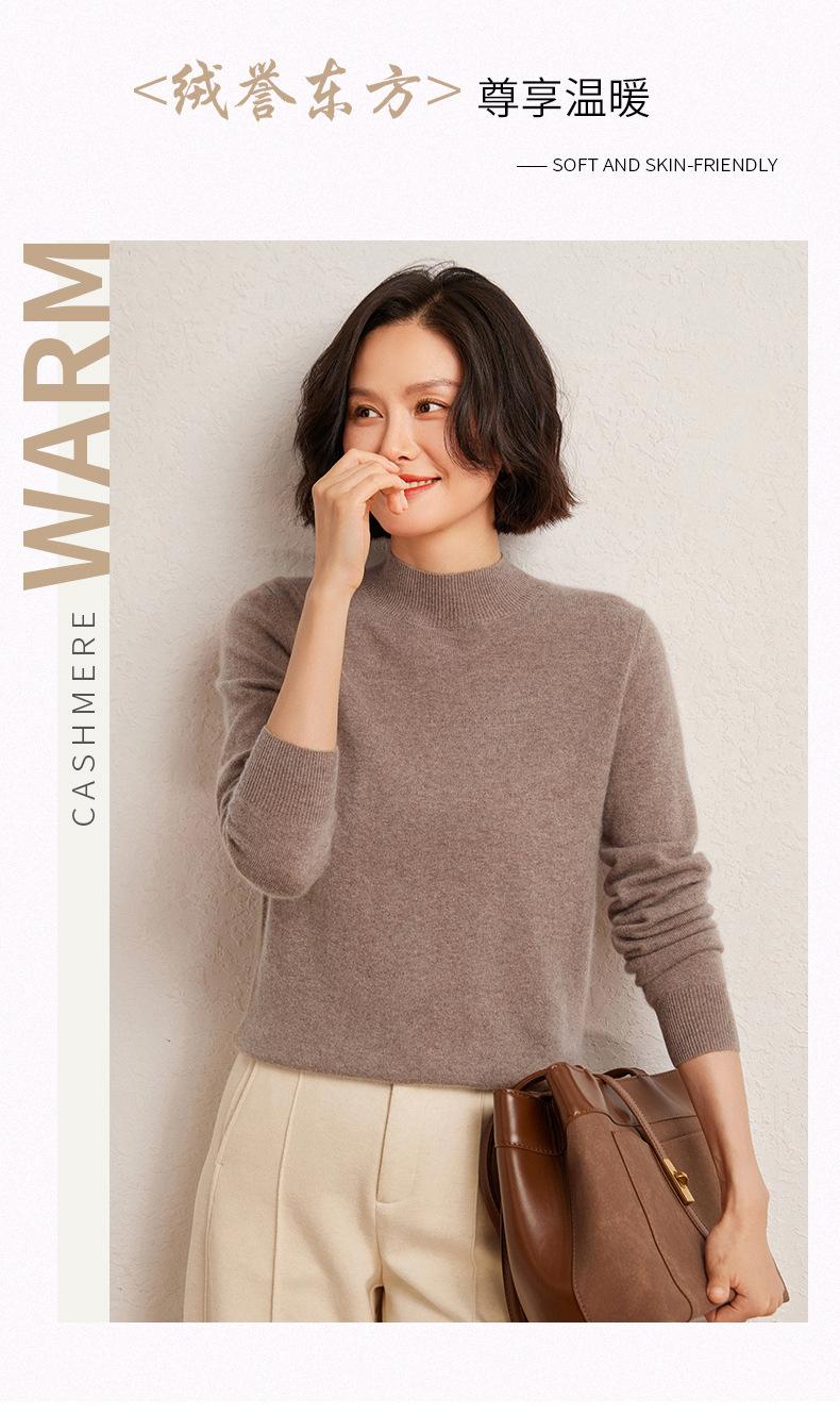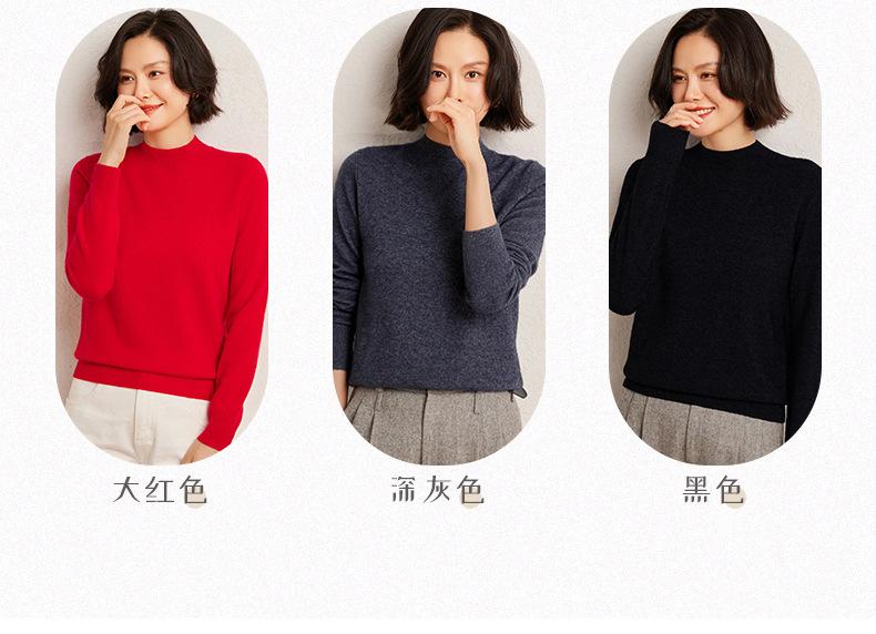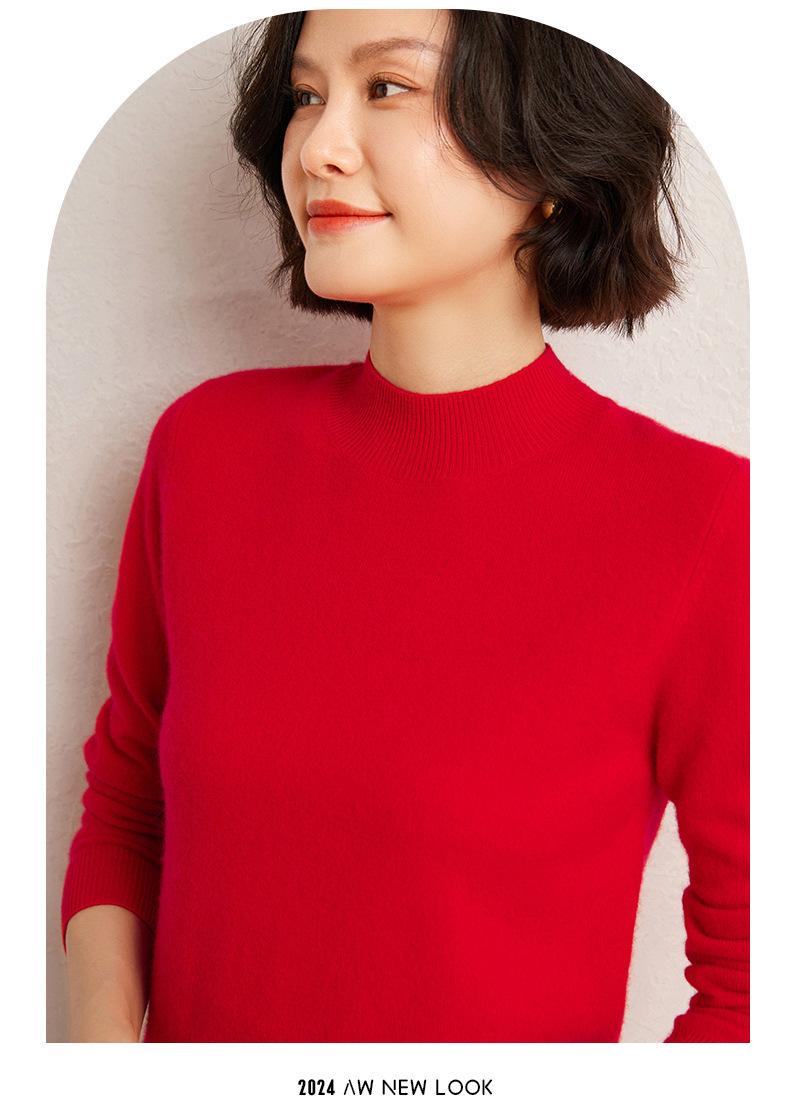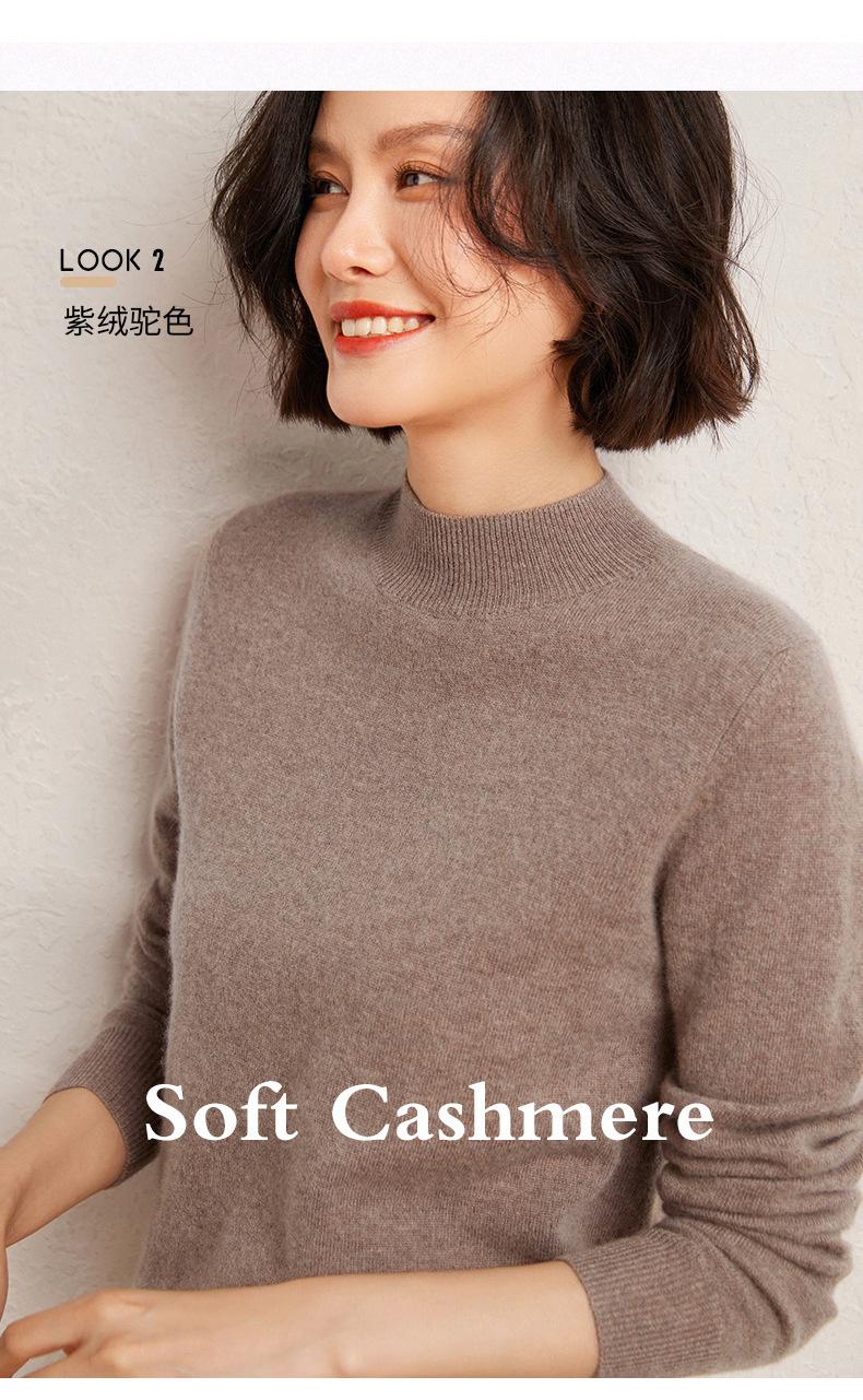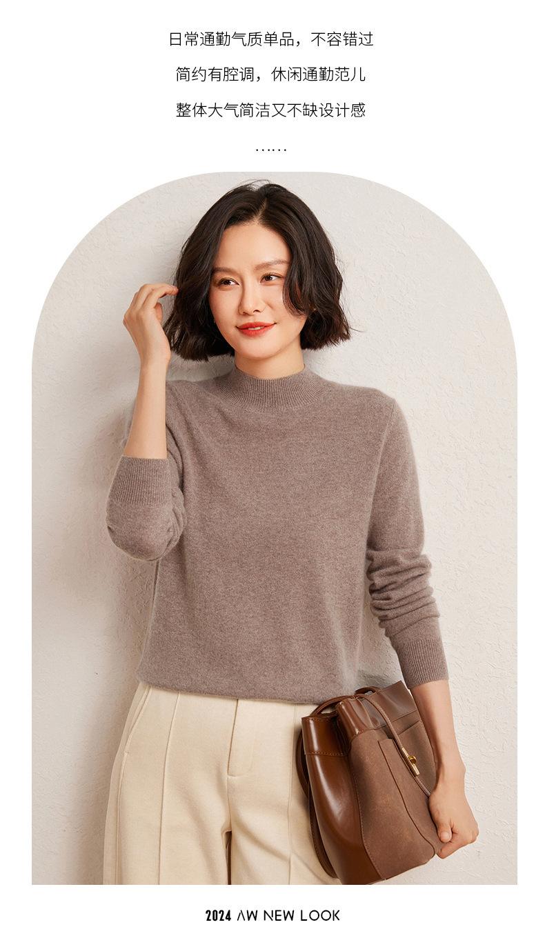 Suéter de cachemira de cuello medio alto para mujer de otoño e invierno, color sólido liso, tipo jersey, corte ajustado y adelgazante, capa base de punto con temperamento para llevar debajo