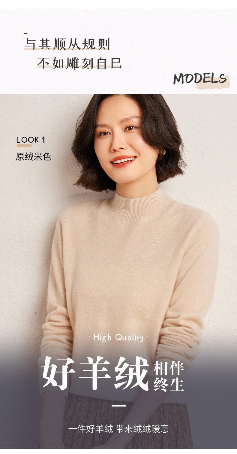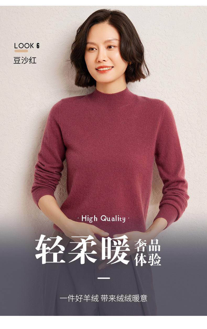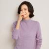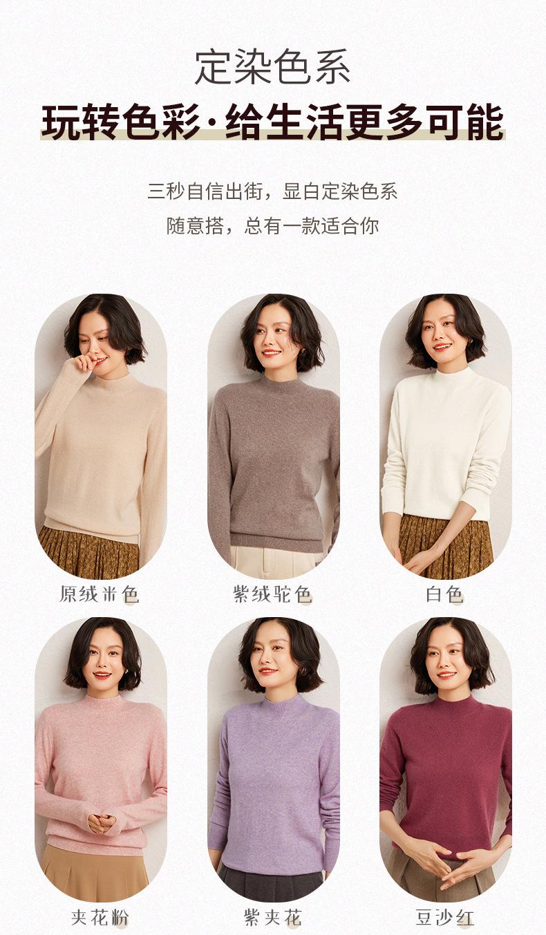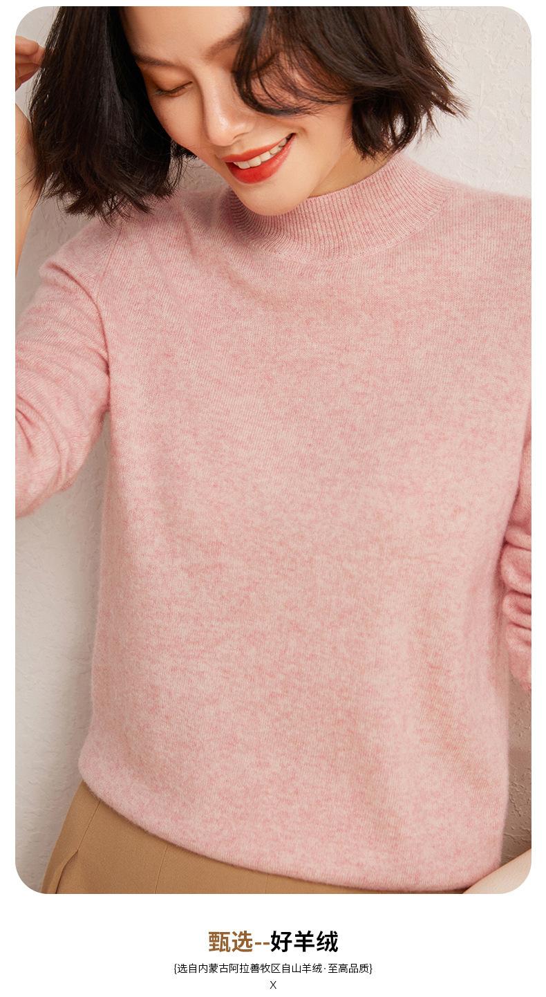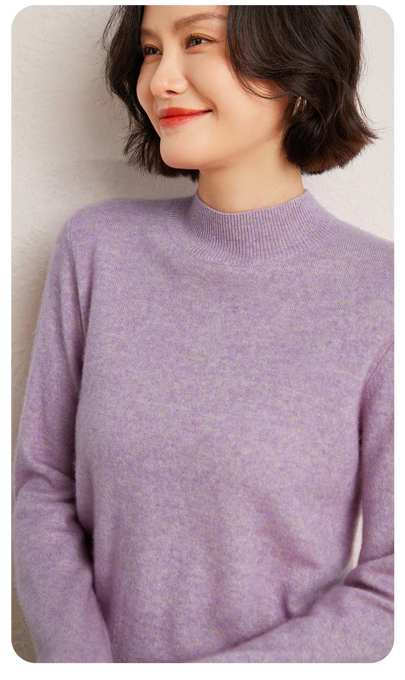 Suéter de cachemira de cuello medio alto para mujer de otoño e invierno, color sólido liso, tipo jersey, corte ajustado y adelgazante, capa base de punto con temperamento para llevar debajo