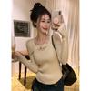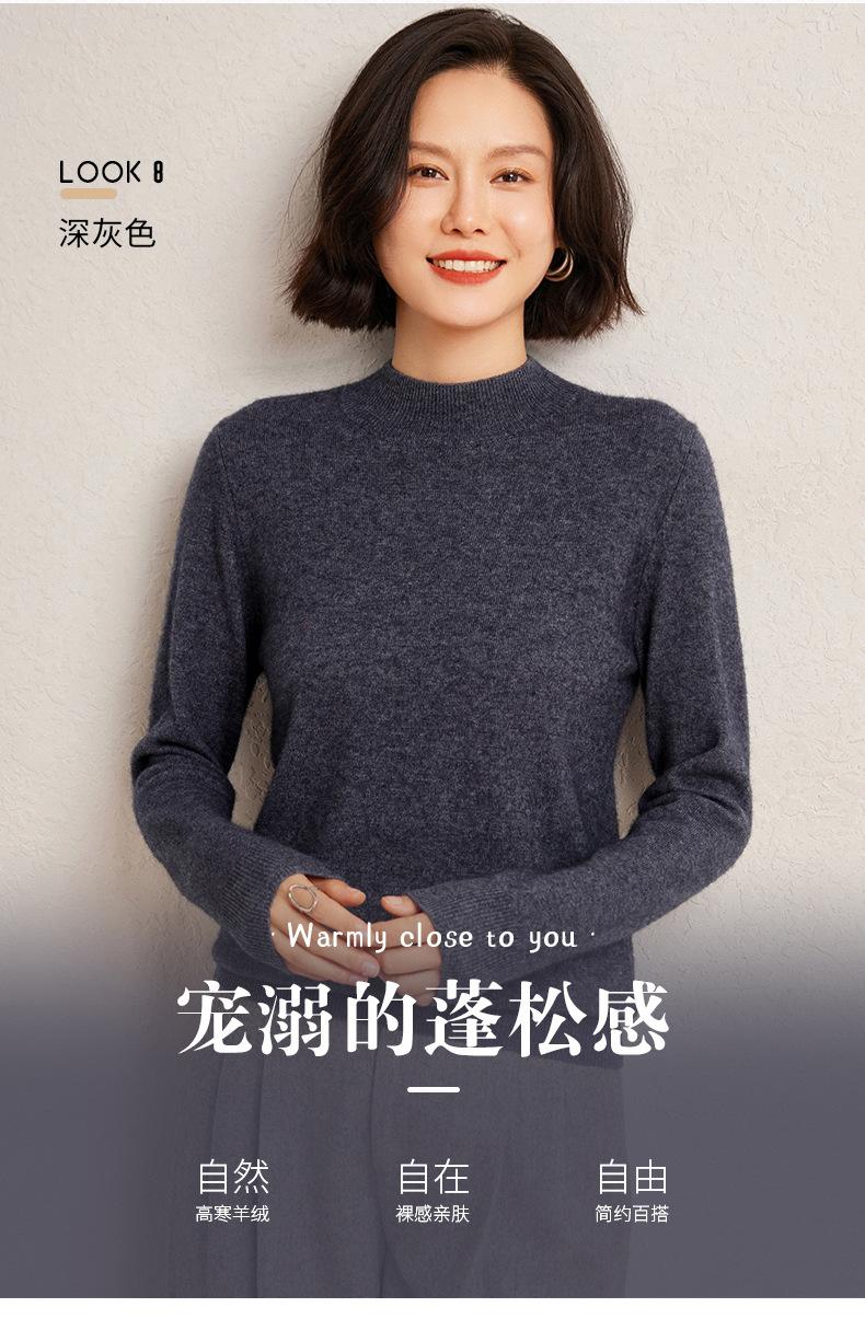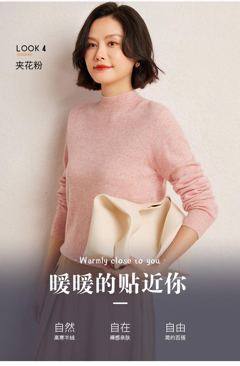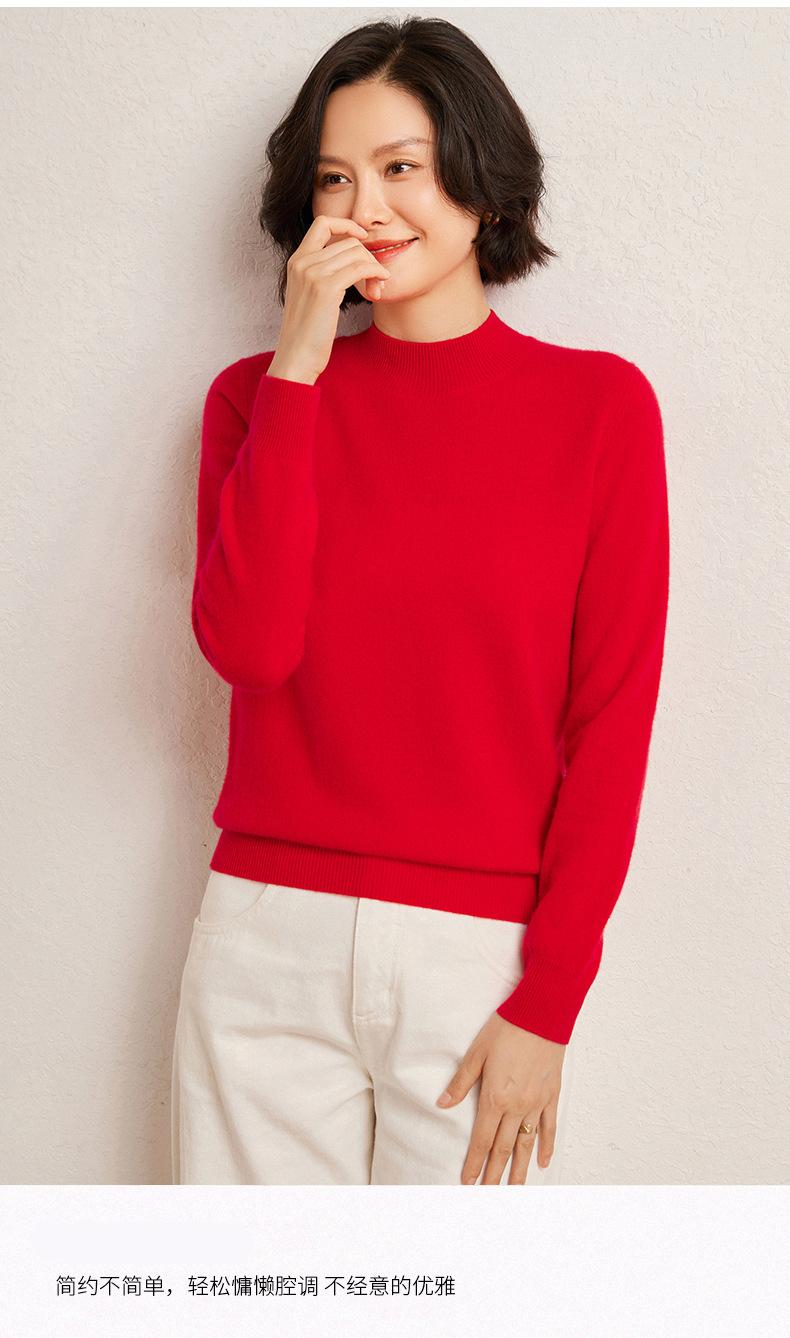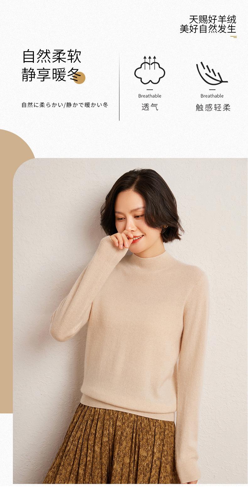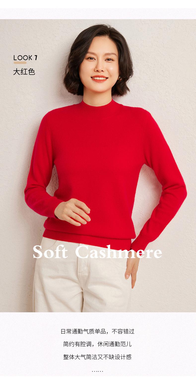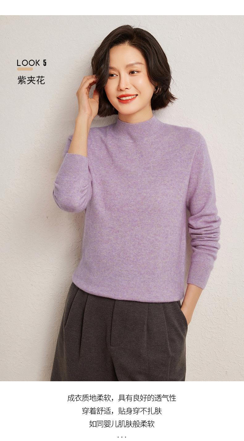 Suéter de cachemira de cuello medio alto para mujer de otoño e invierno, color sólido liso, tipo jersey, corte ajustado y adelgazante, capa base de punto con temperamento para llevar debajo