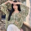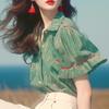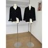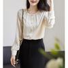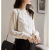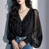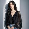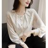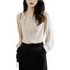 Camisa elegante de manga larga con cuello redondo plisado estilo corte francés/elemento de lunares Big Beauty para mujer de principios de otoño