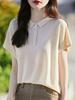 Camiseta de manga corta de punto con solapa de Tencel Lyocell para mujer, cuello polo fino antiedad, holgada, de verano, 24 unidades