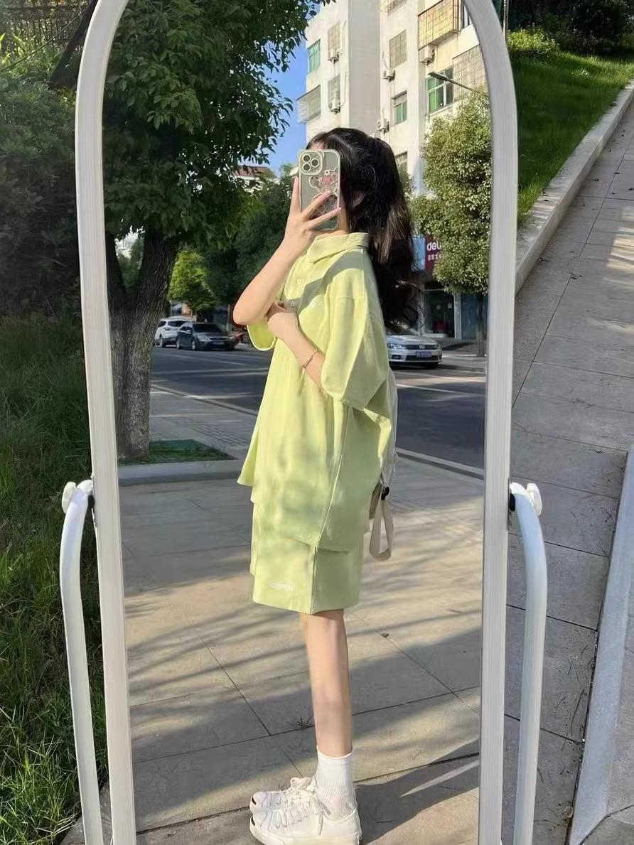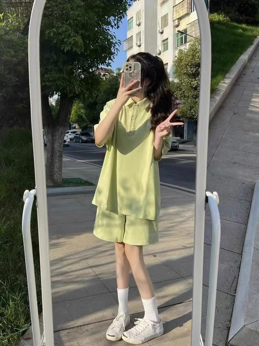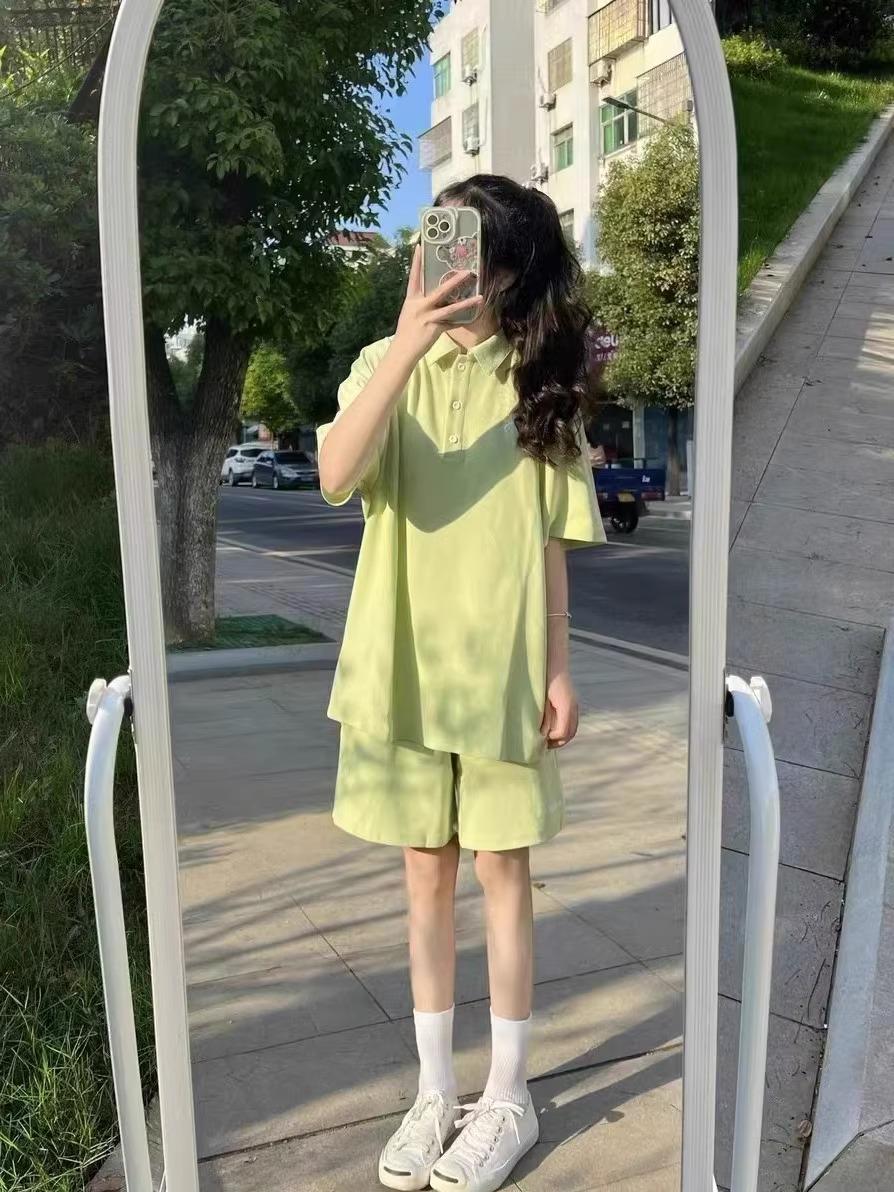 Conjunto de ropa deportiva Salt Girl para mujer, verano, estudiante, holgado, moda, pantalones cortos de manga corta, informal, dos piezas