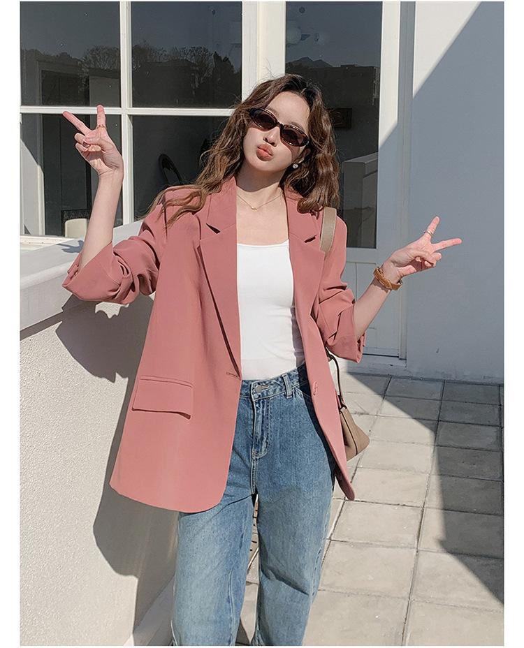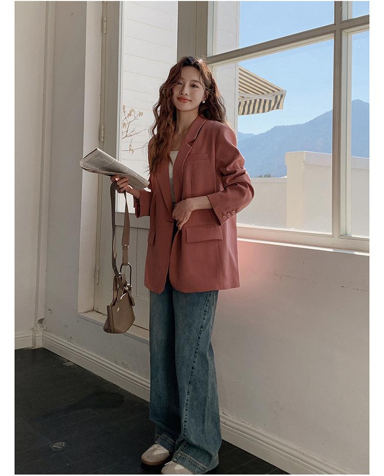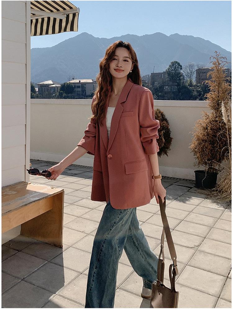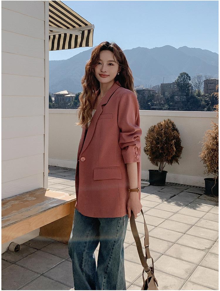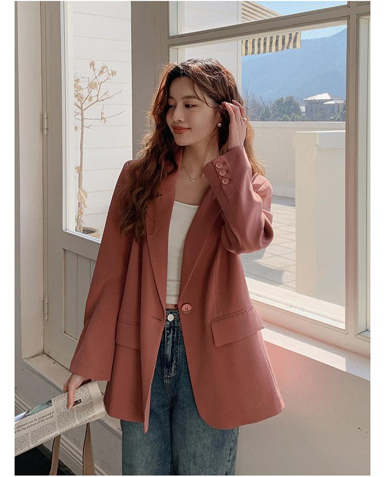 Chaqueta de Traje Pequeña para Mujer 2024 Primavera Nuevo Rosa Palo Estilo Coreano Holgada Casual Top de Traje para Mujer de Alto Sentido