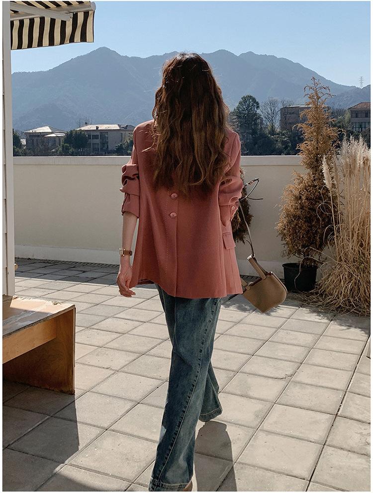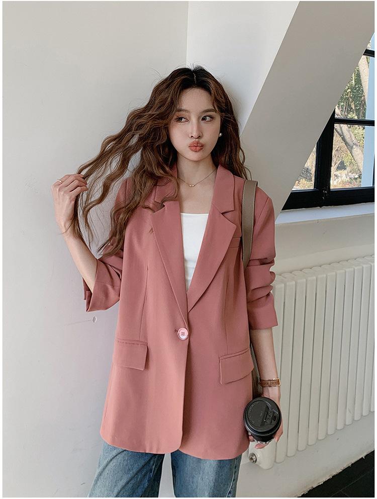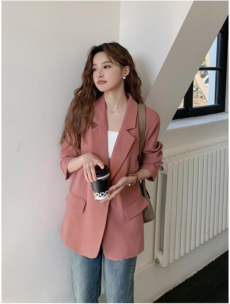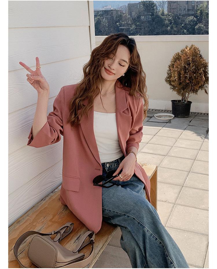 Chaqueta de Traje Pequeña para Mujer 2024 Primavera Nuevo Rosa Palo Estilo Coreano Holgada Casual Top de Traje para Mujer de Alto Sentido