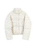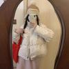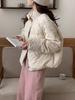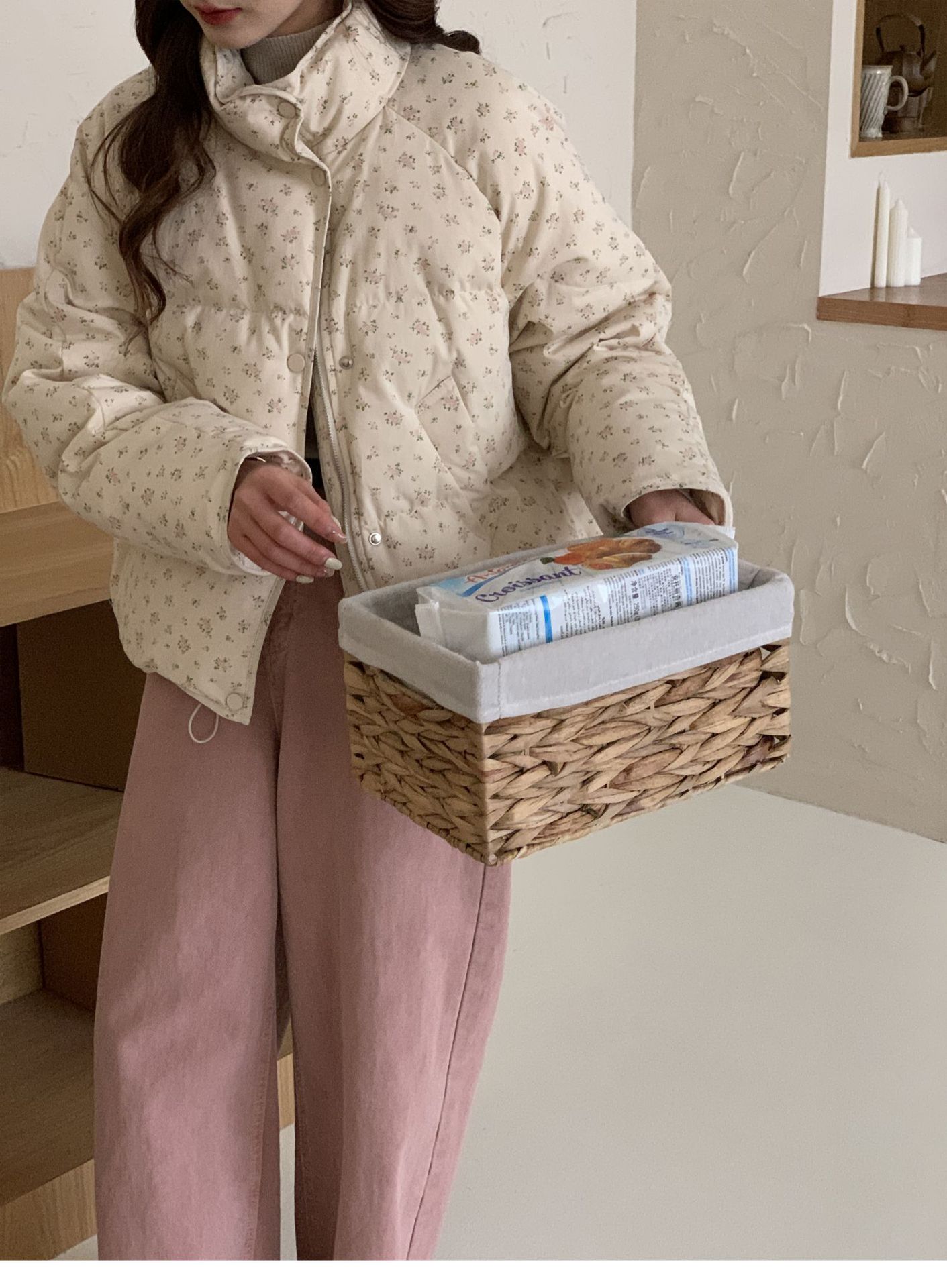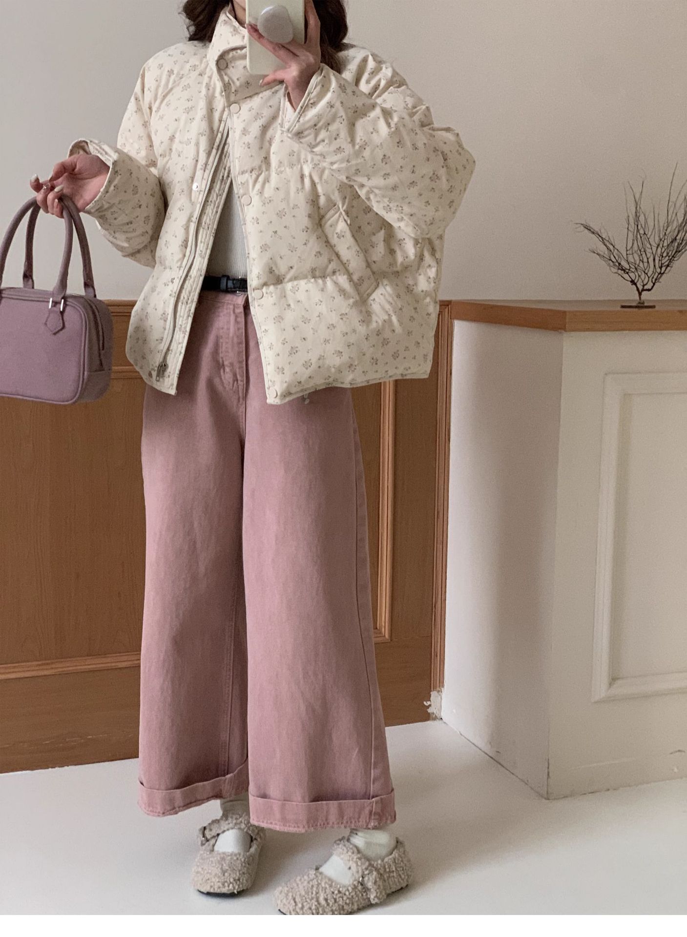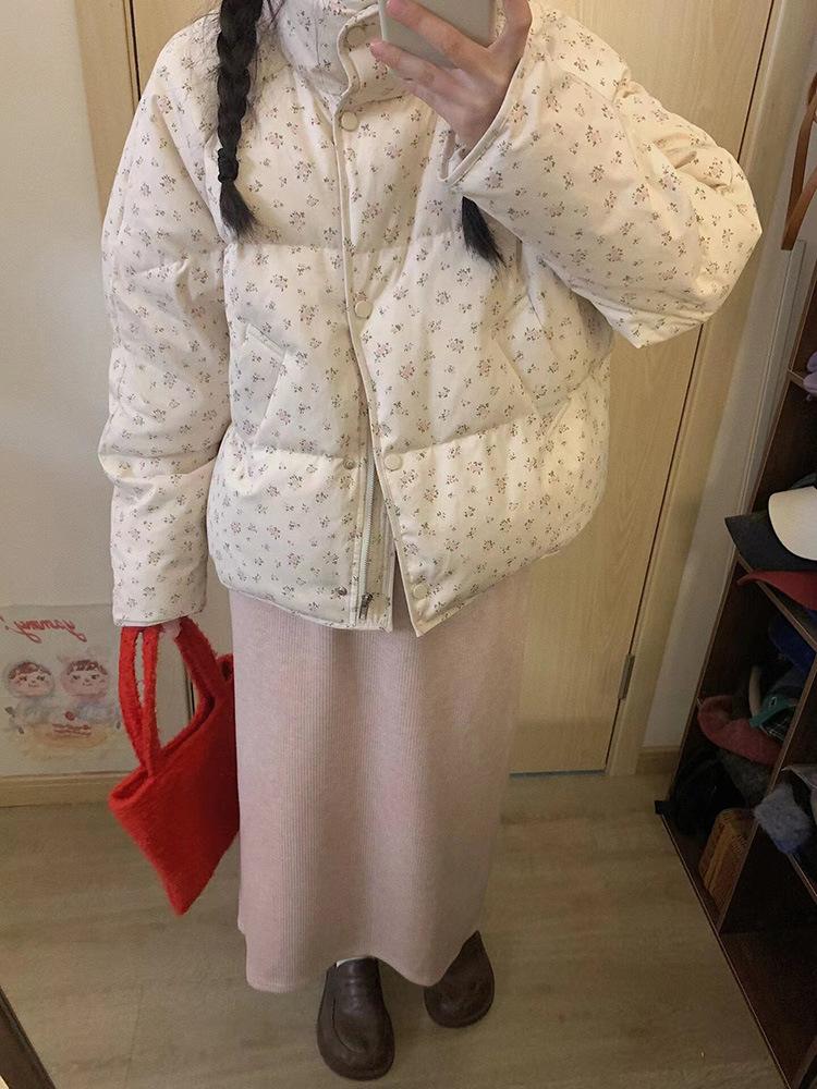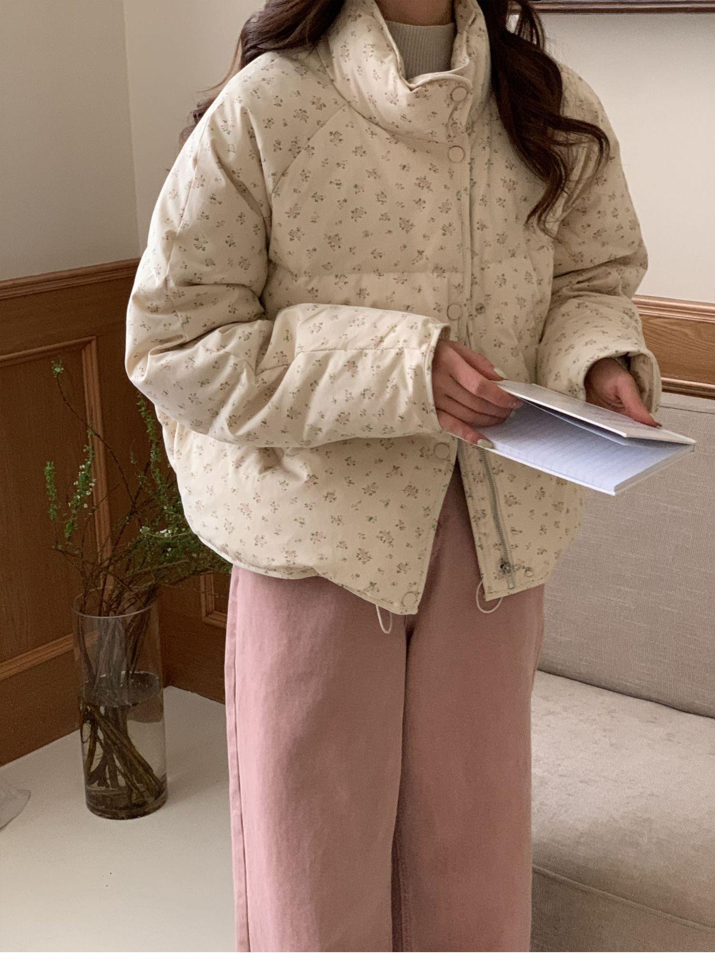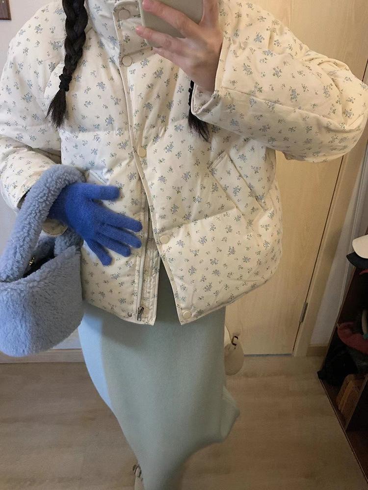 Chamarra de plumón floral para mujer, estilo corto, invierno 2025, estilo pastoral coreano, talla petite, chamarra acolchada de plumón de pato blanco, moderna