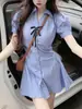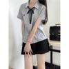 Traje de verano para mujer 2023 Nueva camisa de manga corta estilo universitario Vestido de tirantes adelgazante para mujer Conjunto de dos piezas