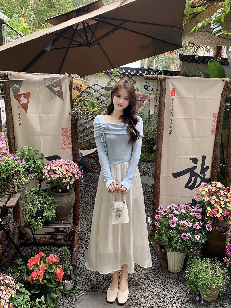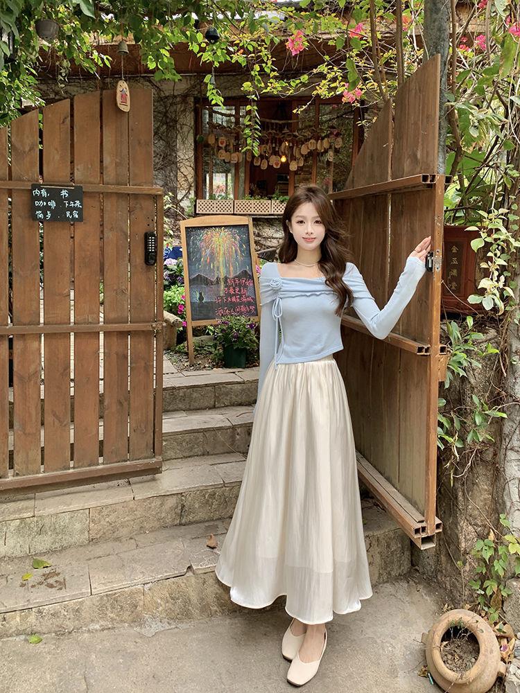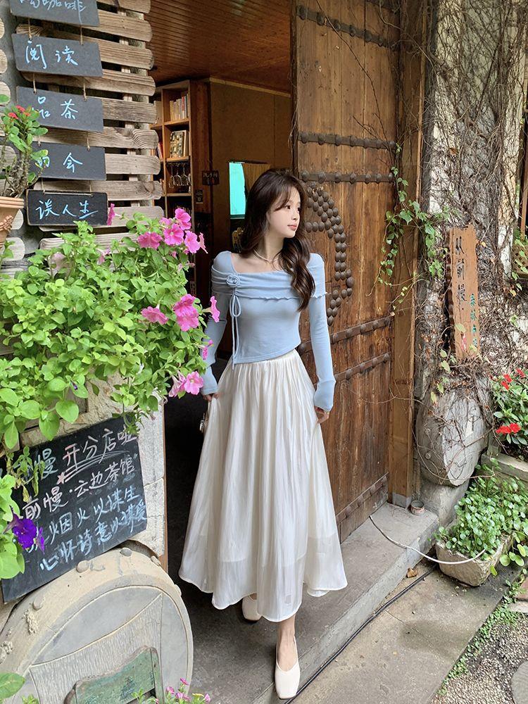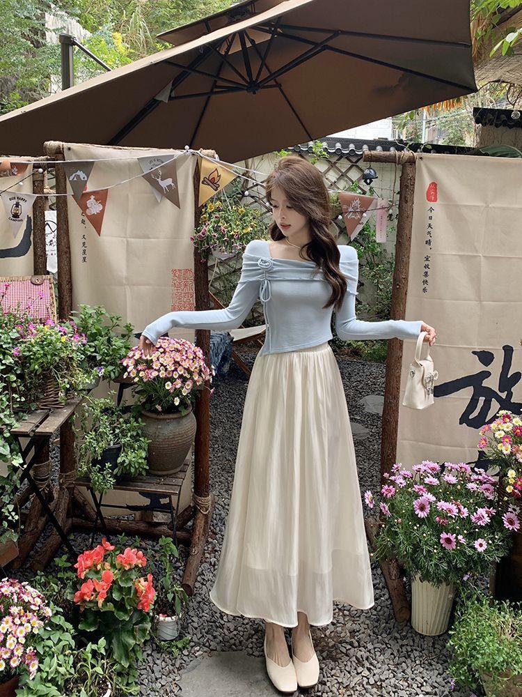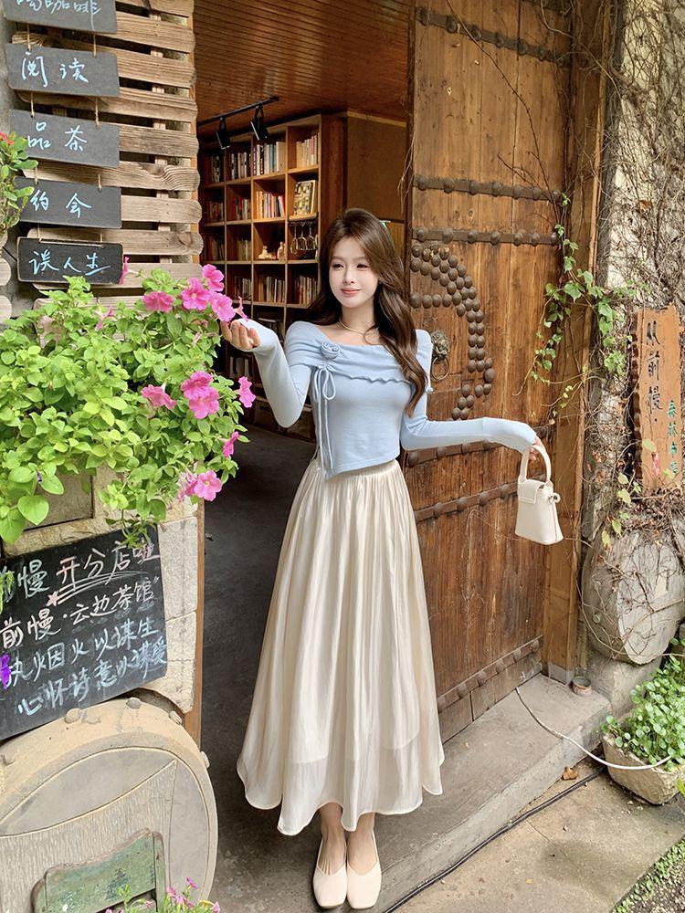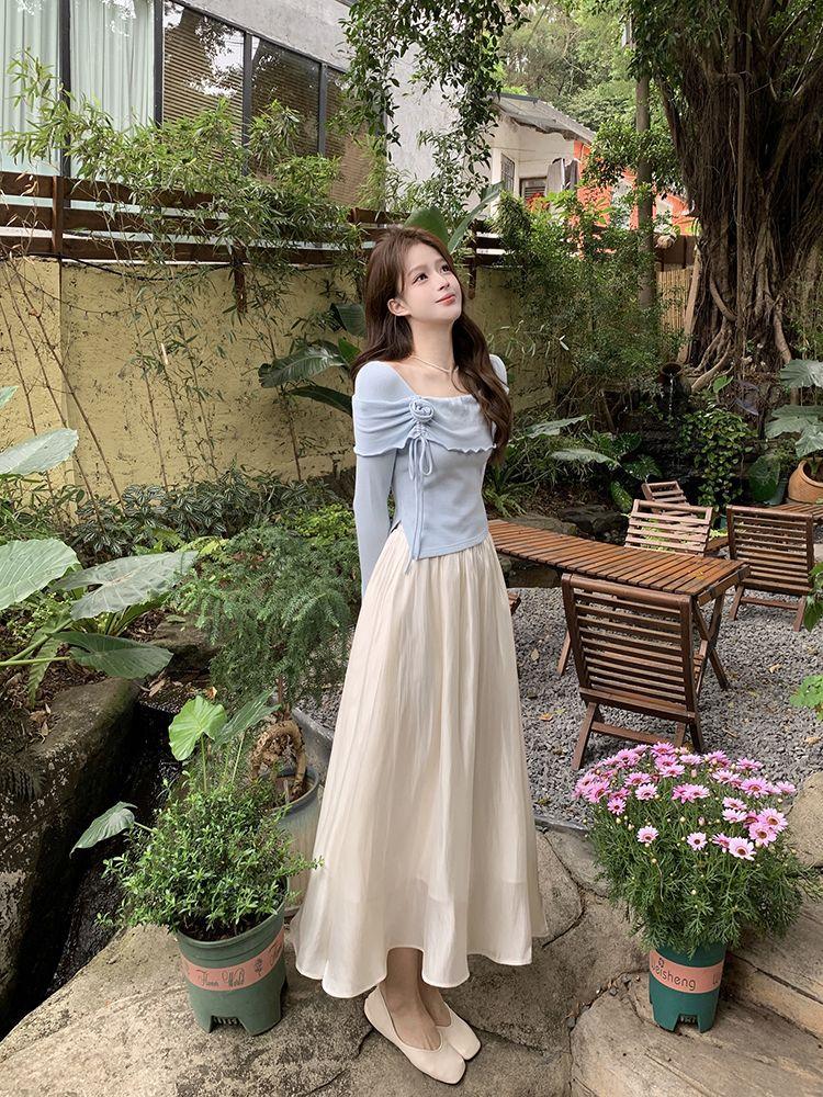 Light blue top [flowers are carefully selected and of good quality], Apricot skirt [flowers are carefully sele...