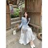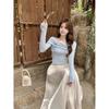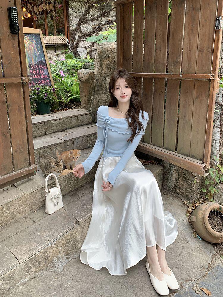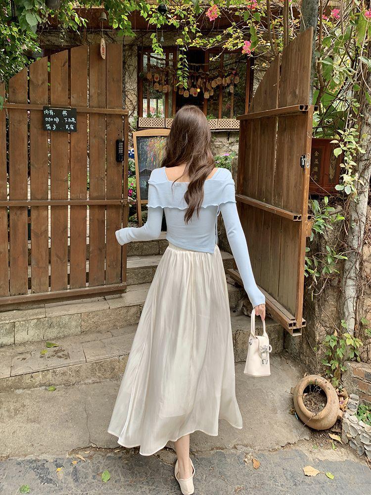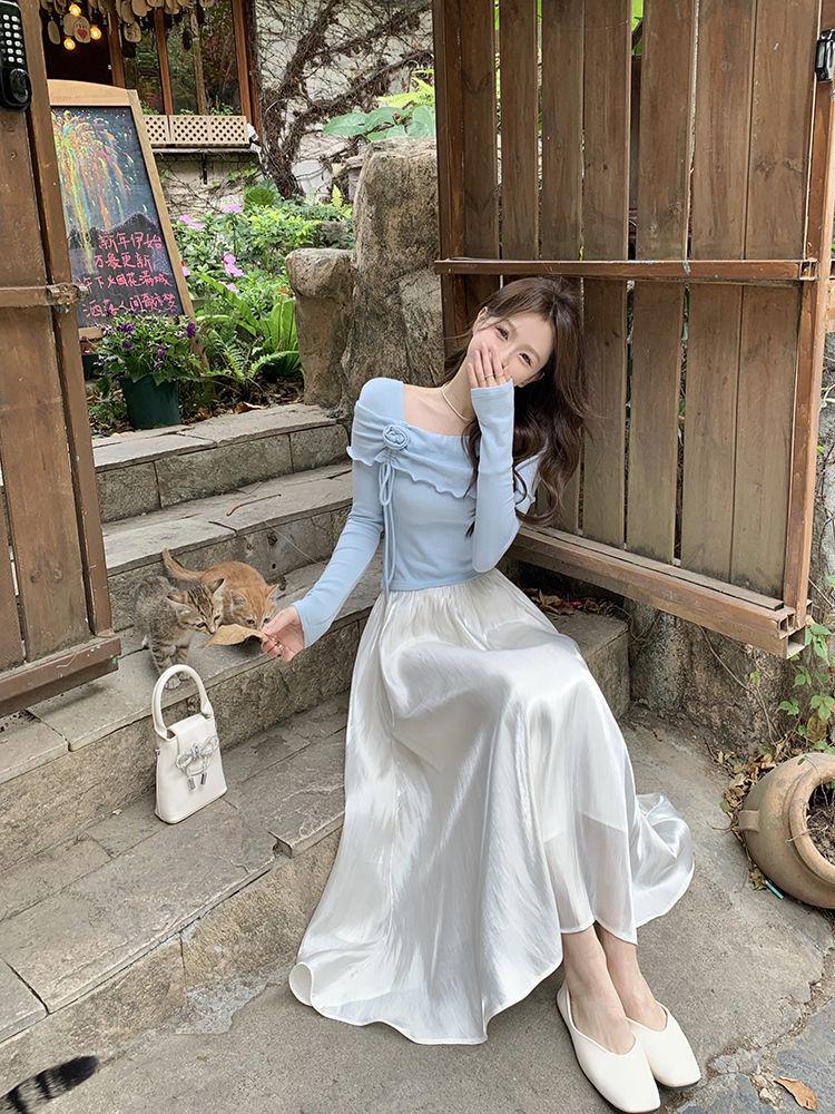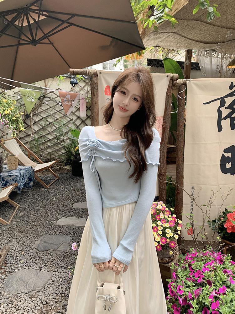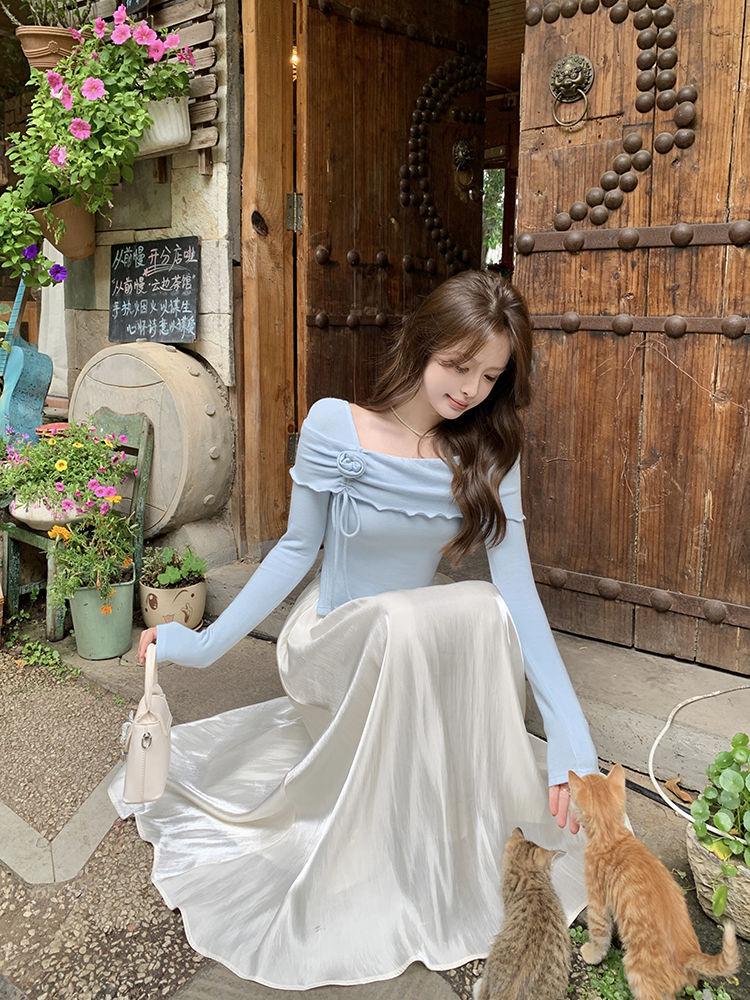Light blue top [flowers are carefully selected and of good quality], Apricot skirt [flowers are carefully sele...
