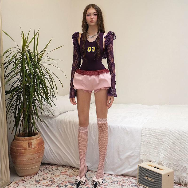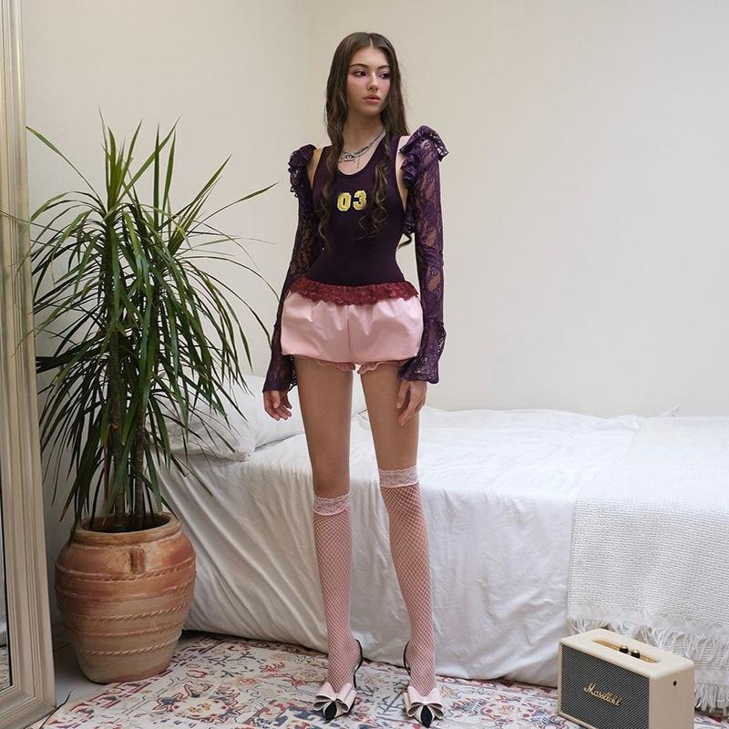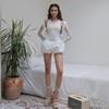 Estilo Europeo y Americano Transfronterizo 2024 Amazon Otoño Nuevo Manga Larga Ajustado Top Camisola Sexy Shorts de Cintura Alta