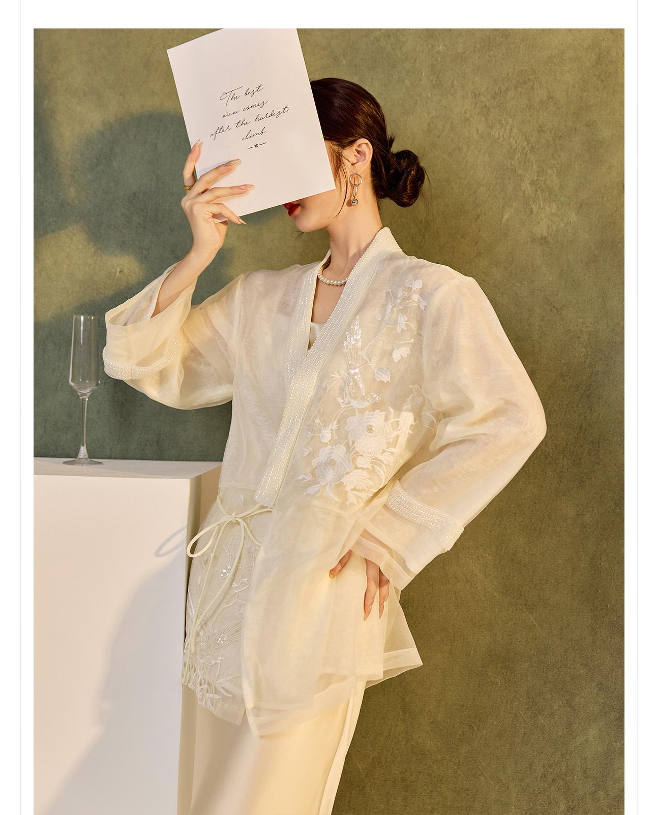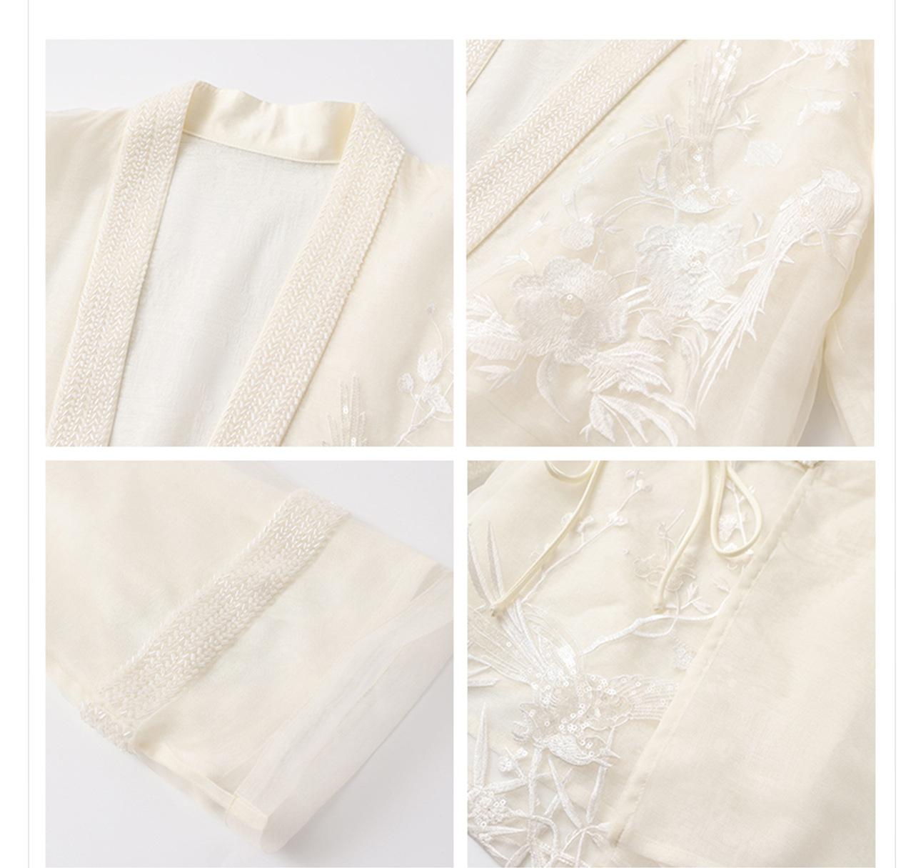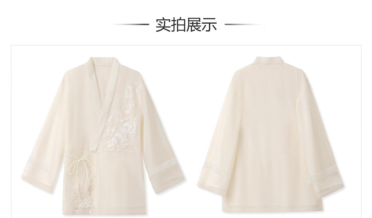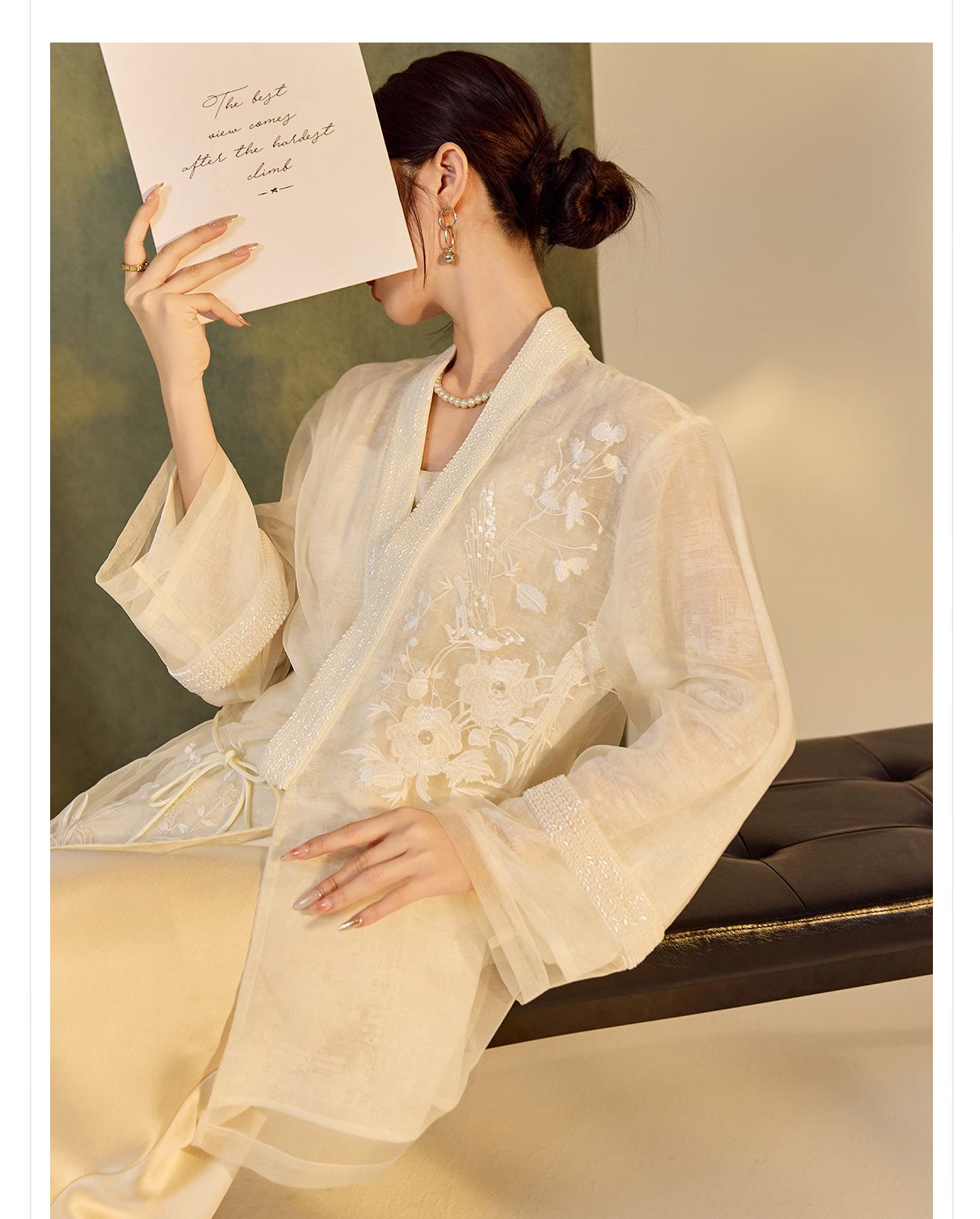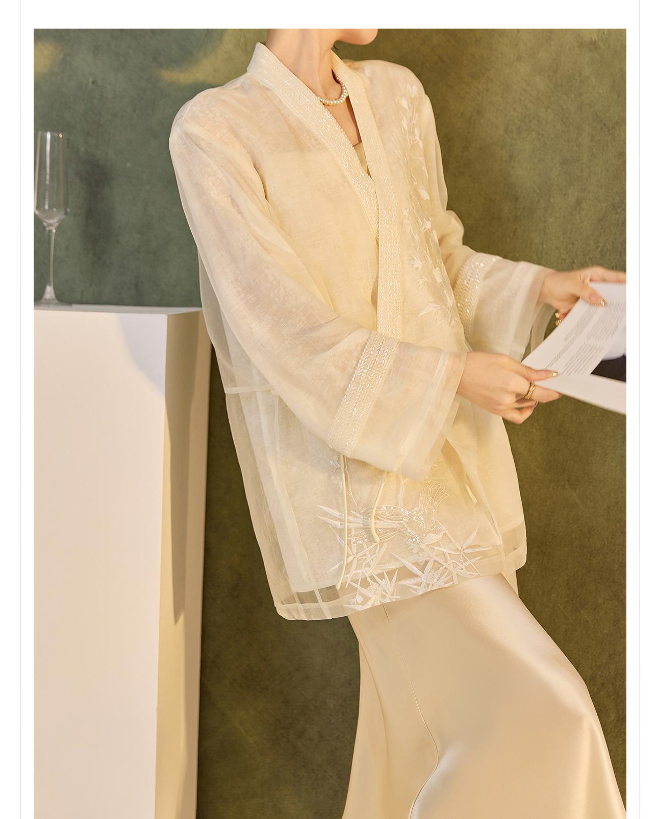 Primavera 2025 Nuevo Estilo Chino Estilo Nacional Camisa Bordada de Flores y Pájaros para Mujer Blanca Suelta Seda de Morera Top Exterior M3074