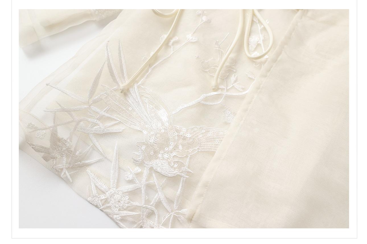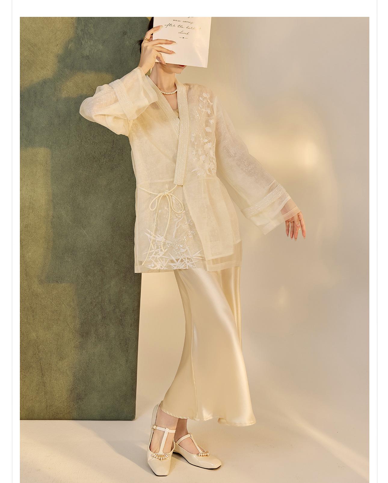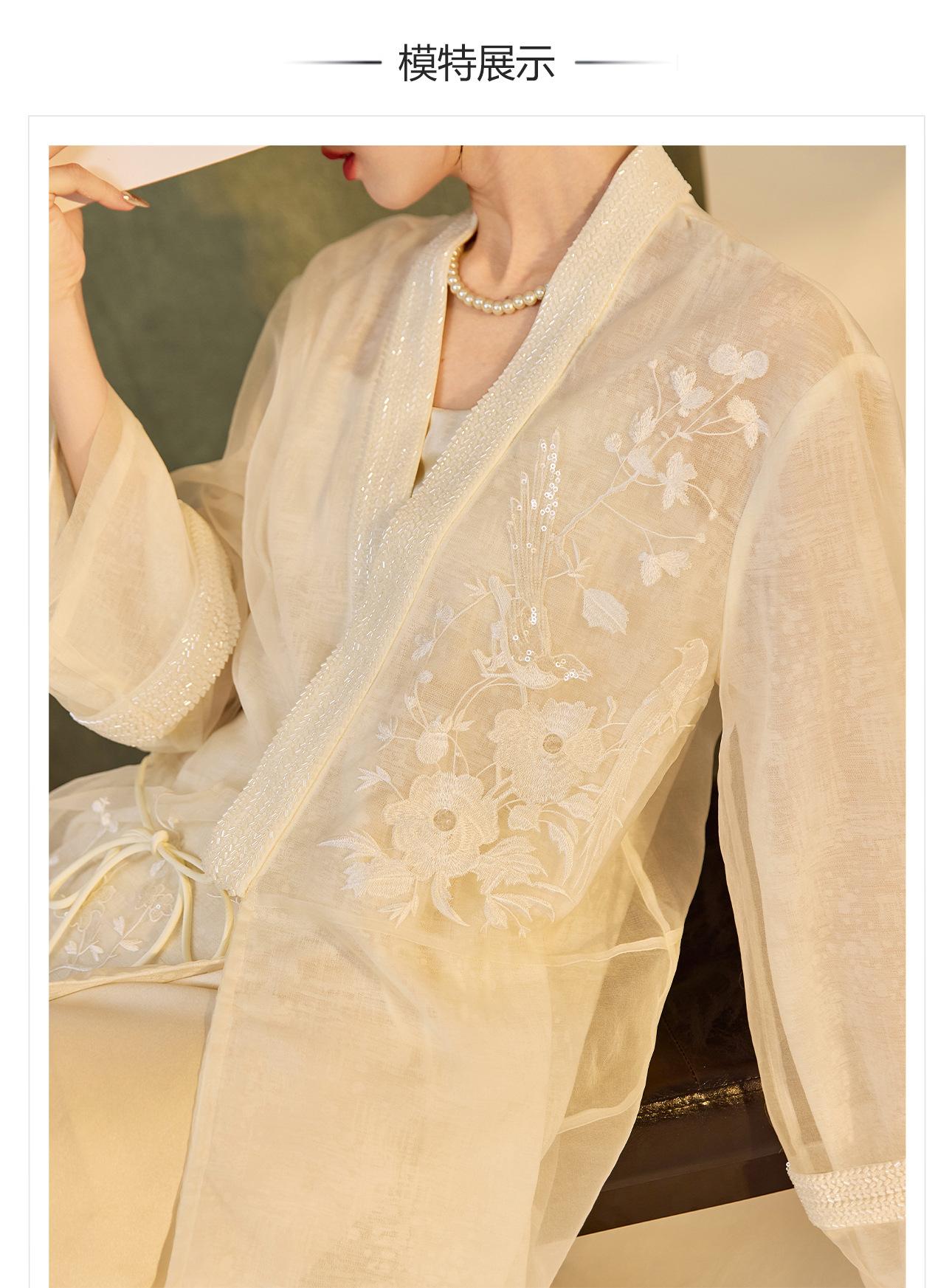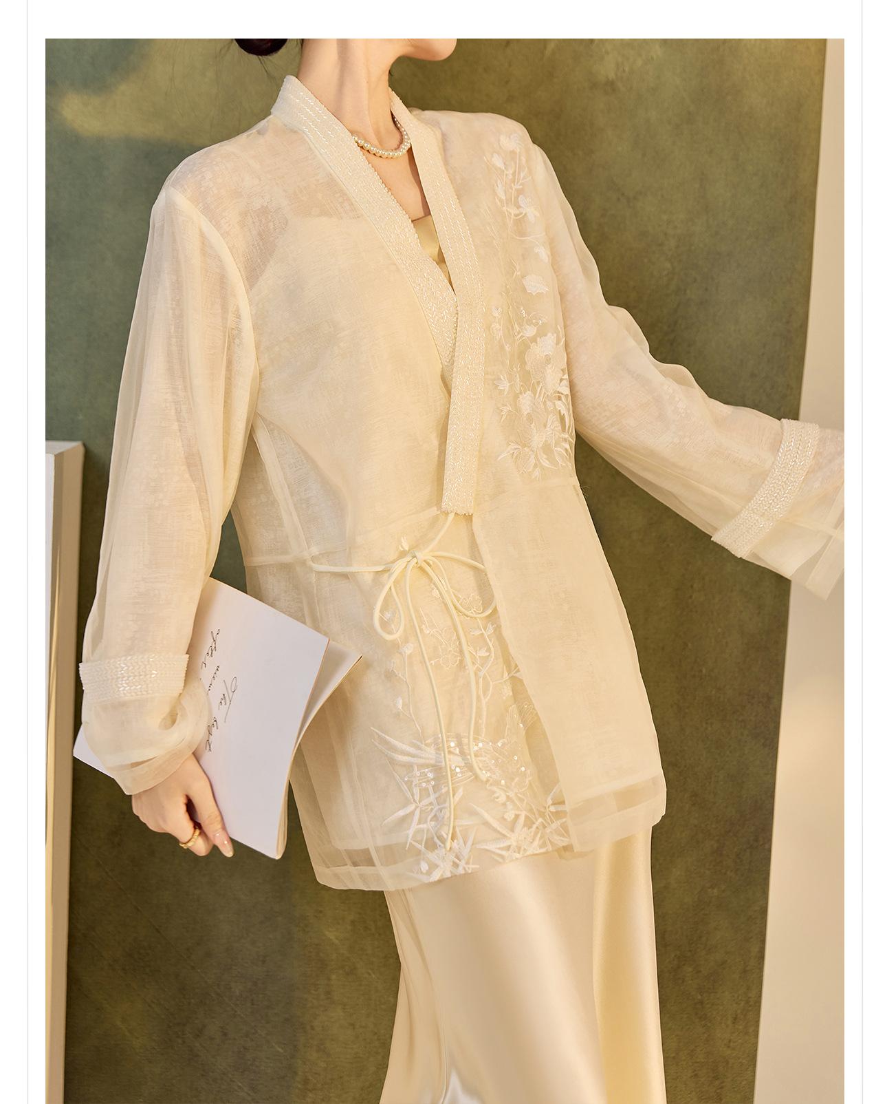 Primavera 2025 Nuevo Estilo Chino Estilo Nacional Camisa Bordada de Flores y Pájaros para Mujer Blanca Suelta Seda de Morera Top Exterior M3074
